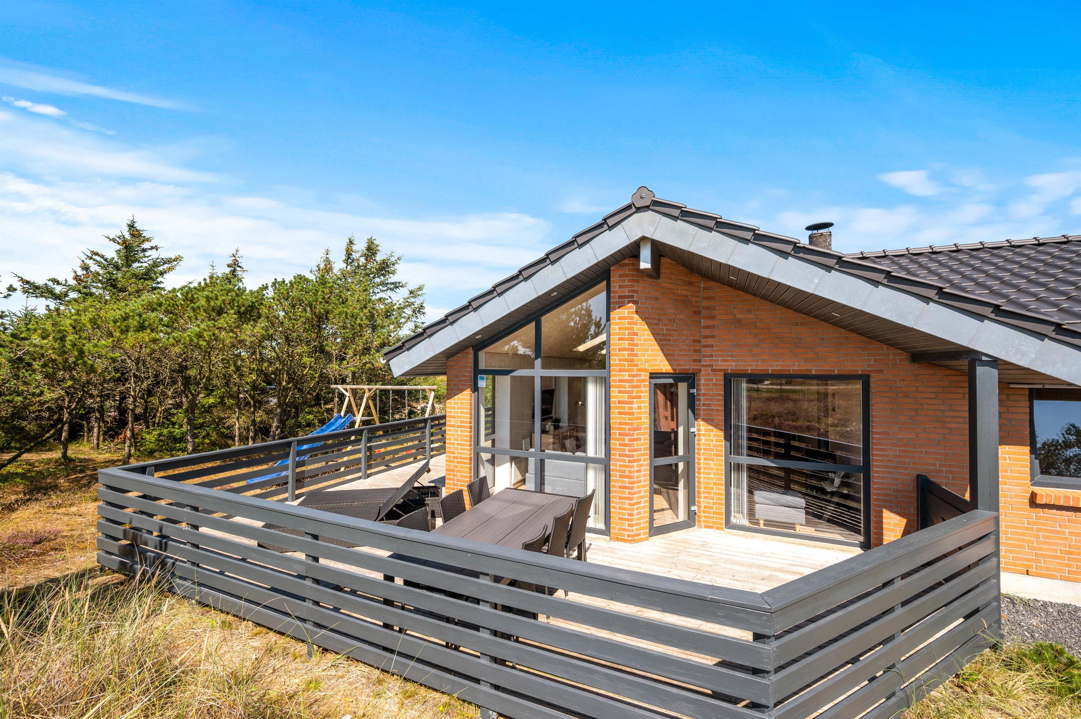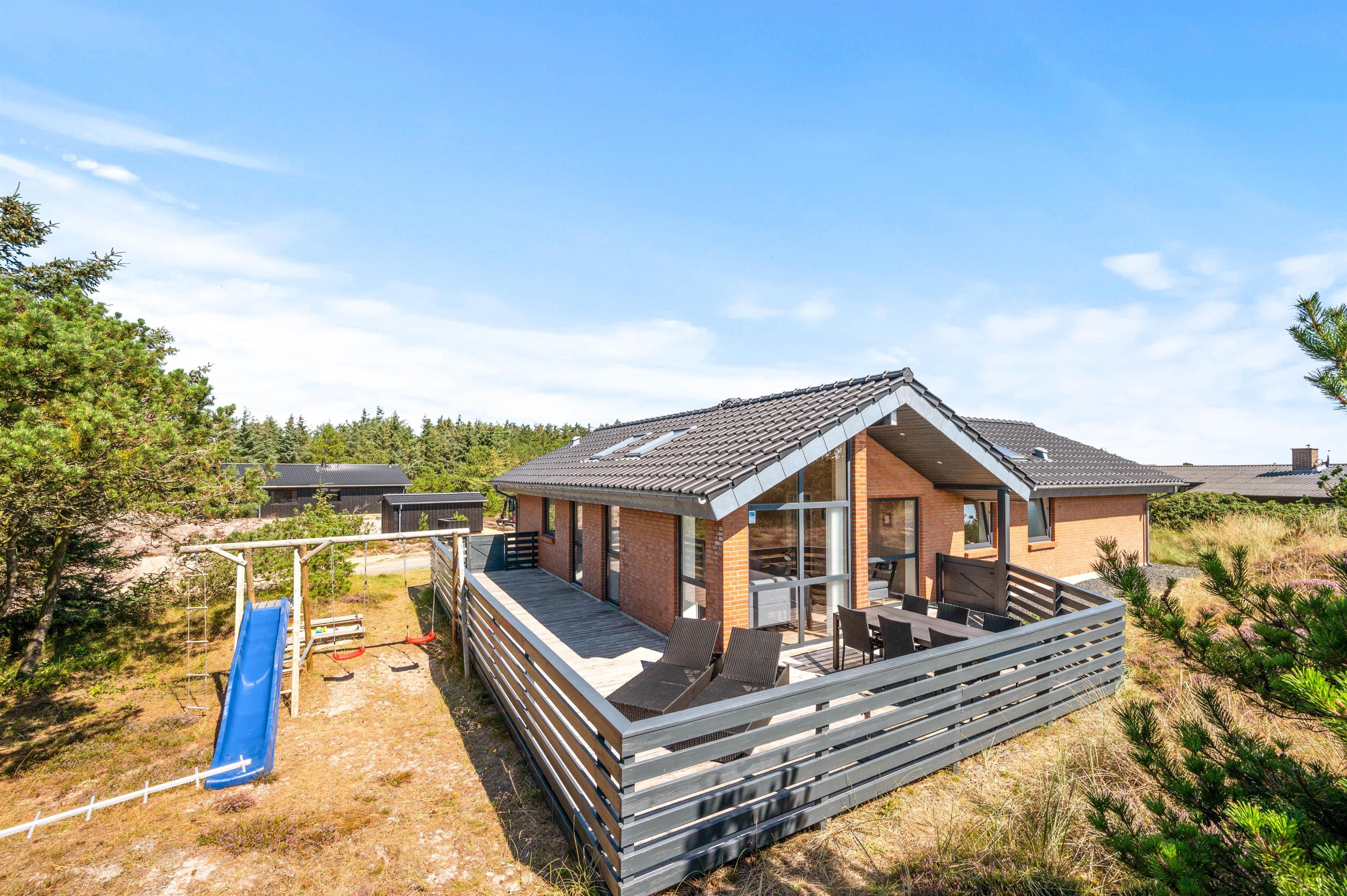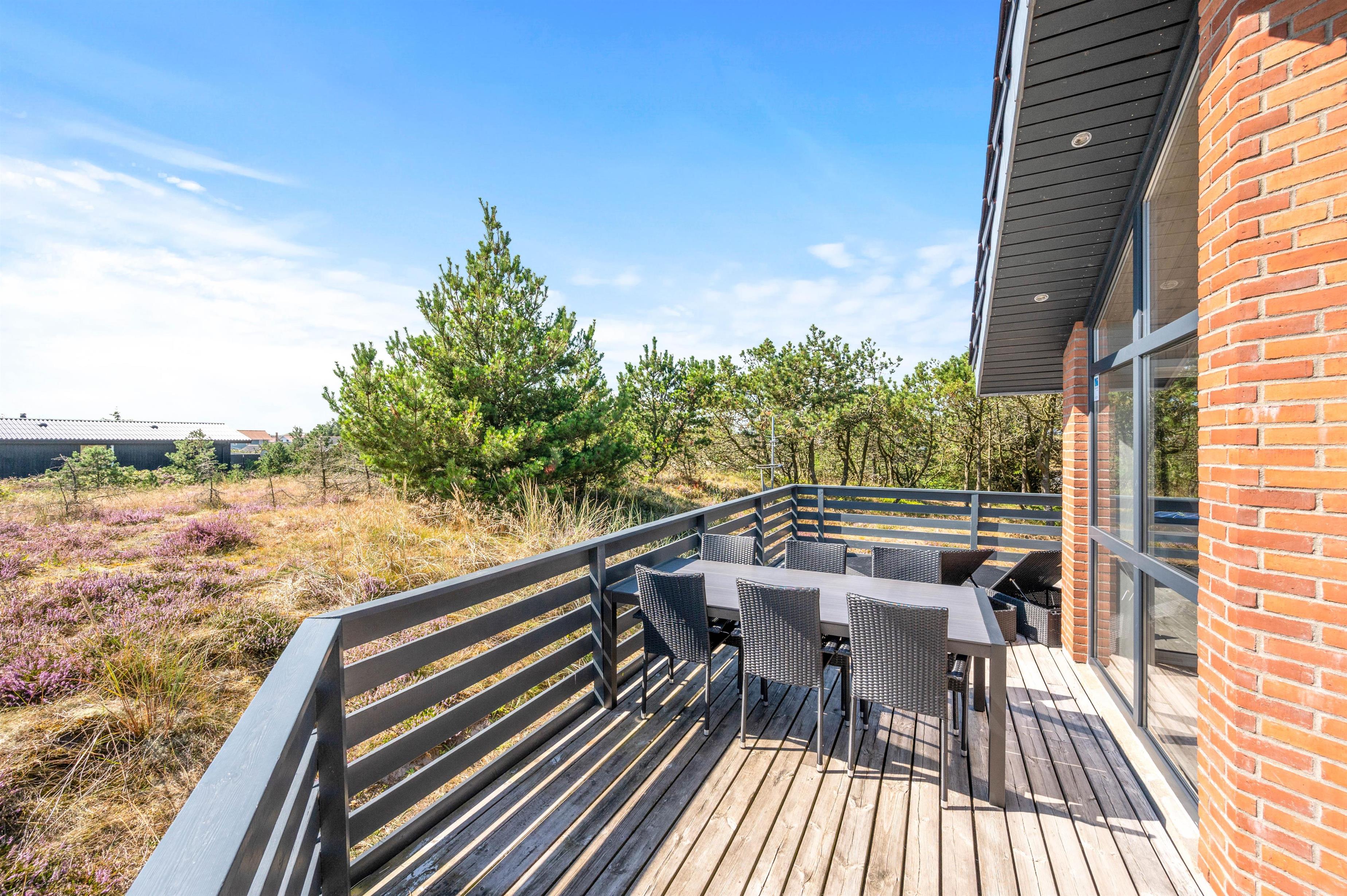Sommerhuset er beliggende på en stor naturlig afskærmet naturgrund tilbagetrukket fra Arvidvej og ikke langt fra Ringkøbing Fjord. Feriehuset har en fin afskærmet terrasse, med havemøbler, liggestole og grill. For de mindste er der indrettet gynge og sandkasse.