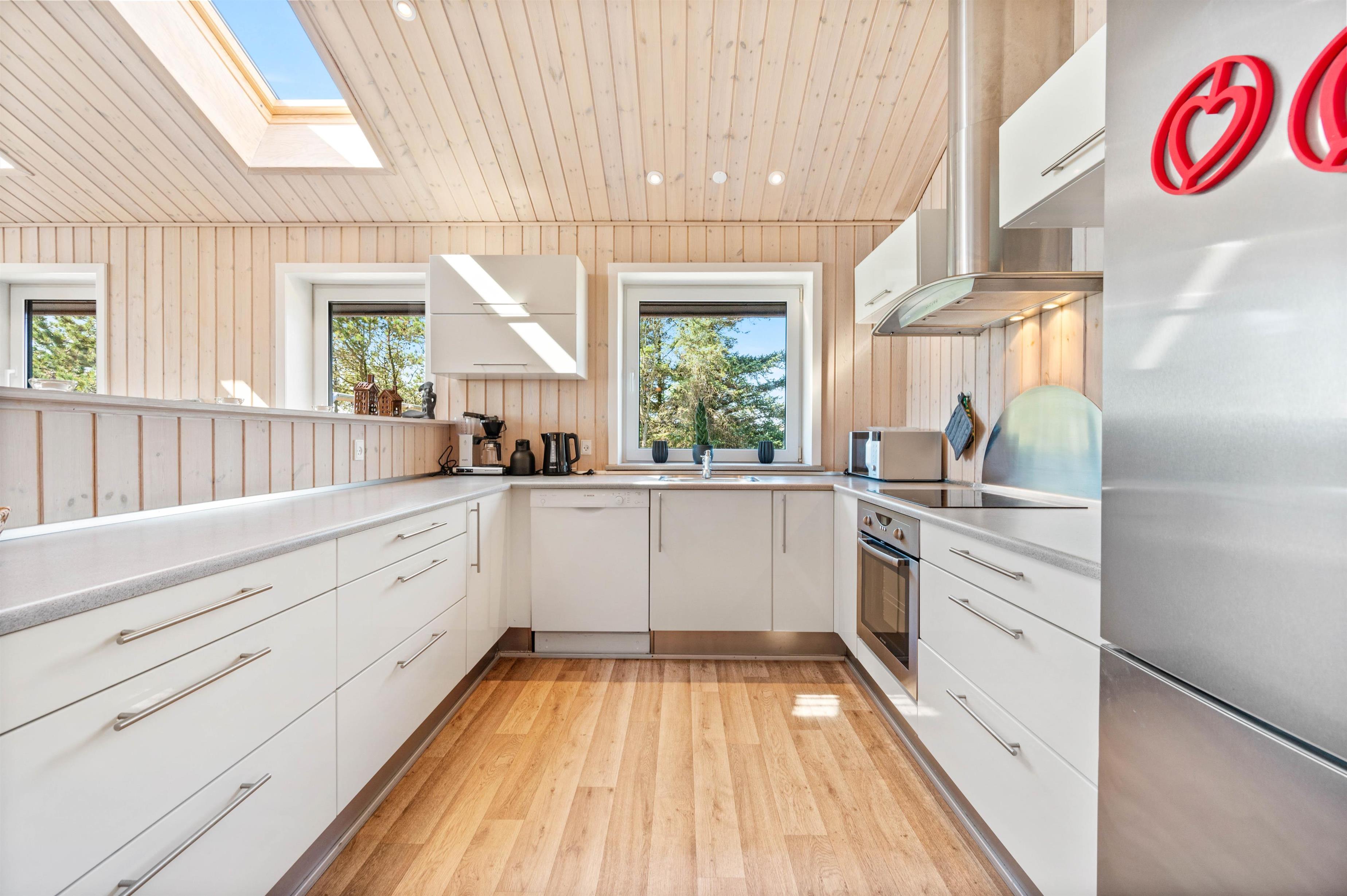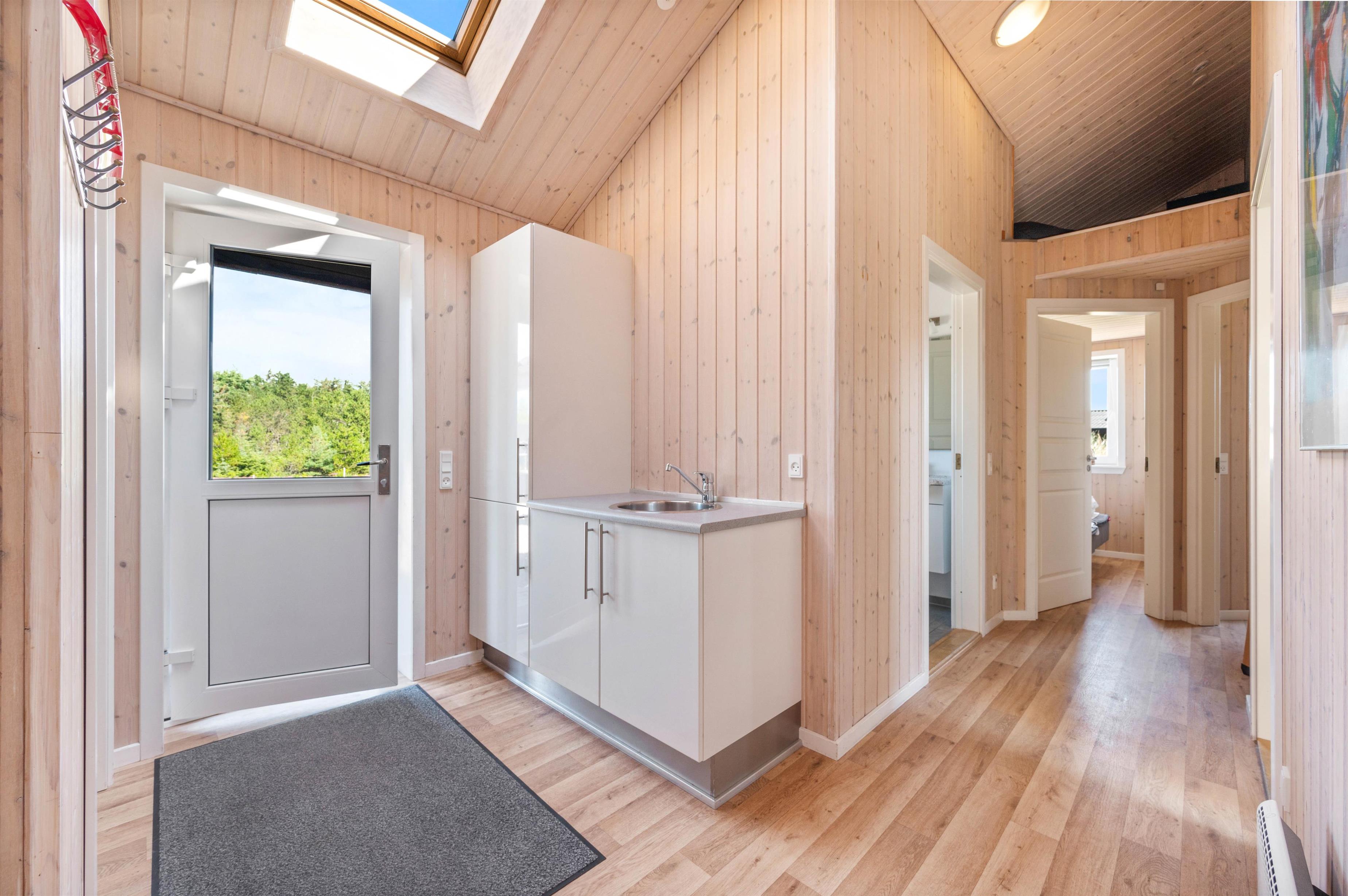 Her får I et sommerhus, der er rigtigt godt indrettet med 4 soverum, med i alt 7 sovepladser. Alle værelser er selvfølgelig udstyret med rigtige boksmadrasser. De sidste 2 sovepladser finder I på hemsen, som er et stort hit blandt familiens yngste.