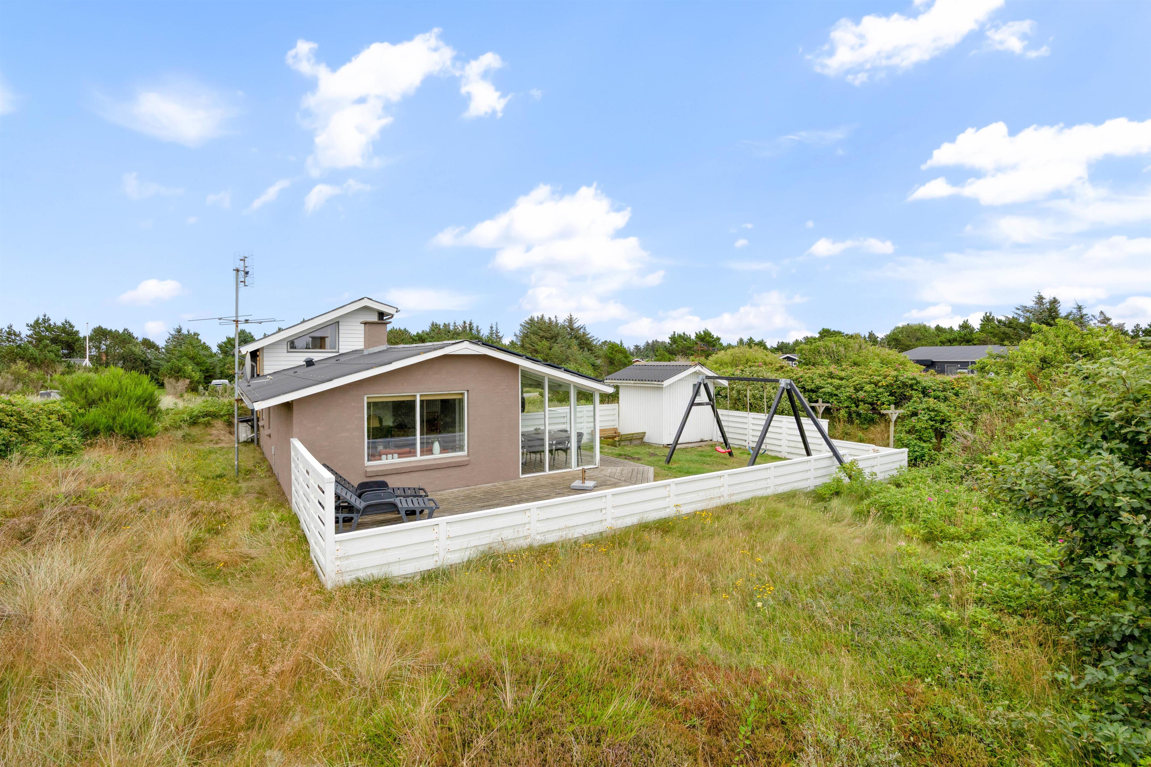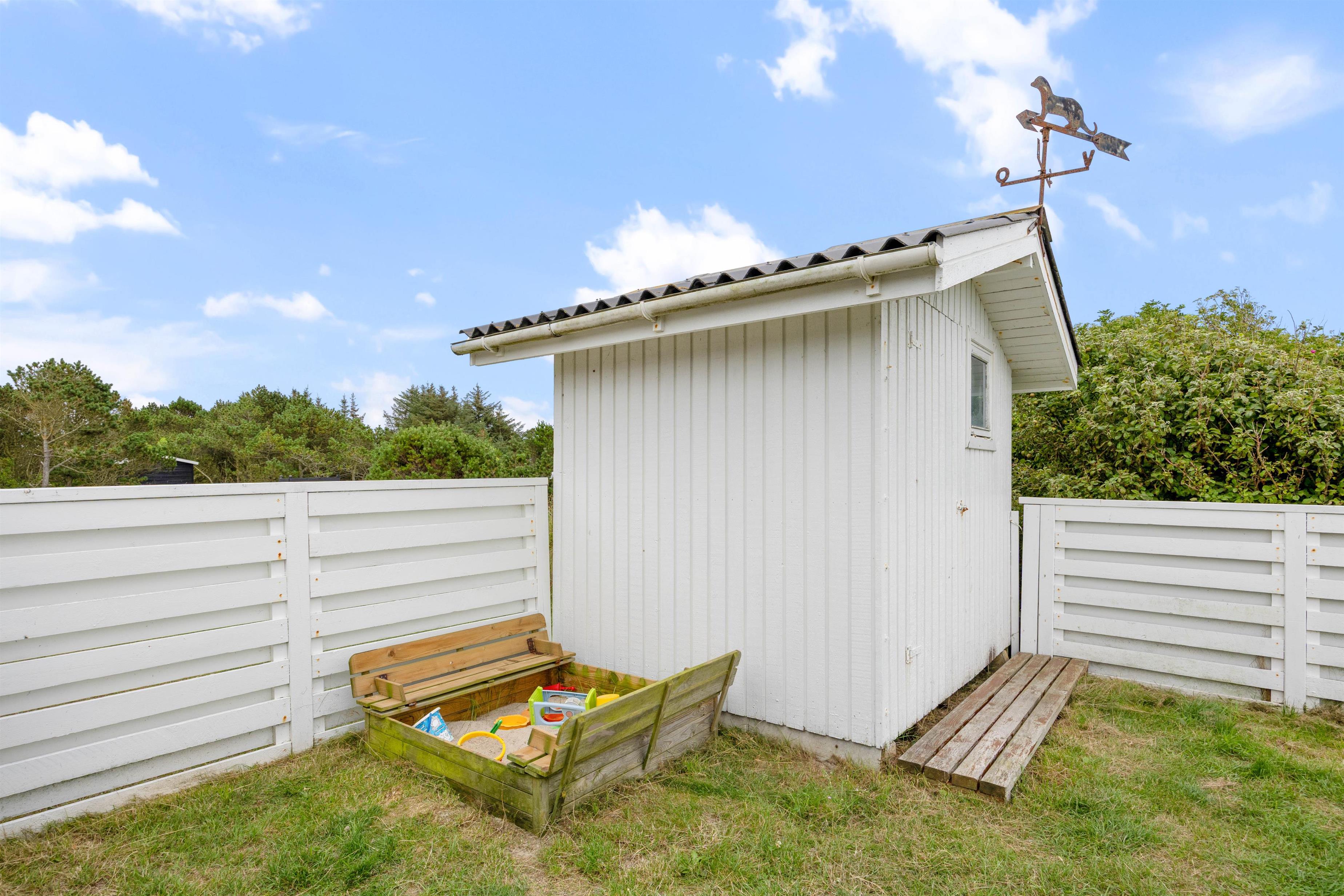 Fra stuen er der udgang til den sydvendte terrasse. Her kan I slappe af i de komfortable liggestole, trække ind i skyggen eller slappe af i havemøblerne. Man kan altid finde en krog med læ, hvis man ønsker at nyde en kop te i fred og ro. Tænd op i grillen til aften, og nyd et lækkert grillmåltid sammen, imens skyggerne bliver lange. Med under 1 kilometer til havet kan I nå at opleve solnedgangen i Vesterhavet. Det er altid en imponerende oplevelse.