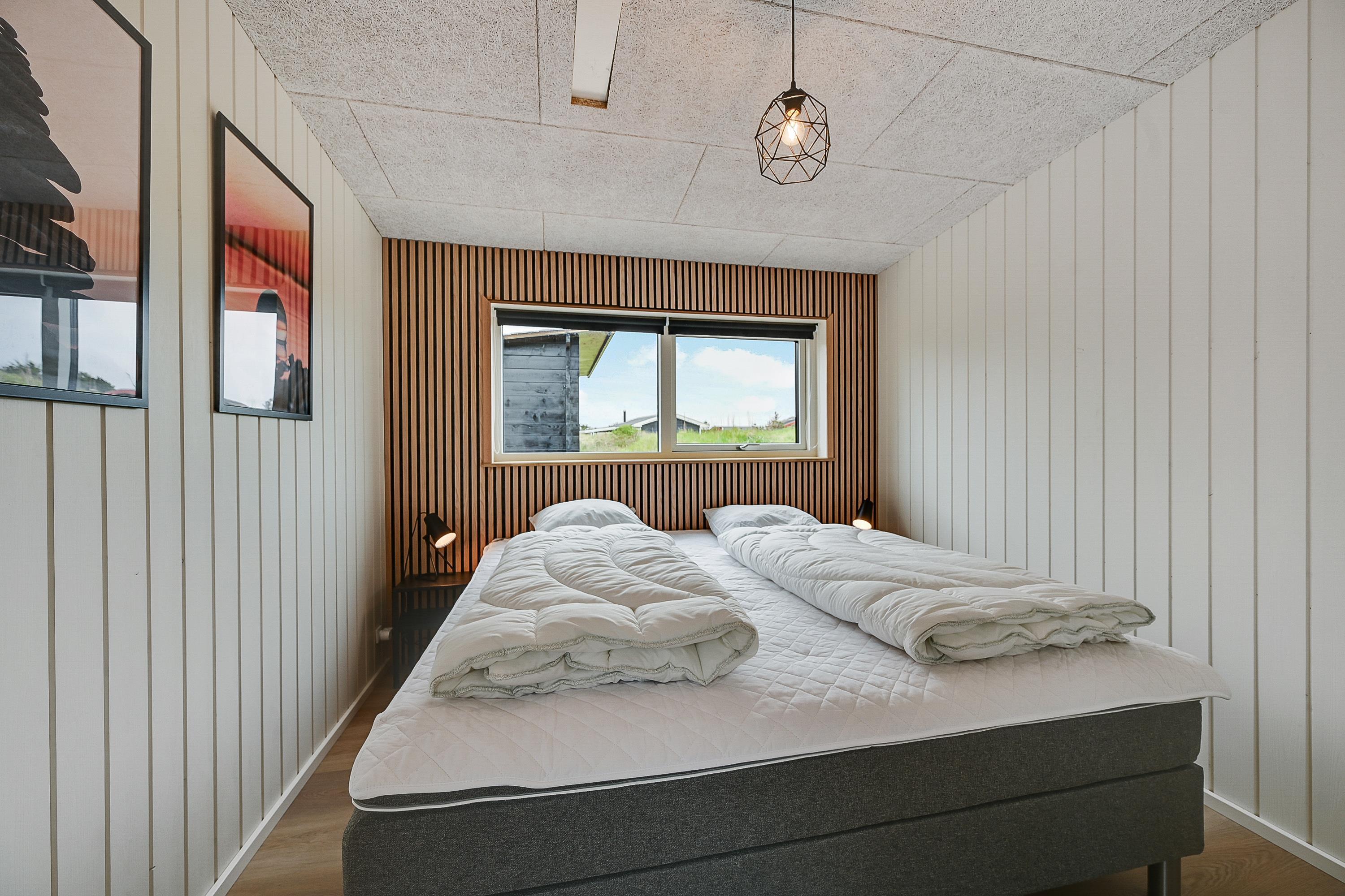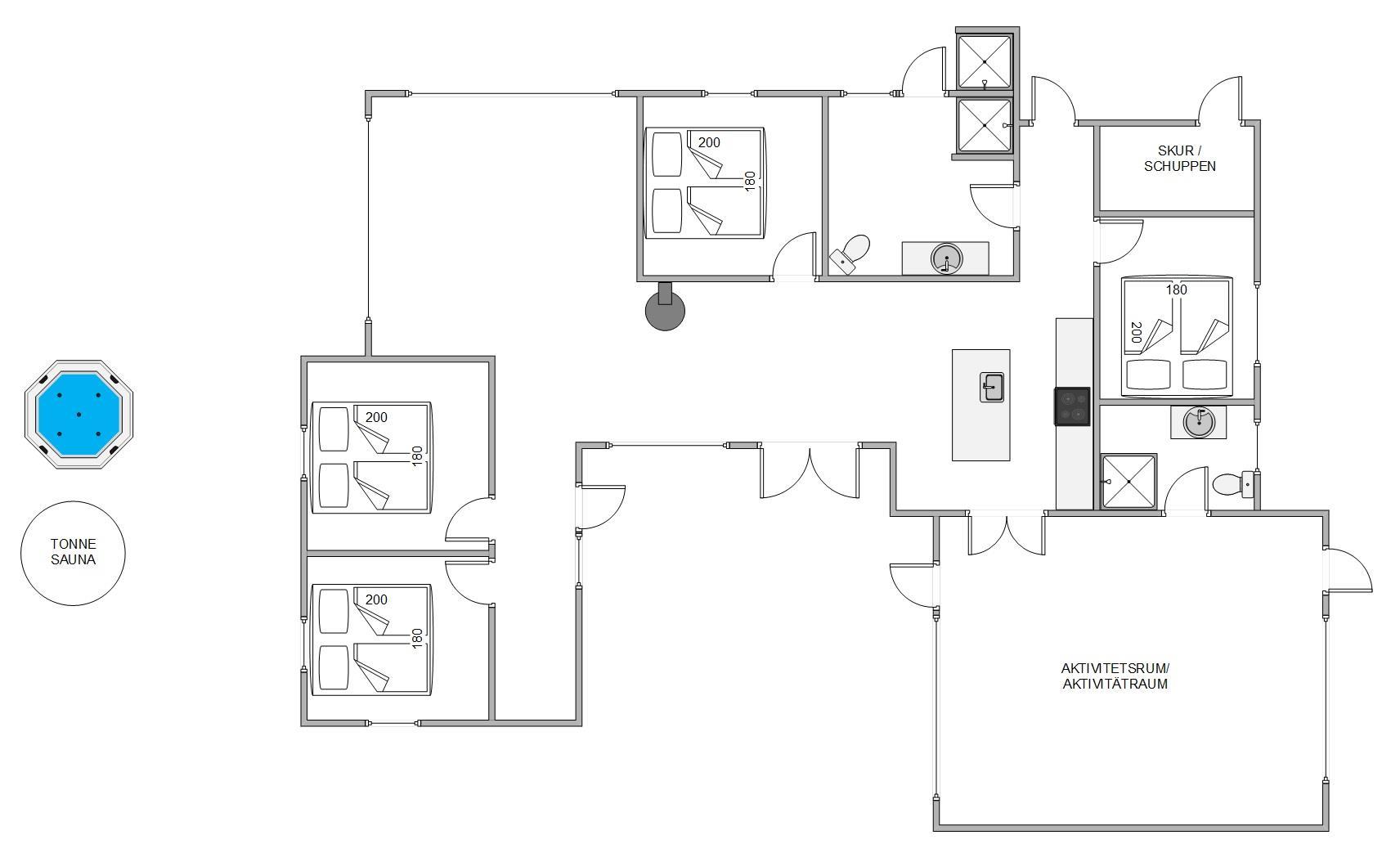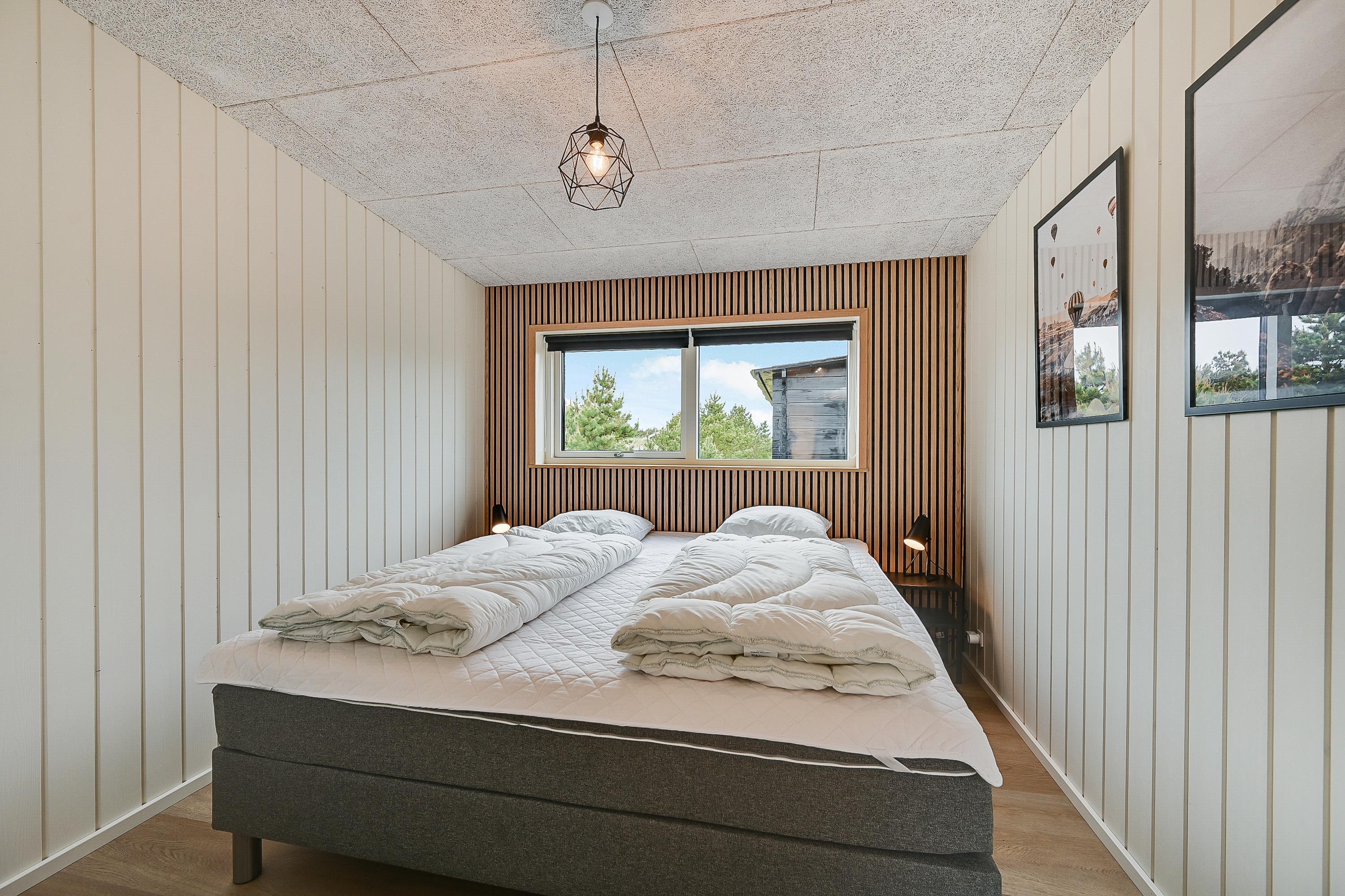 Aktivitetshuset er opført i 2021, og den stilfulde indretning med moderne interiør opfylder selv den mest kræsne feriegæsts drømme. De fire soveværelser er alle sammen udstyret med gode dobbeltsenge (180x200), og med 2 badeværelser er I sikre på at slippe for lange køer til brusebadet om morgenen.