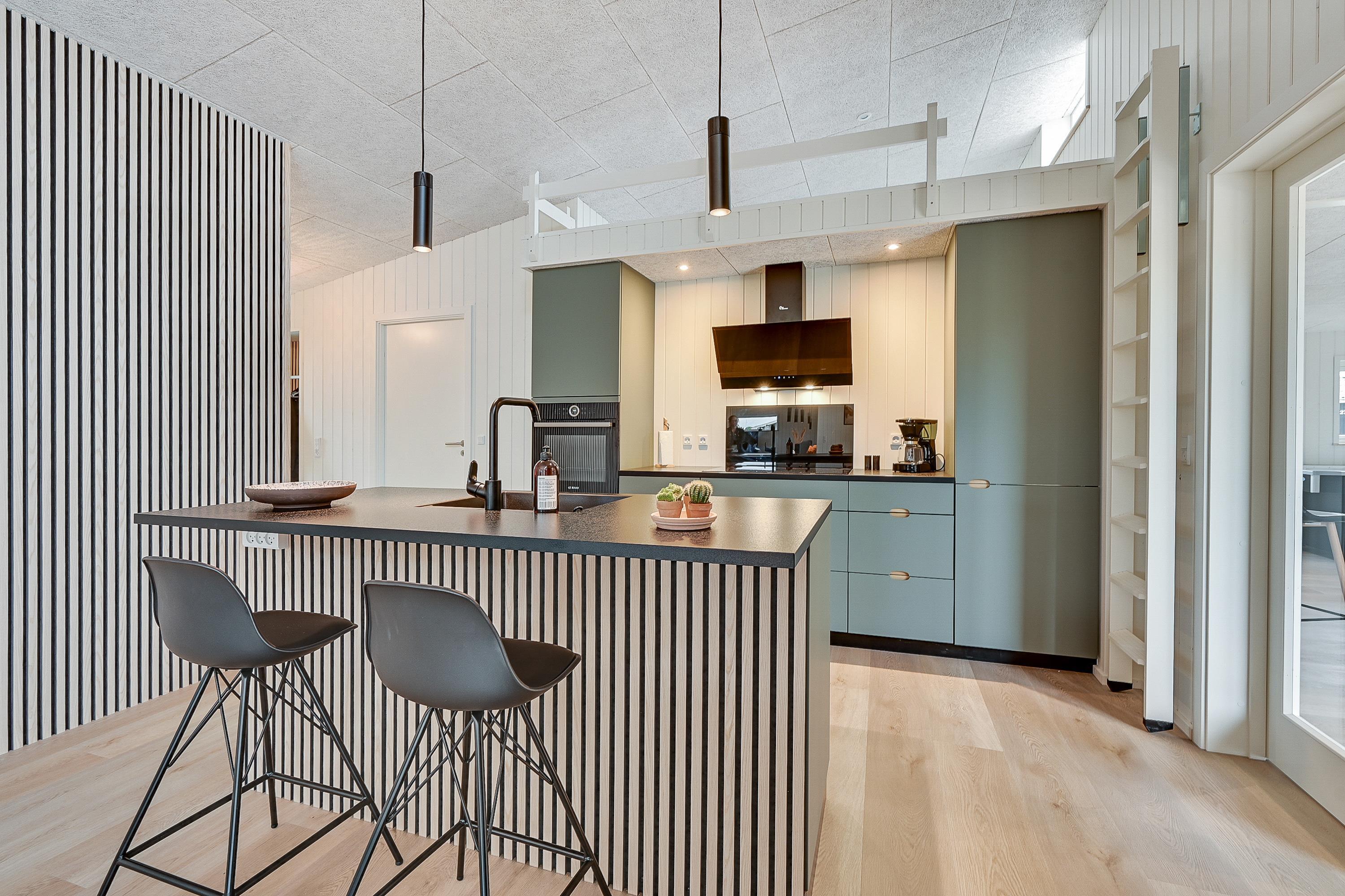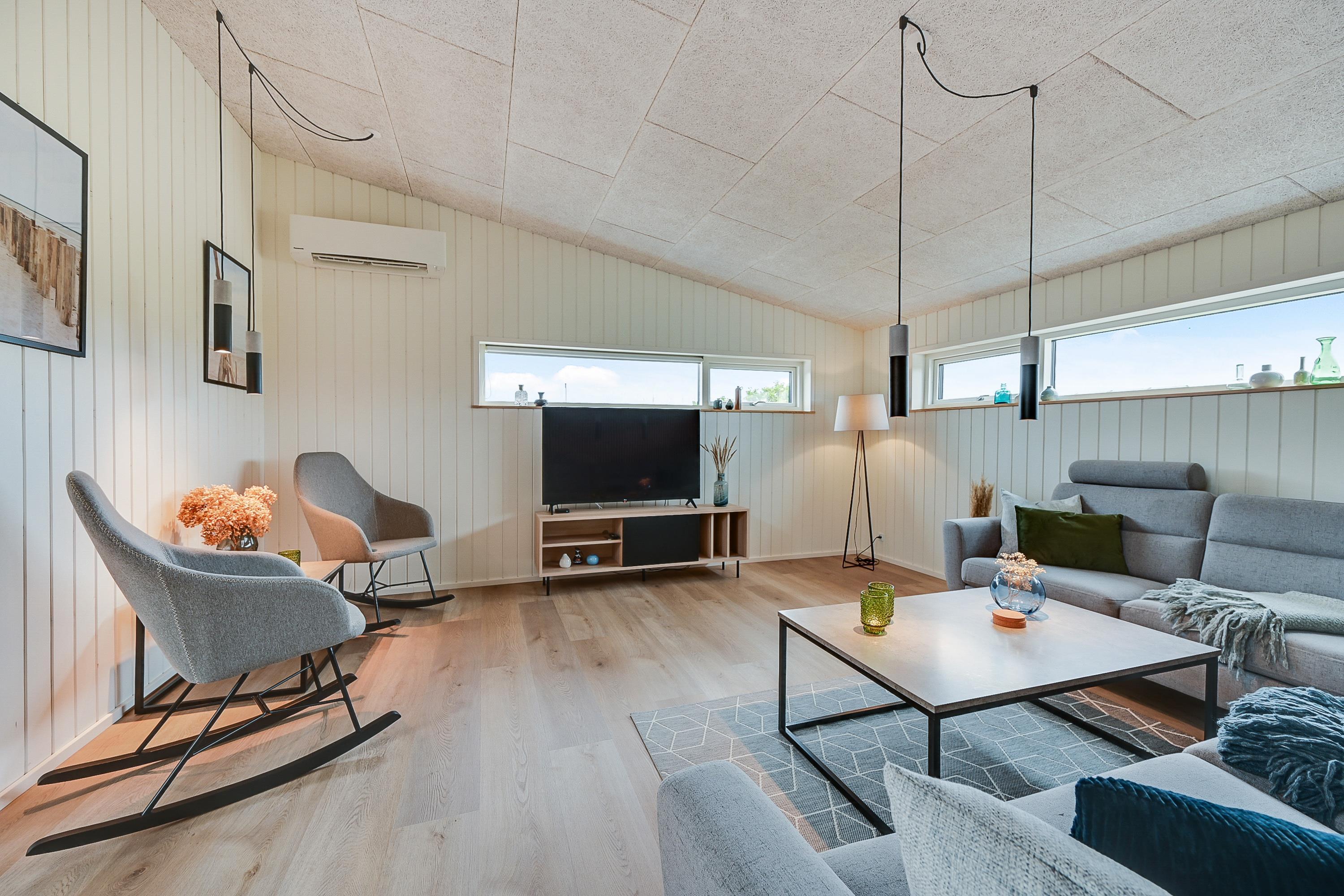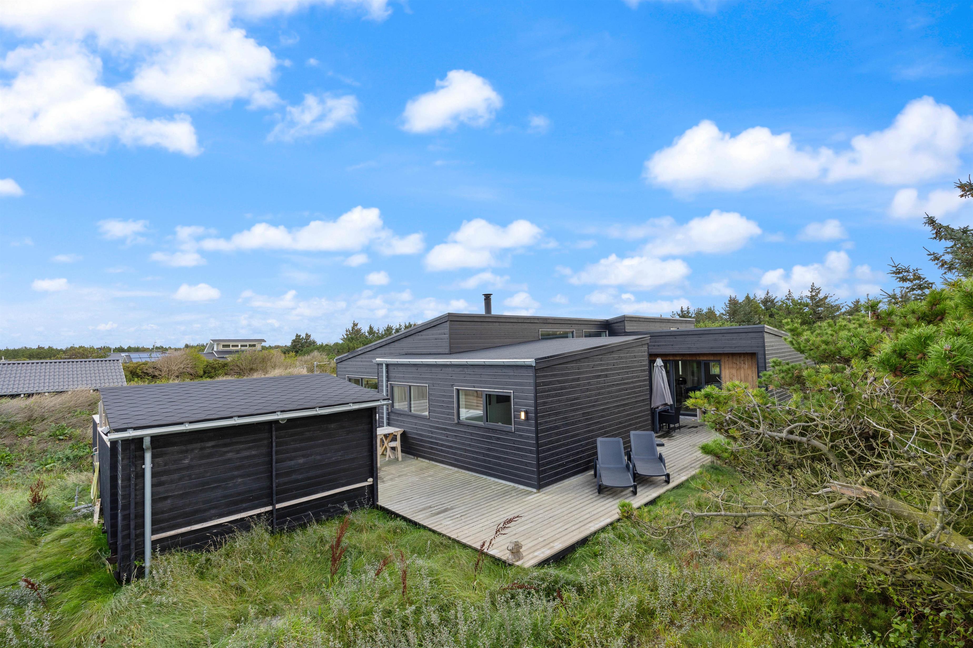 Aktivitetshuset er opført i 2021, og den stilfulde indretning med moderne interiør opfylder selv den mest kræsne feriegæsts drømme. De fire soveværelser er alle sammen udstyret med gode dobbeltsenge (180x200), og med 2 badeværelser er I sikre på at slippe for lange køer til brusebadet om morgenen.