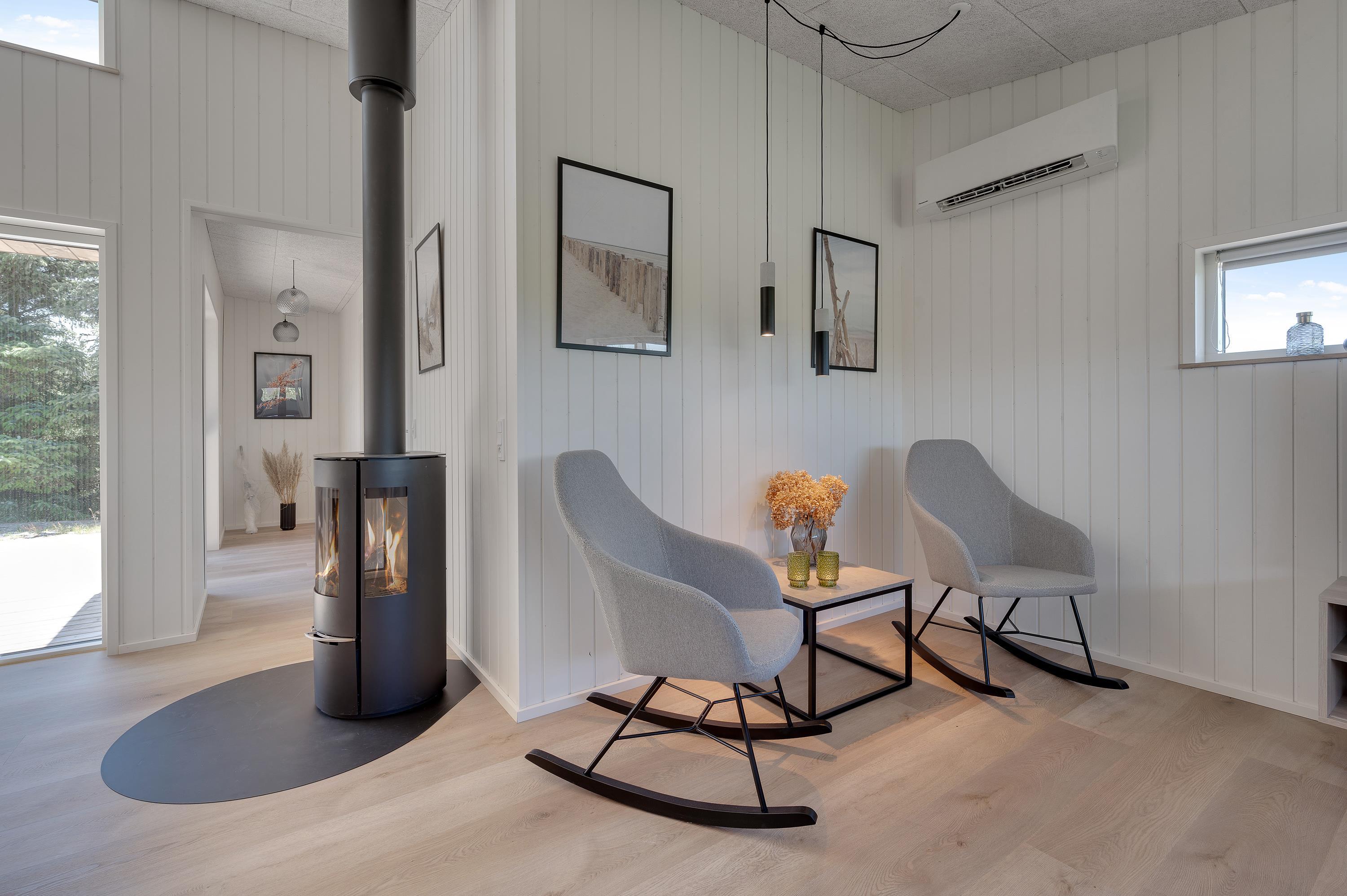 Brændeovnen står for den klassiske feriehygge, og en energivenlig varmepumpe sikrer, at I har en behagelig temperatur hele året rundt uden de store omkostninger.