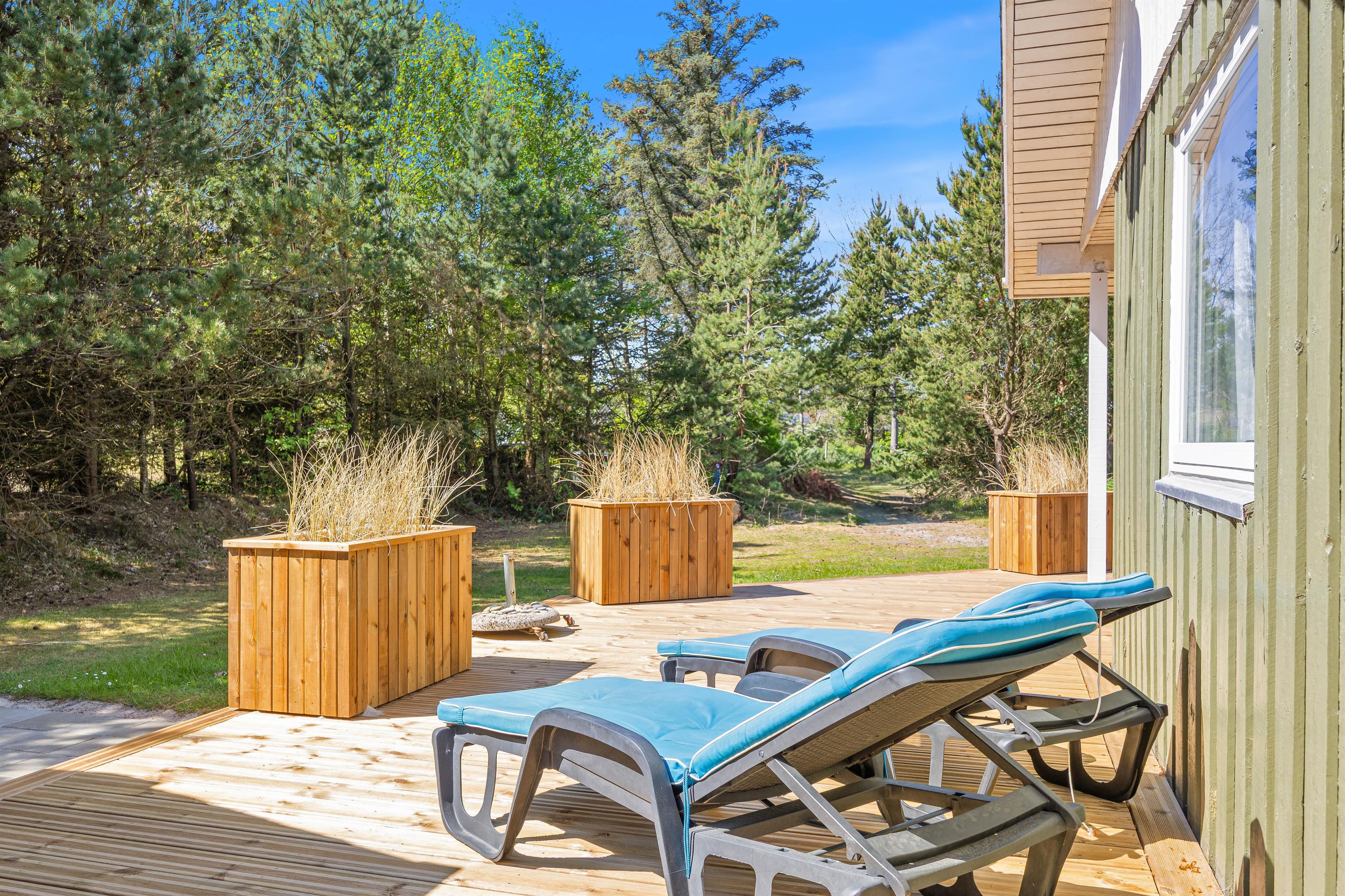 De store, træbeklædte terrasser – hvoraf en del er overdækket – indbyder til udeliv fra morgen til aften. Her finder I naturligvis havemøbler, liggestole og en grill, så I kan tilberede lækre feriemåltider under åben himmel. En vellykket feriedag kan passende rundes af med en hyggelig grillmiddag på terrassen, mens aftensolen langsomt går ned.
