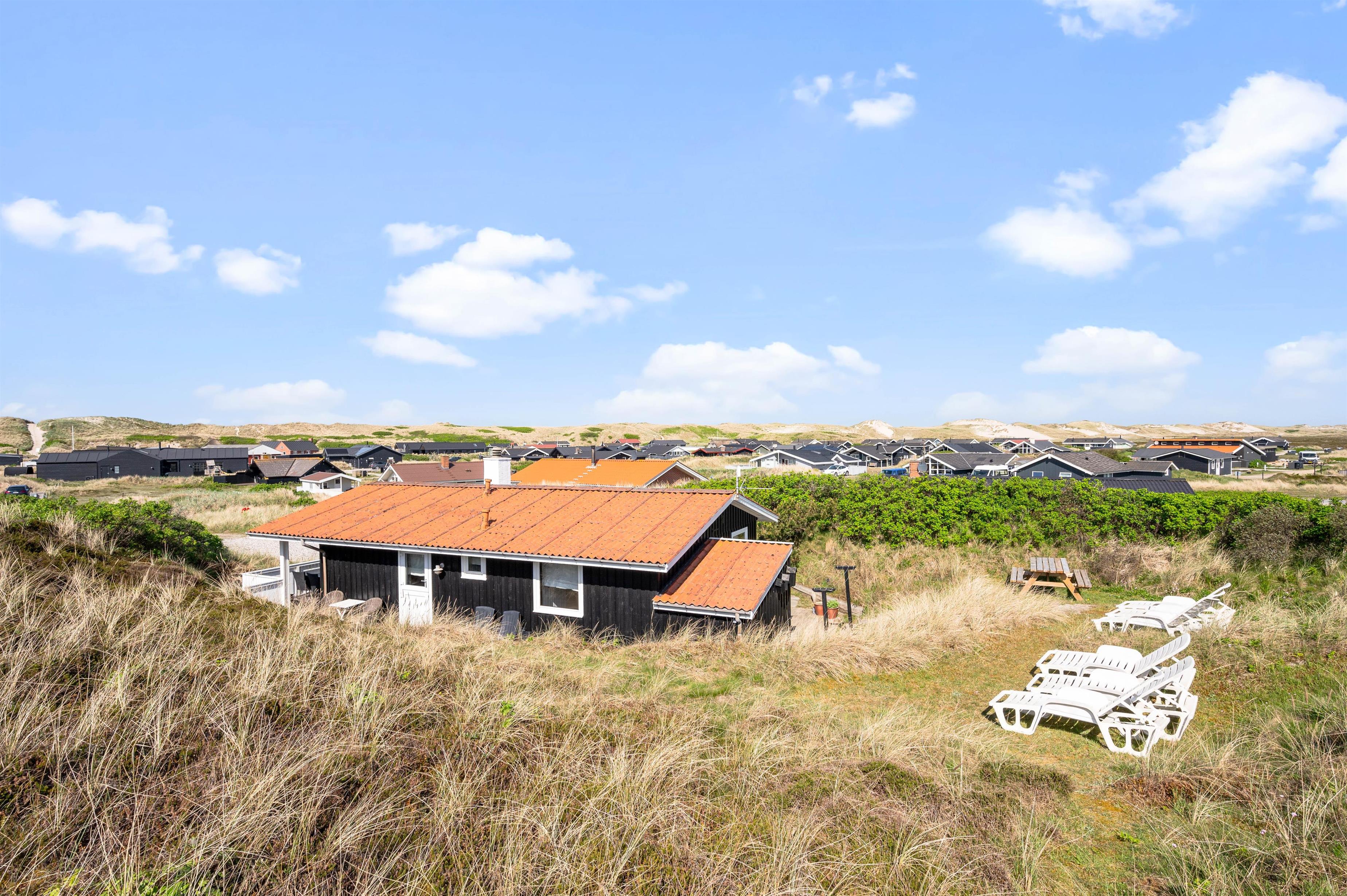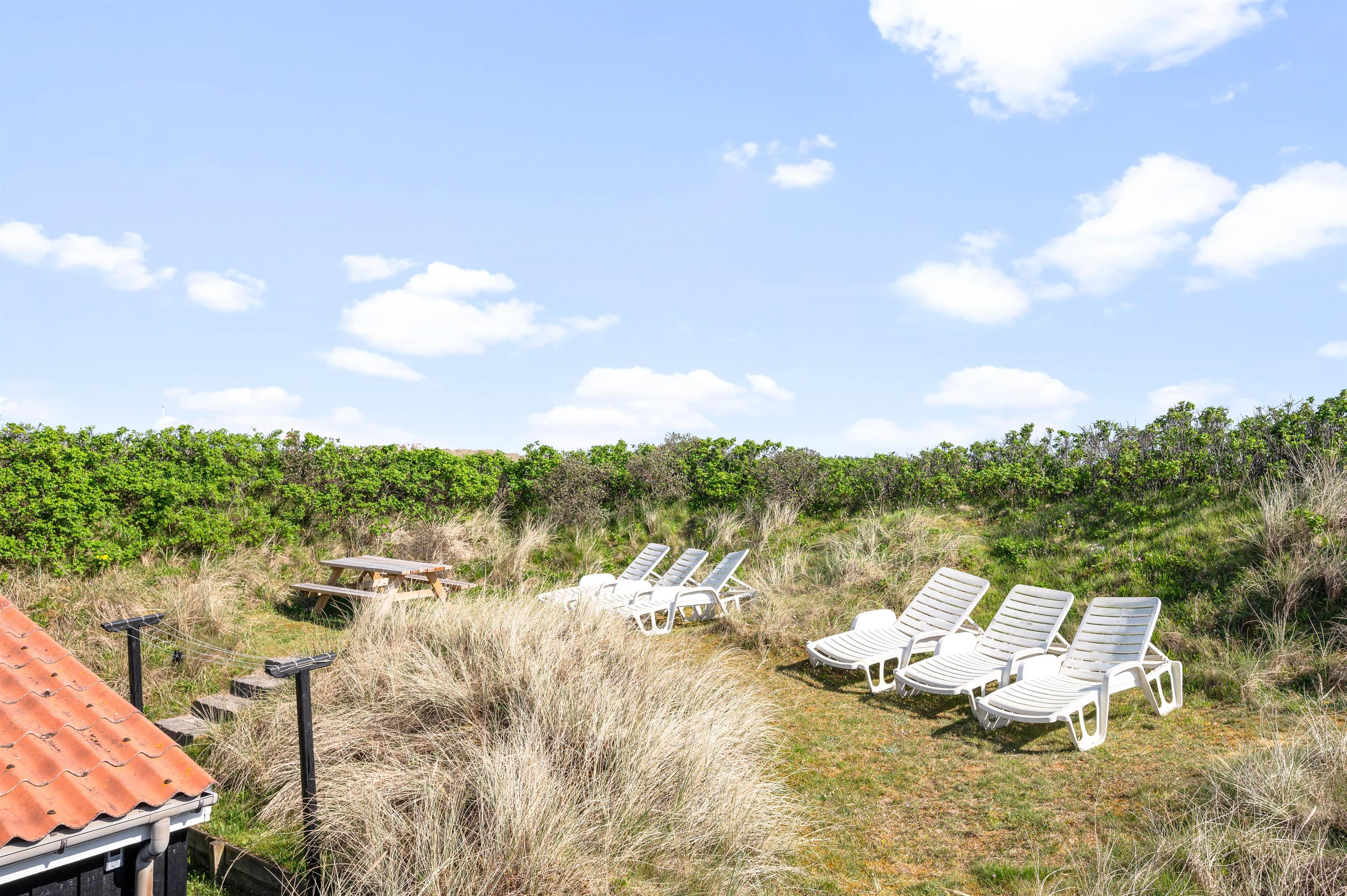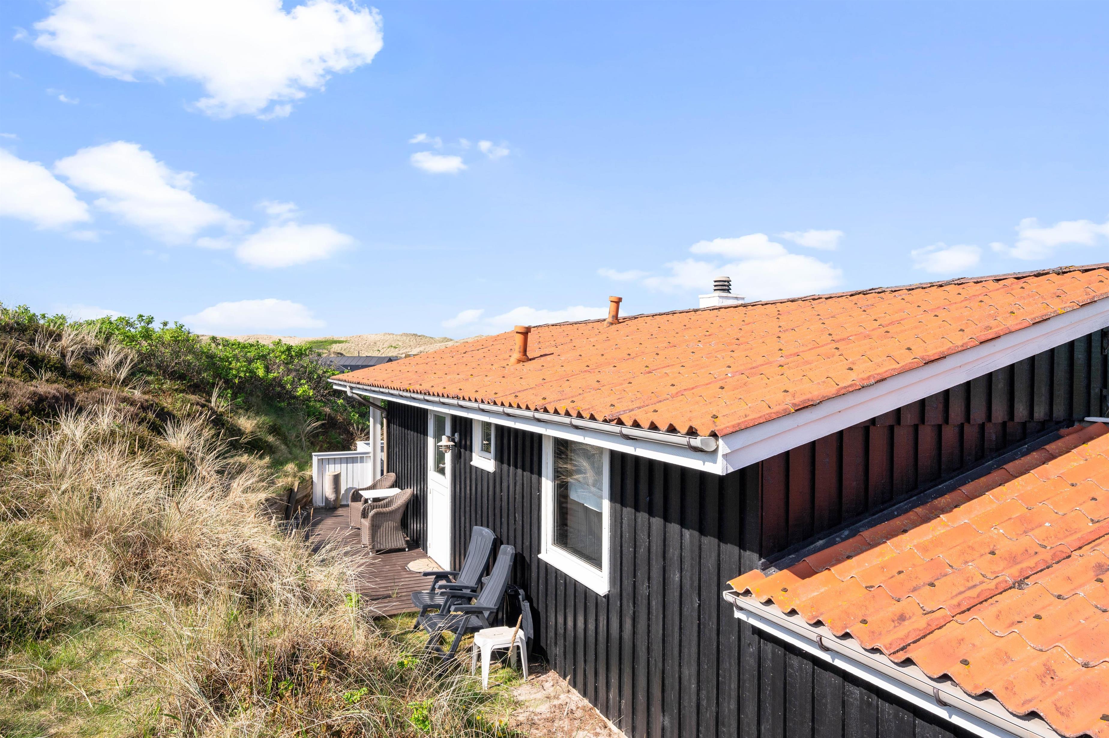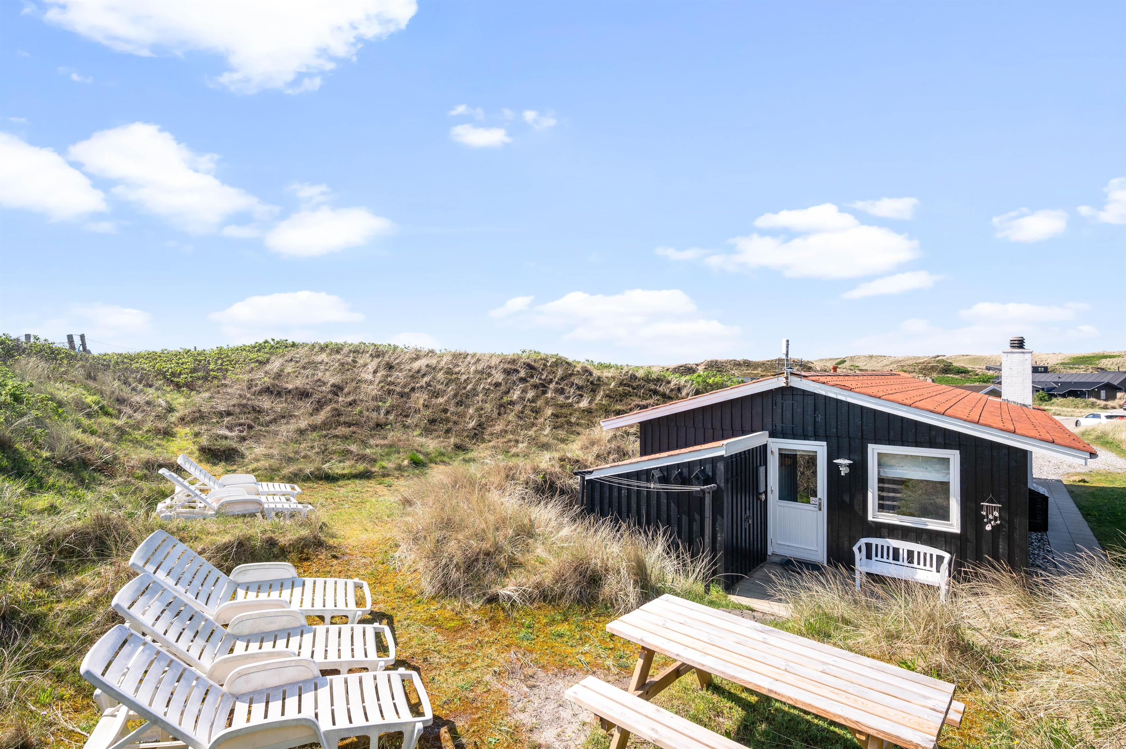 Fra feriehuset er der også en fin udsigt til klitterne. Så uanset om I tager morgenkaffen inde i sommerhuset eller ligger ude på terrassen, så kan I nyde de marehalmsbeklædte klitter, der er pryder landskabet.