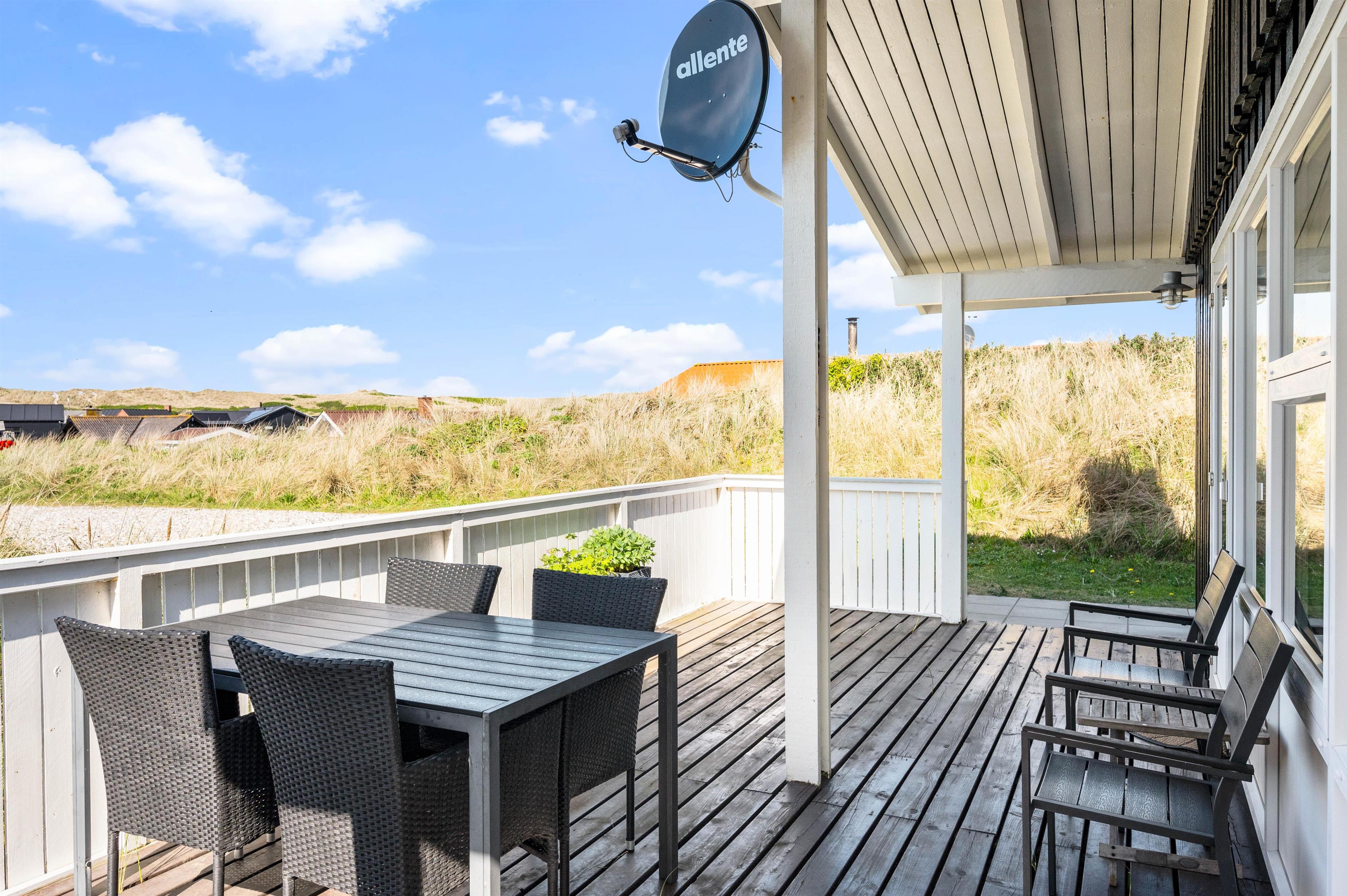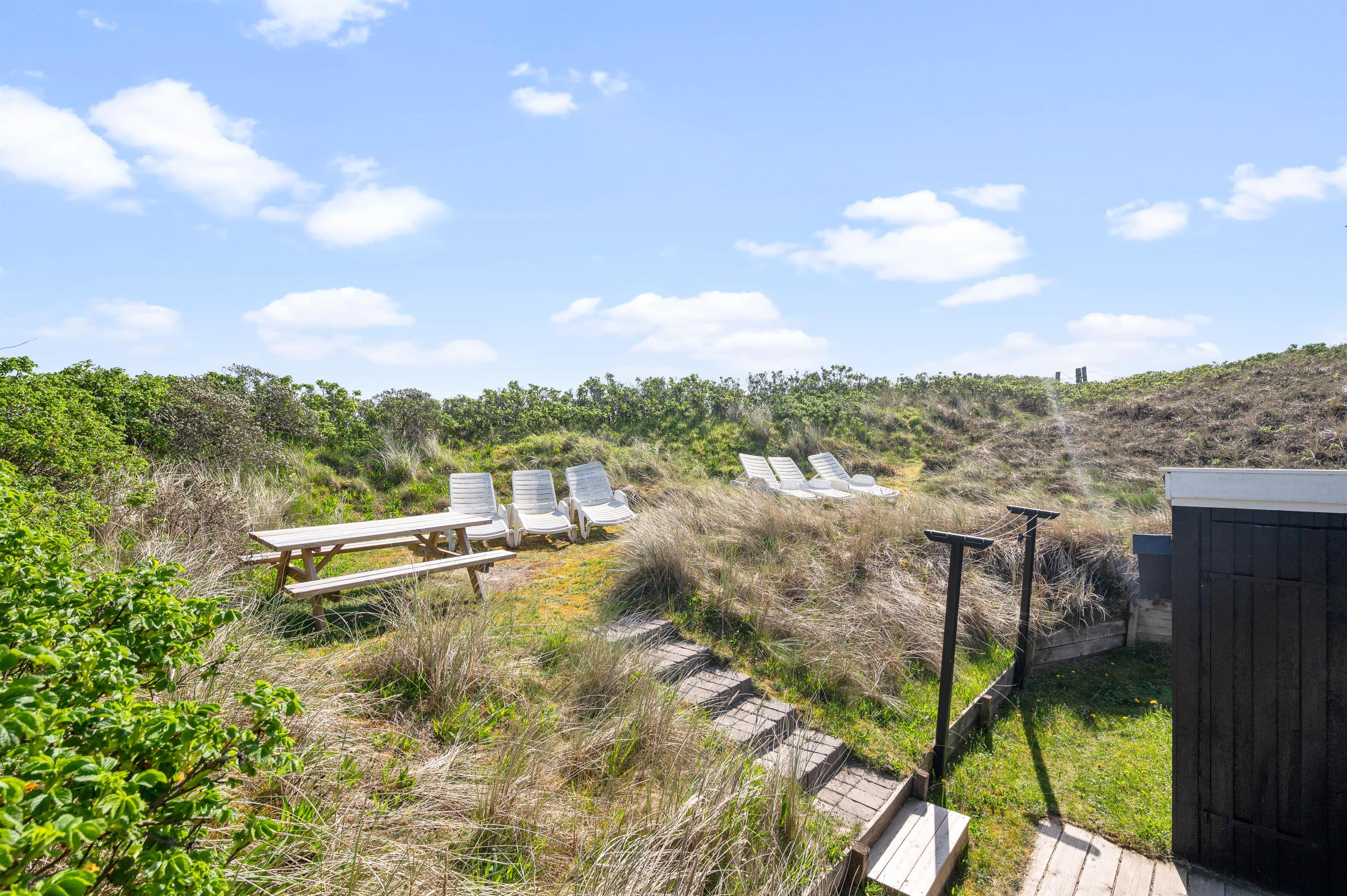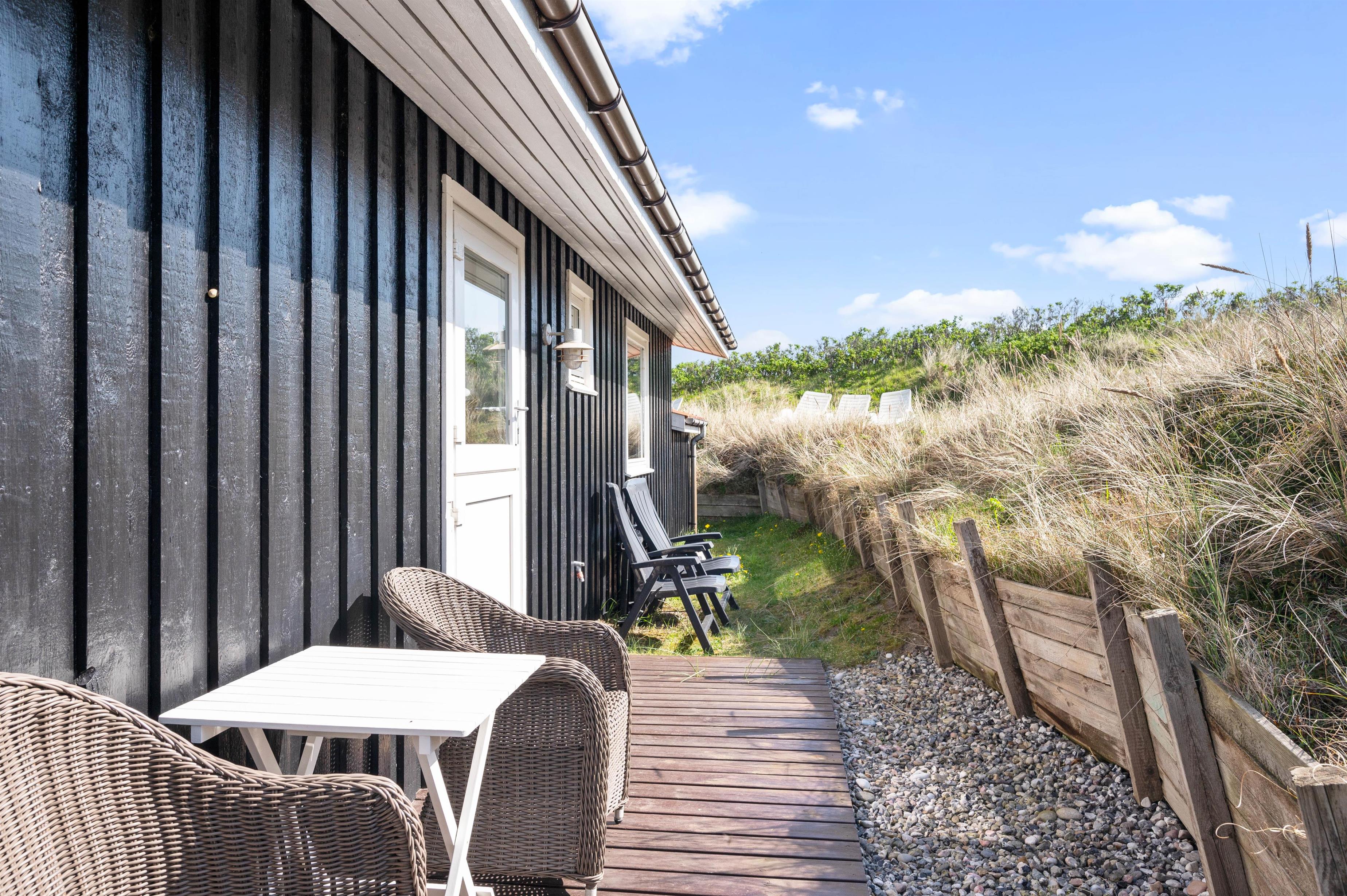 Fra feriehuset er der også en fin udsigt til klitterne. Så uanset om I tager morgenkaffen inde i sommerhuset eller ligger ude på terrassen, så kan I nyde de marehalmsbeklædte klitter, der er pryder landskabet.