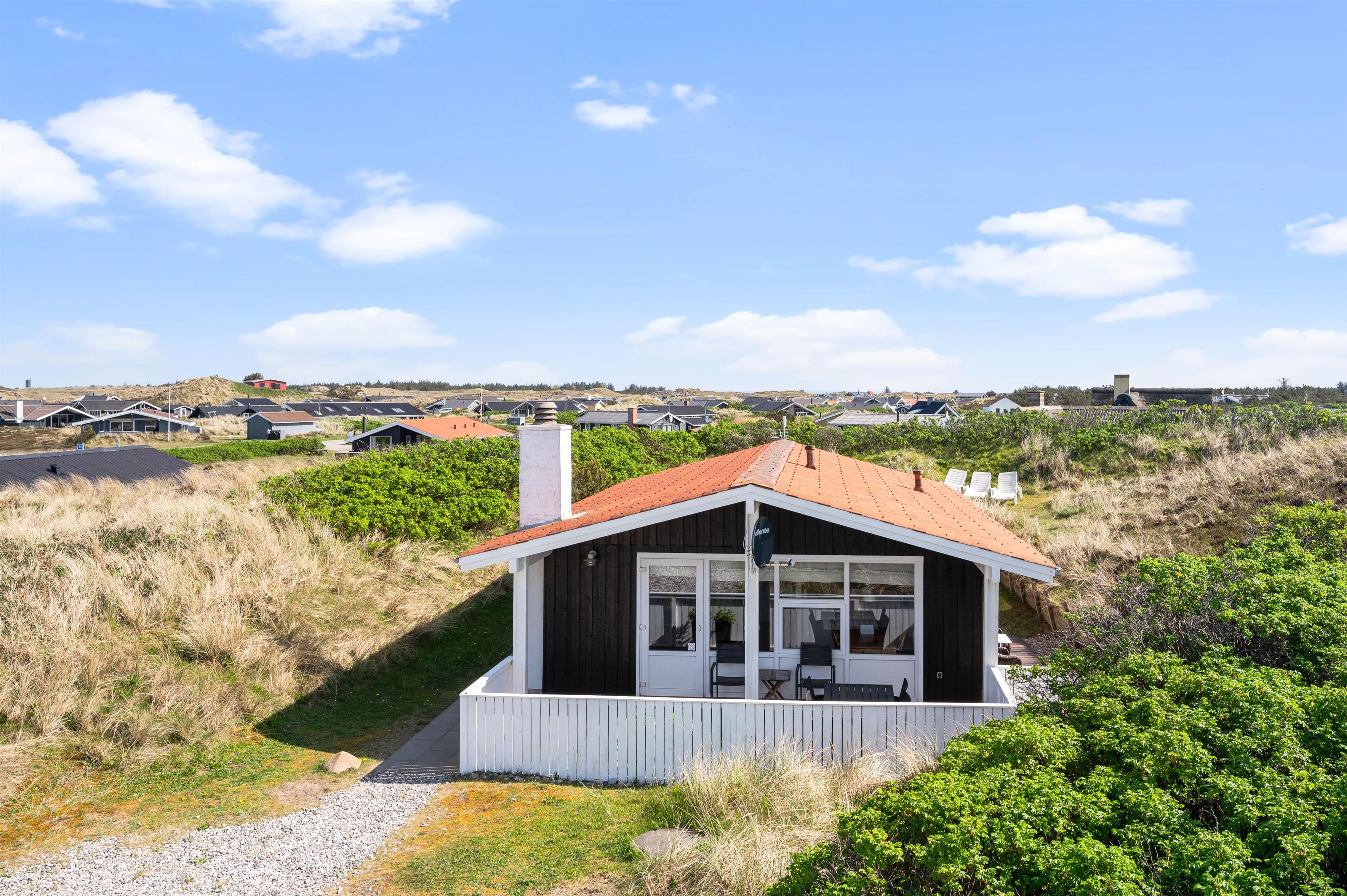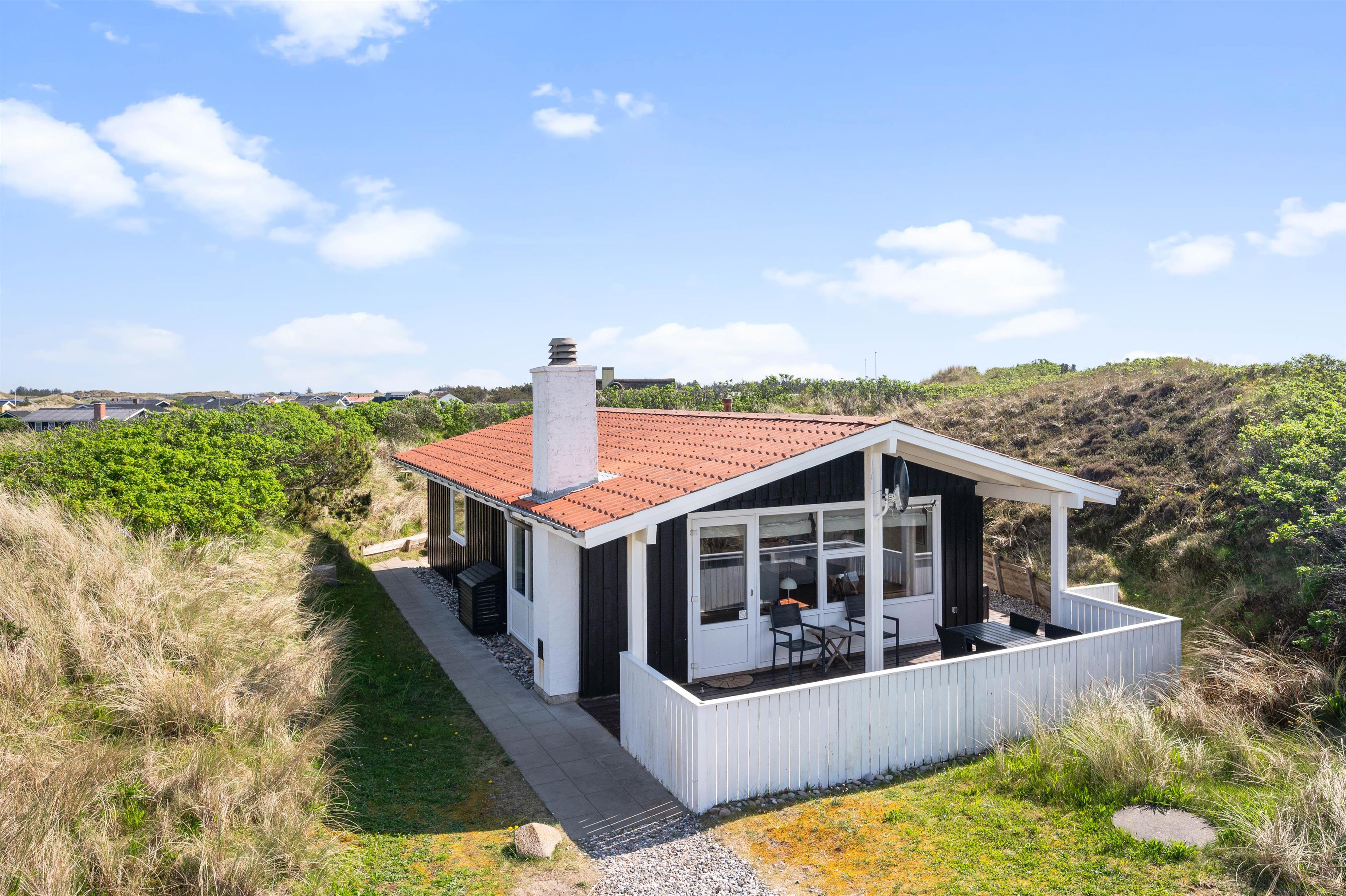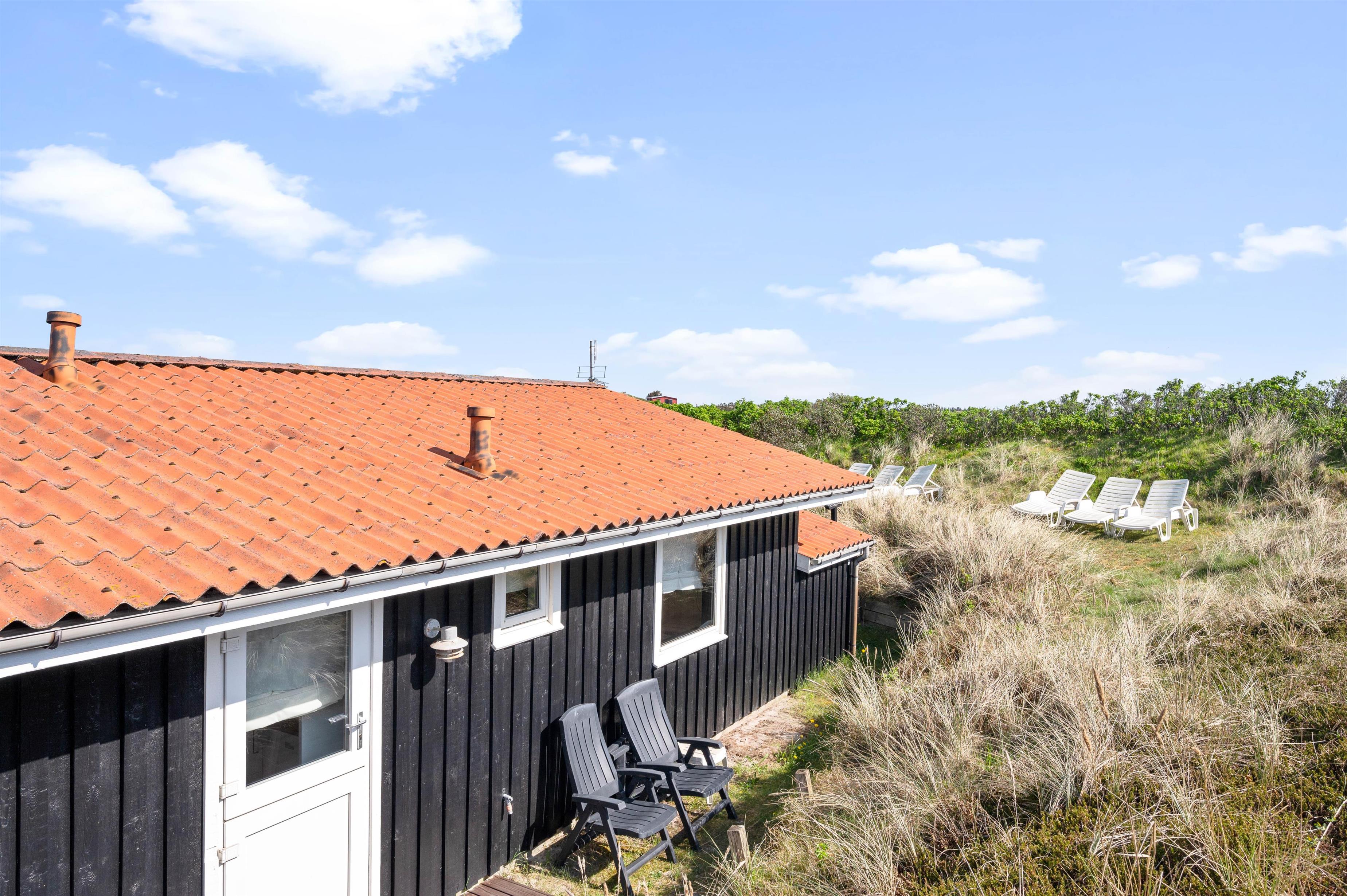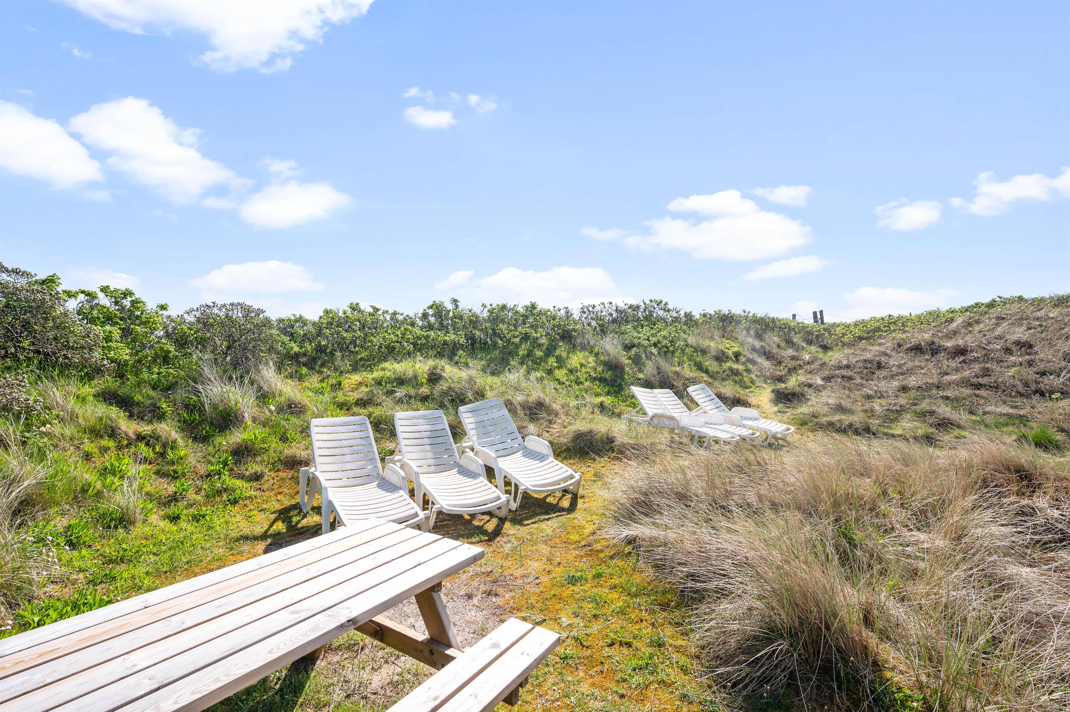 Fra feriehuset er der også en fin udsigt til klitterne. Så uanset om I tager morgenkaffen inde i sommerhuset eller ligger ude på terrassen, så kan I nyde de marehalmsbeklædte klitter, der er pryder landskabet.