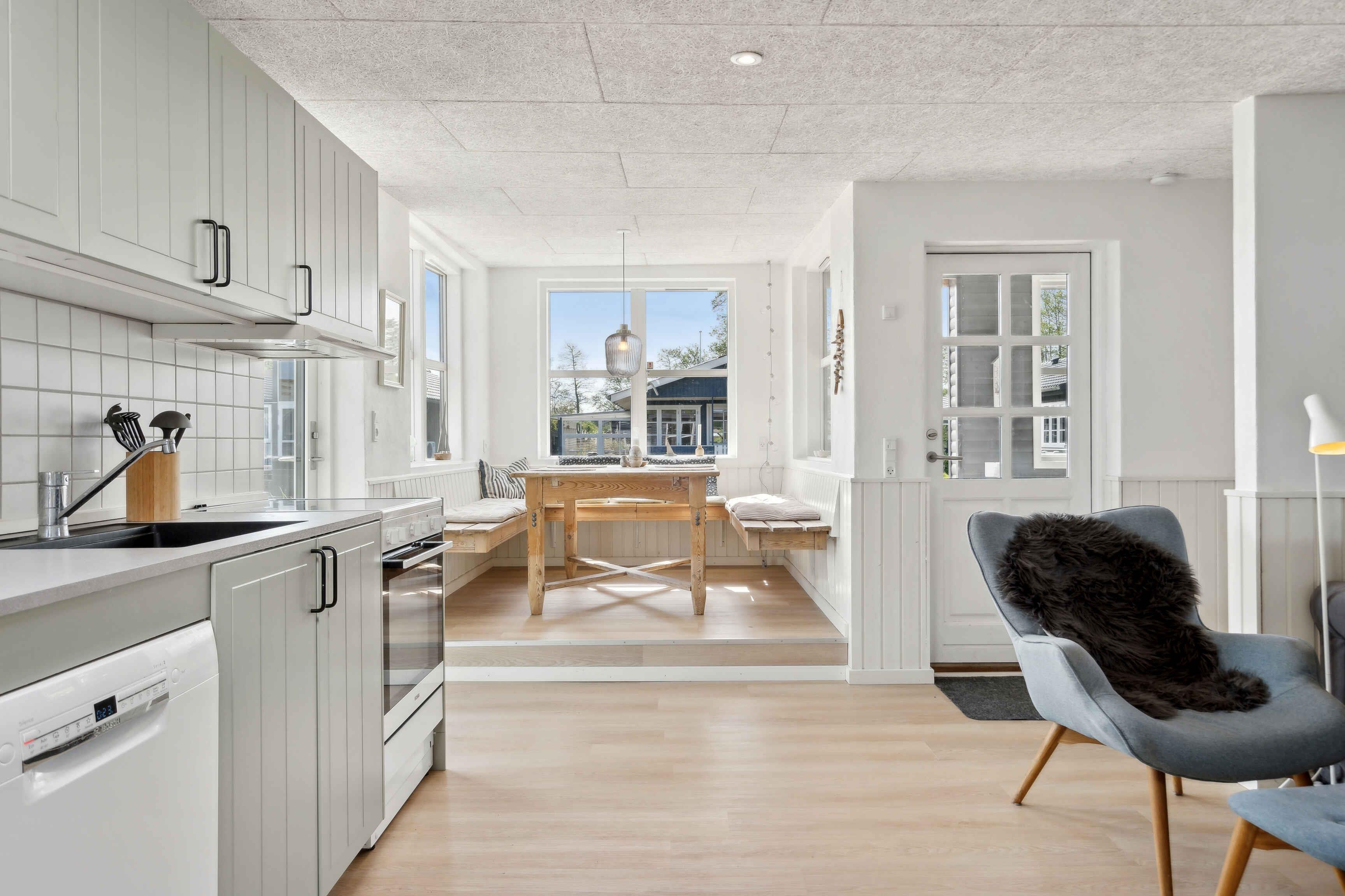 Dette lyse og indbydende sommerhus tilbyder ideelle rammer for en afslappende ferie. Med tre soveværelser og plads til fem personer er der rig mulighed for at nyde samvær og ro. Den åbne havestue skaber en perfekt overgang mellem inde og ude. Her kan man nyde aftenerne med en god bog eller et måltid, mens man kigger ud mod vandet. Huset ligger kun 100 meter fra stranden, hvor børnevenlige forhold gør det nemt at nyde en dag ved kysten. Udsigten til vandet skaber en særlig atmosfære, som giver ro og fornyet energi. Området omkring huset er præget af smukke kyststrækninger og hyggelige stier, hvor man kan tage på afslappende gåture eller cykelture. Der er gode muligheder for at udforske den lokale natur, som byder på skov, strand og små landsbyer med charmerende caféer. Dette sommerhus tilbyder den perfekte base for familier eller venner, der ønsker en ferie tæt på vandet og naturoplevelser. Her får I en skøn kombination af ro og nærhed til oplevelser. Obs, udlejes ikke til erhversmæssigt brug.