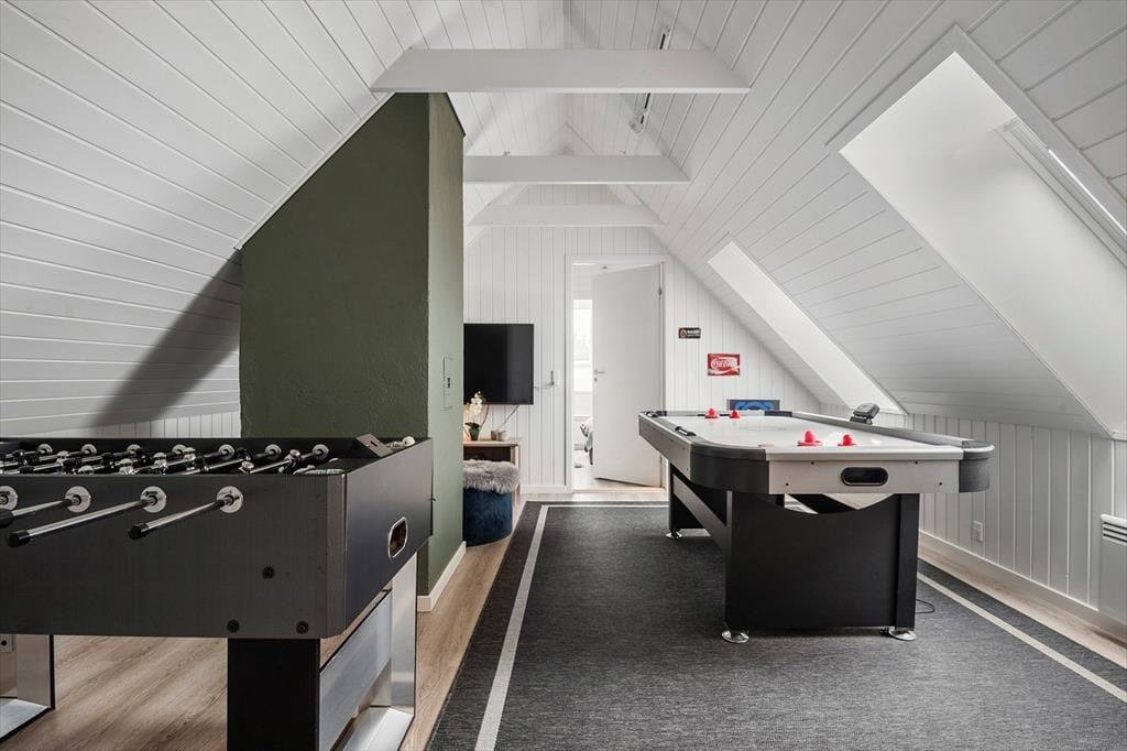 Selvom enhver vandhund må være himmelhenrykt for at holde ferie i et luksushus med pool, spa og deslige, er det nu også skønt med en dukkert i Vesterhavet. Og hvis det netop er sådan en saltvandsindsprøjtning, I trænger til, er det herligt, at sommerhuset ligger blot 350 meter fra Blåvand Strand. Og hvis det ikke er badevejr, er det stadig skønt at bo nær havet, for en gåtur langs med kysten er en herlig måde at få frisk luft og motion året rundt. Alternativt kan I gå den korte tur ind til bymidten, som byder på flere gode restauranter, en slagter og delikatessebutikker foruden shoppingmuligheder for hele familien. Både store og små kan desuden se frem til at besøge Blåvand Zoo og Tirpitz-museet – sidstnævnte er ikke bare et spændende museum, men også et imponerende byggeri, der er tegnet af den verdenskendte arkitekt Bjarke Ingels fra tegnestuen BIG.