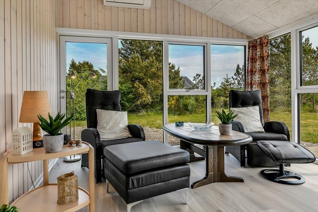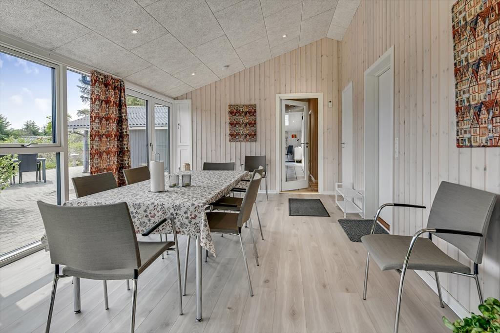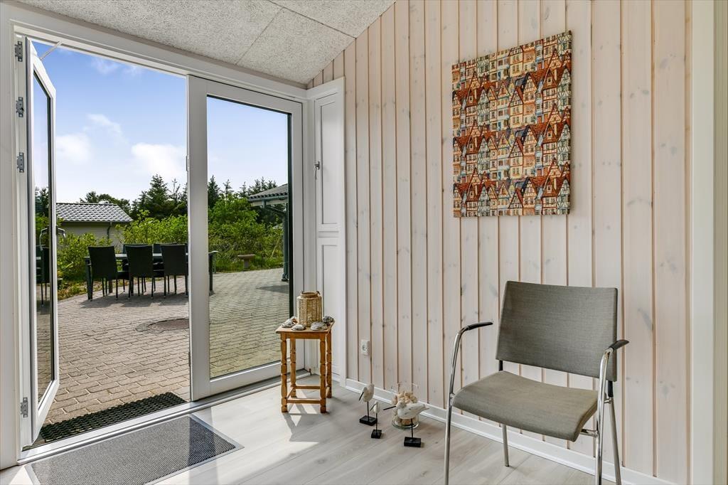 Der er en dejlig, afslappet atmosfære i sommerhuset på Grønnevænget 3 – præcis sådan, som man drømmer om, når man pakker bilen og kører mod vest. Indretningen emmer af feriestemning, og både stuen og spiseområdet indbyder til lange, rolige timer med brætspil, en god bog eller hyggelige samtaler over middagsbordet. Når det er koldt udenfor, er det skønt at tænde op i brændeovnen og mærke varmen brede sig i rummet, mens flammerne knitrer. En af husets helt store attraktioner er den fantastiske udestue, som hurtigt bliver et yndlingssted at opholde sig – uanset om solen bager, eller regnen trommer let mod taget, kan du nyde udsigten til haven i fred og ro. Badeværelset er indrettet med sauna, så du kan forkæle dig selv med lidt ekstra wellness midt i ferien, og når mørket falder på, er det rart at kunne trække sig tilbage til et af sommerhusets gode soveværelser.