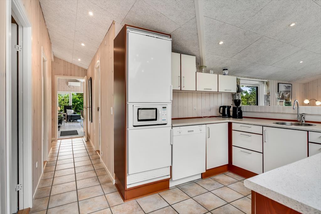 Haven omkring sommerhuset er en grøn oase med masser af privatliv og gode muligheder for at nyde livet i det fri. Den sydvendte terrasse er perfekt til solrige eftermiddage med kolde drikke og grillmad, og der er god plads til, at børnene kan lege på plænen, mens du læner dig tilbage i havestolen med en kop kaffe. Den smukke udestue skaber en glidende overgang mellem inde- og udeliv, så du kan nyde følelsen af at være i ét med naturen, selv når vejret ikke arter sig fra sin mest sommerlige side. Fra morgen til aften er haven og terrassen et ideelt sted at finde ro og lade batterierne op – og når solen går ned, er det oplagt at tænde stearinlys i udestuen og lade dagens sidste lys danne en fredfyldt ramme om aftenens samtaler.