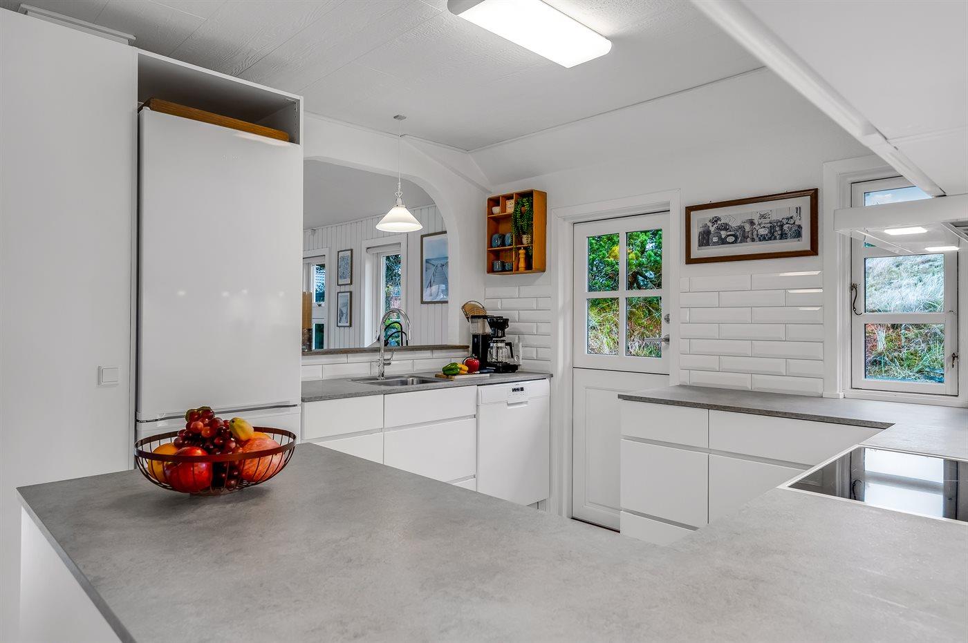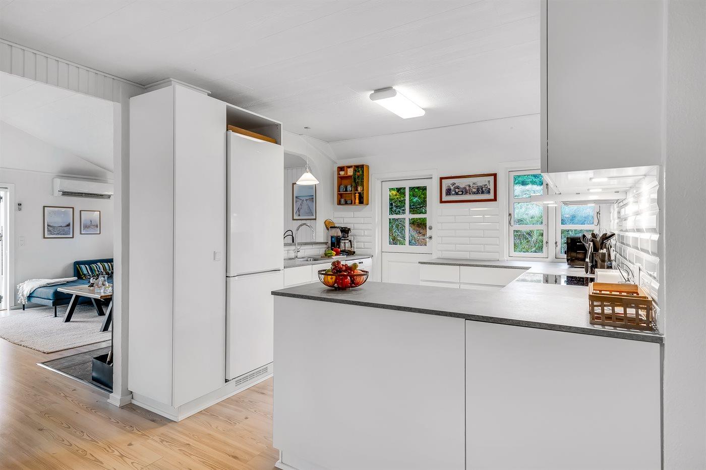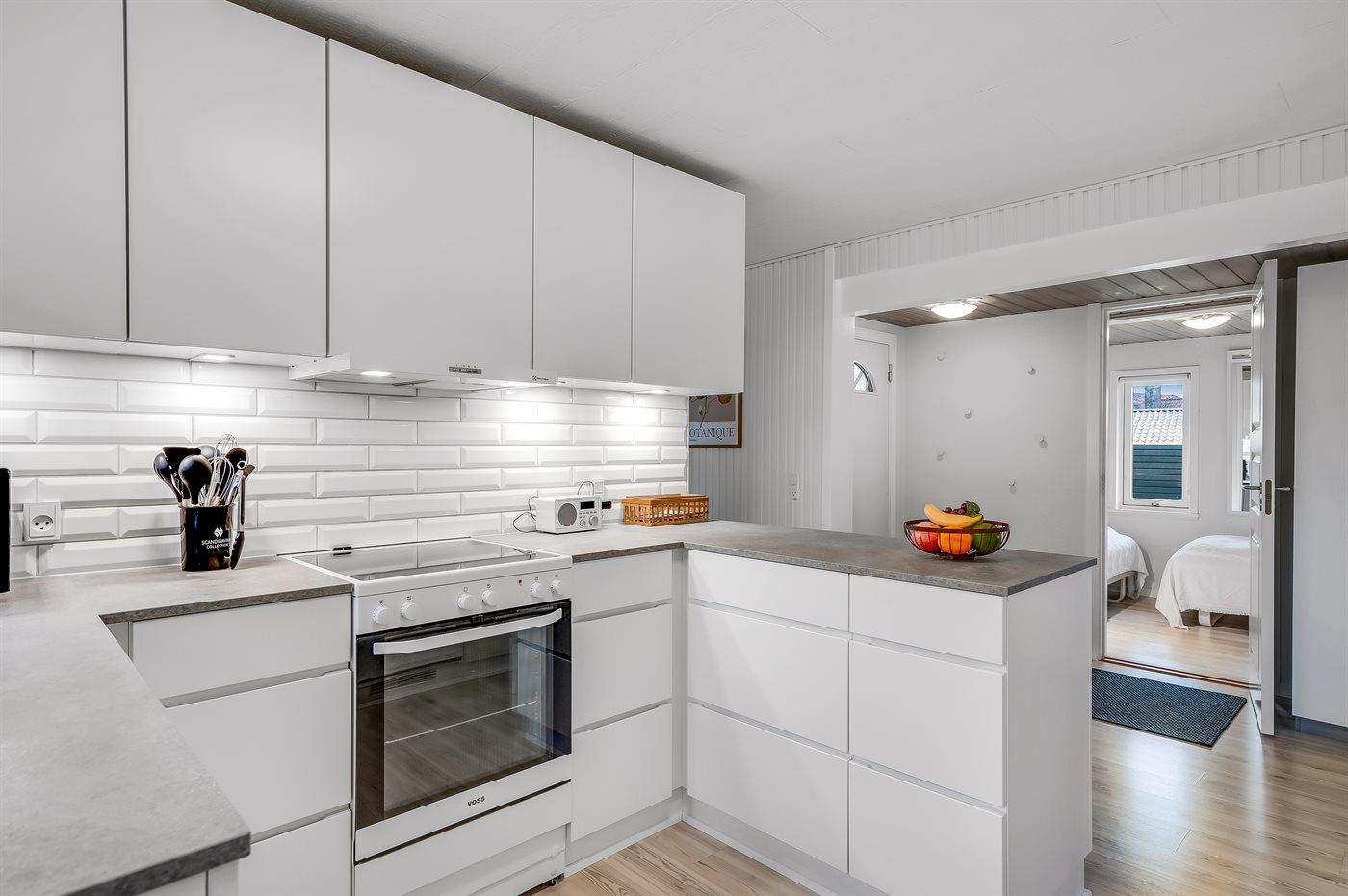 Køkkenet er udstyret med 1 køleskab. Der er 4 keramiske kogeplader, miniovn, mikrobølgeovn samt opvaskemaskine.