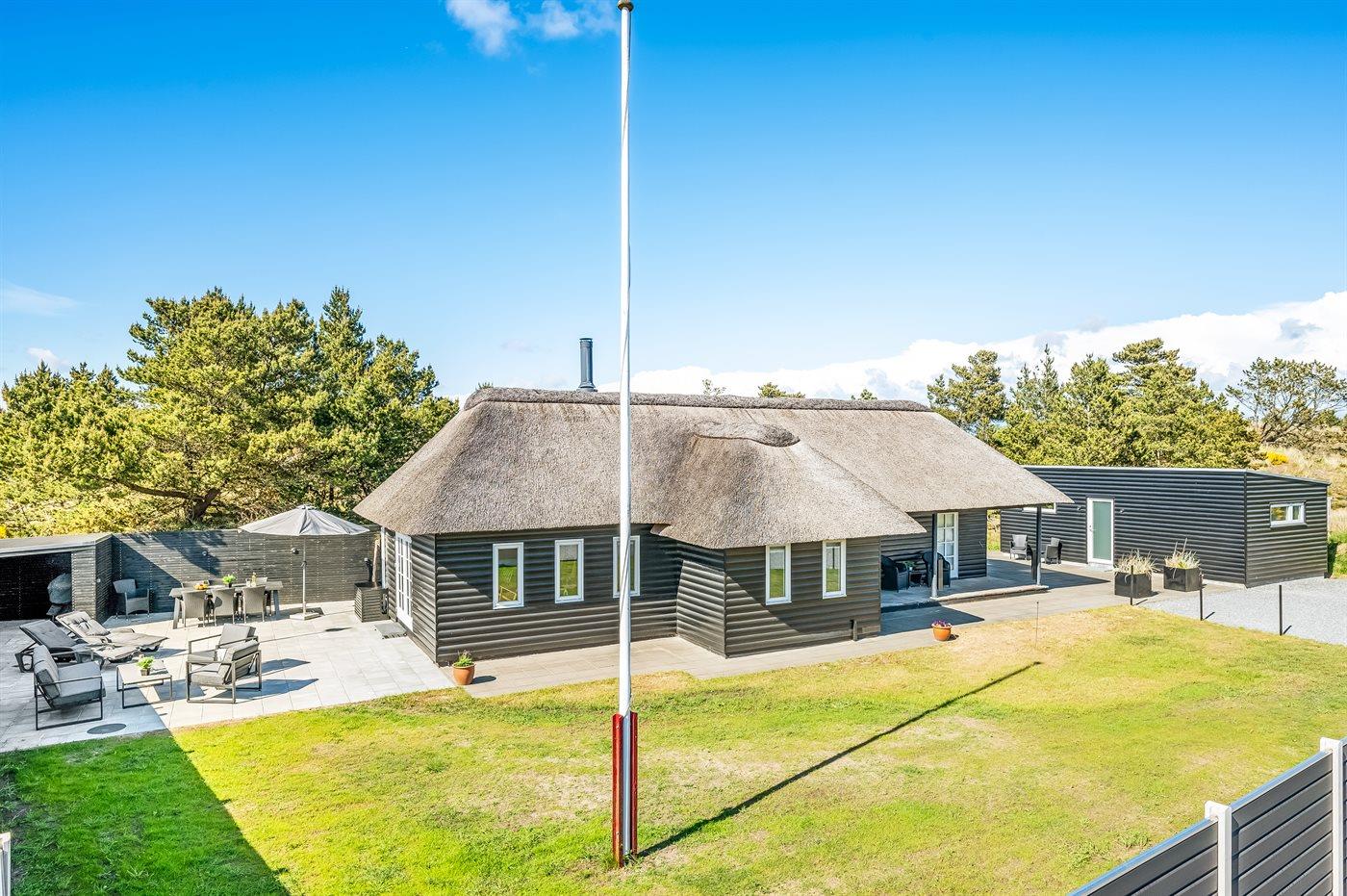 Et dejligt lyst sommerhus beliggende i naturskønne og rolige omgivelser - kun 100 m fra Blåvand centrum. Til huset hører en skøn, rund terrasse, som ligger midt i klitterne.