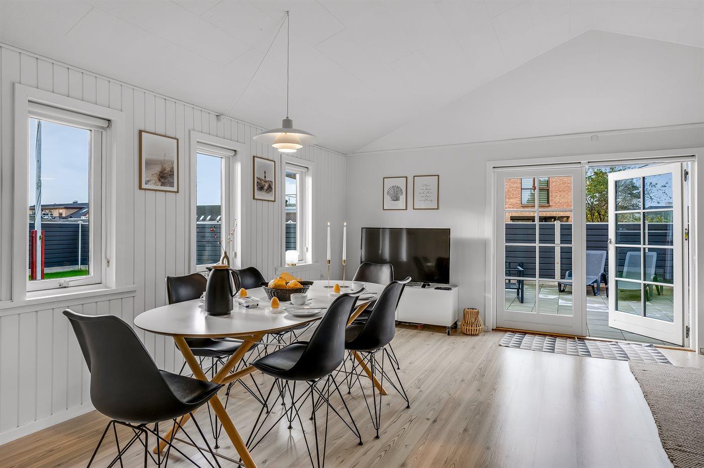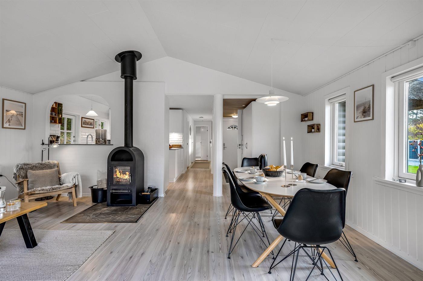Lyst sommerhus i Blåvand med terrasse, brændeovn og nær centrum i rolige omgivelser.