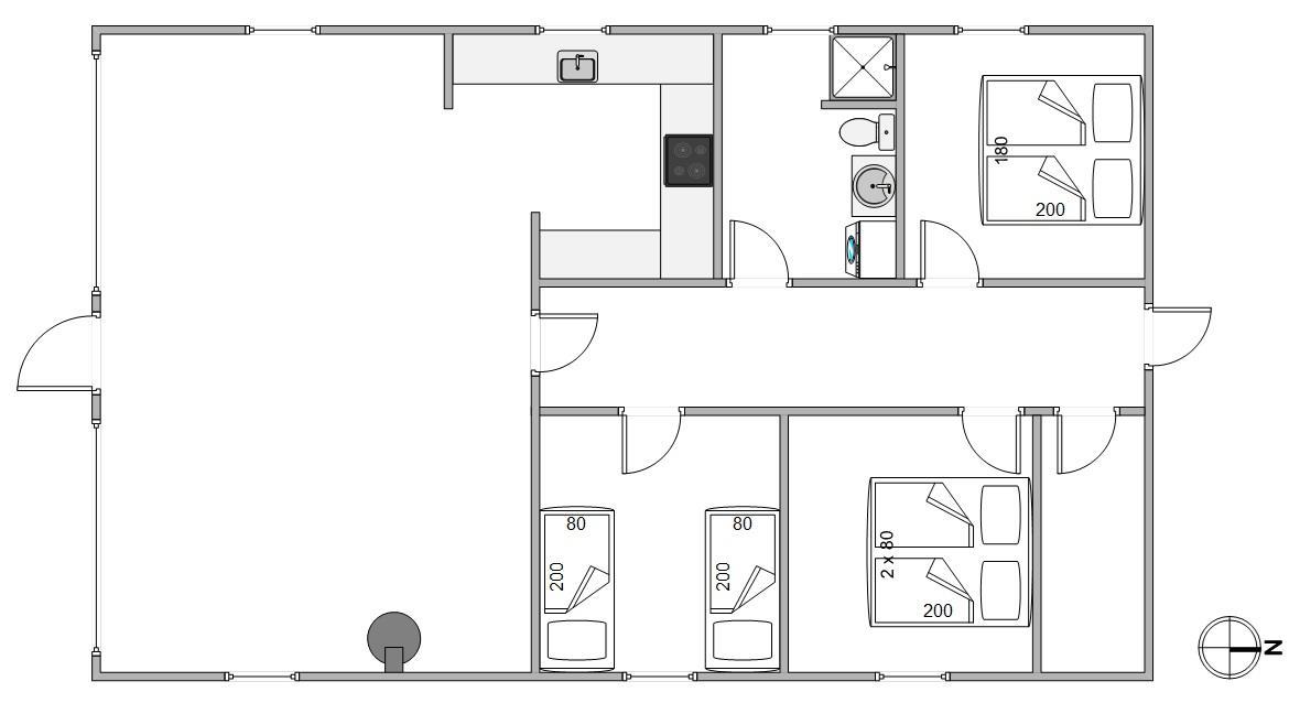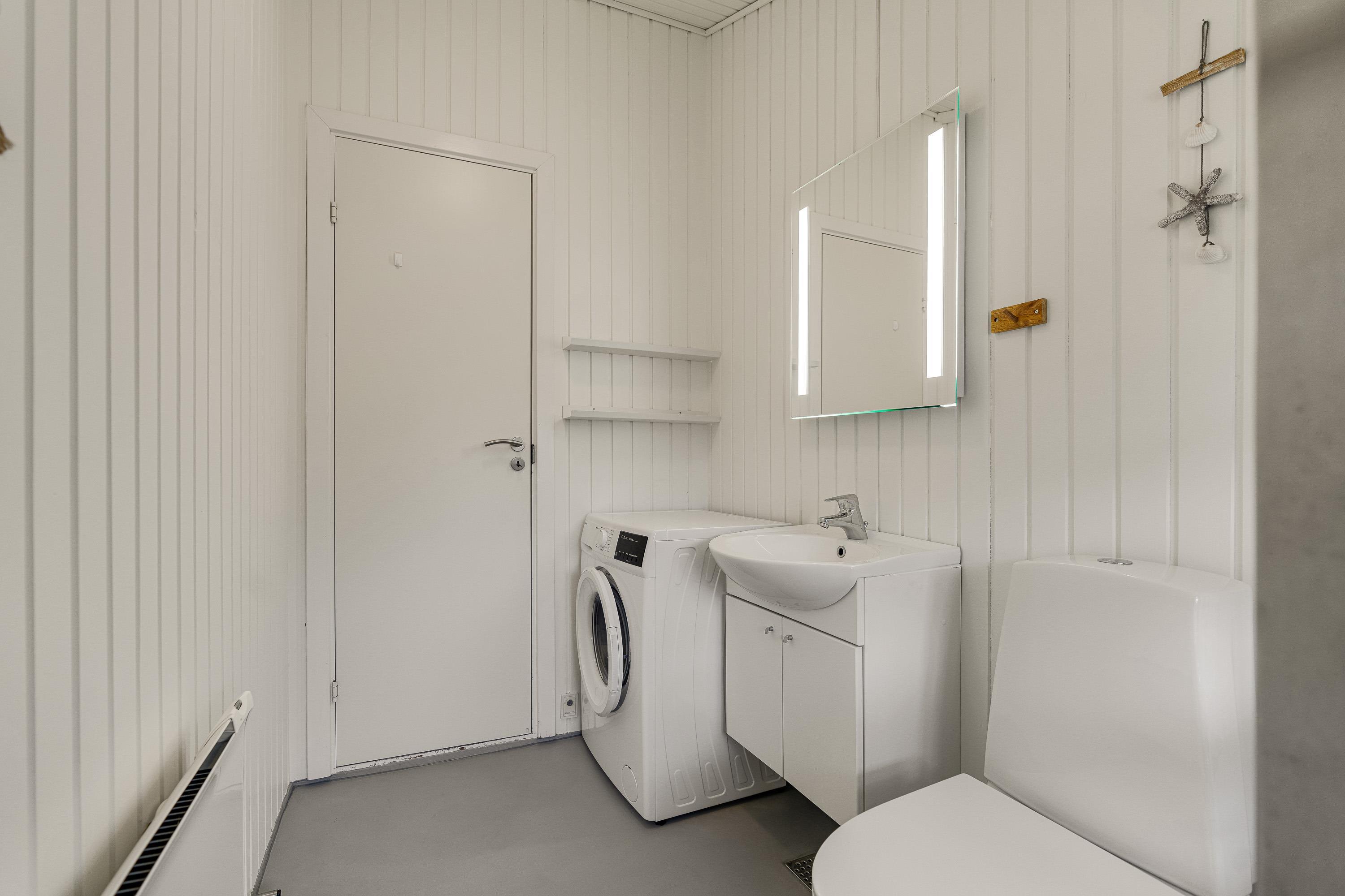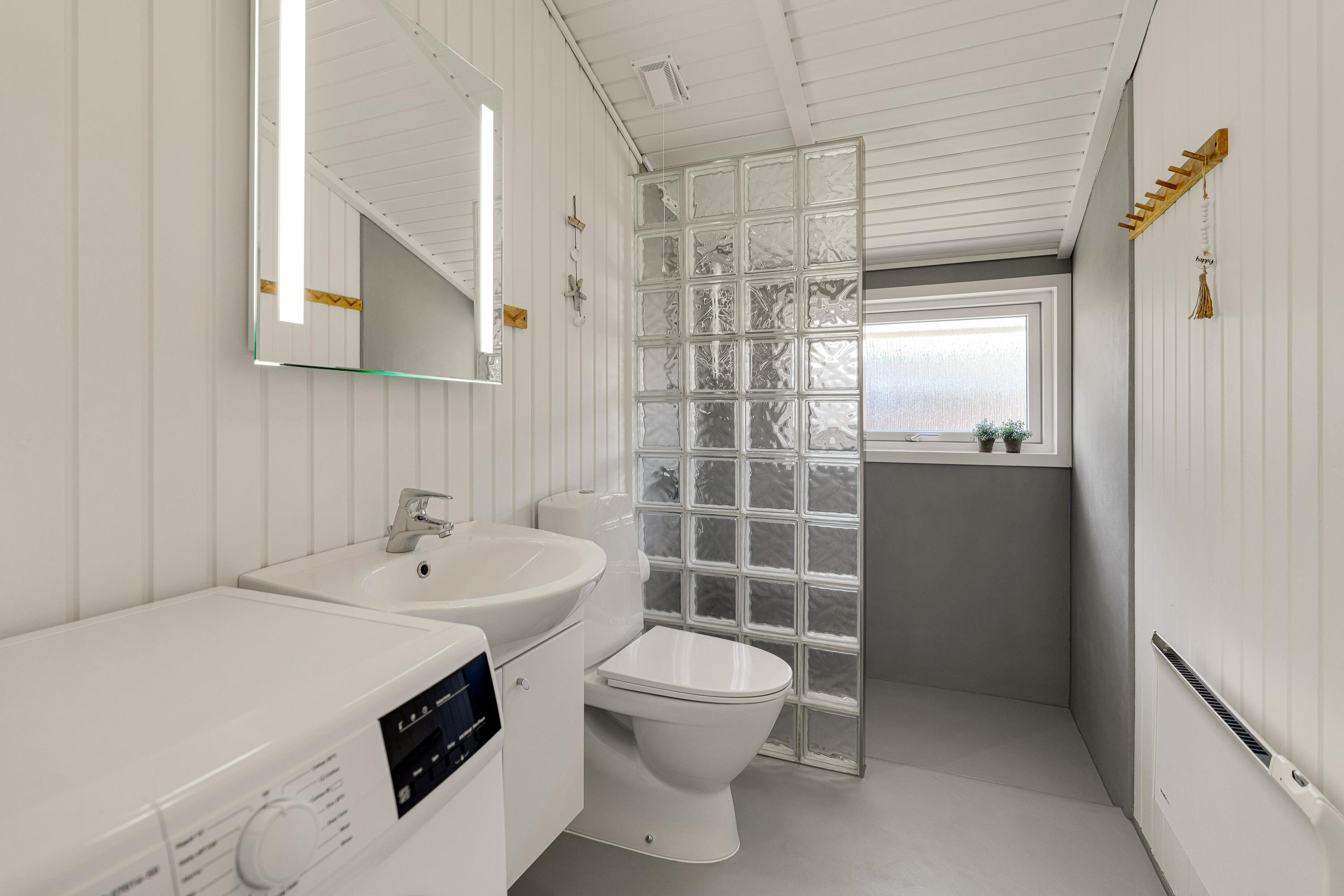 Hvis vestenvinden har vist tænder, kan I med fordel nyde varmen fra sommerhusets gode brændeovn eller den økonomiske varmepumpe. Badeværelset er udstyret med gulvarme.