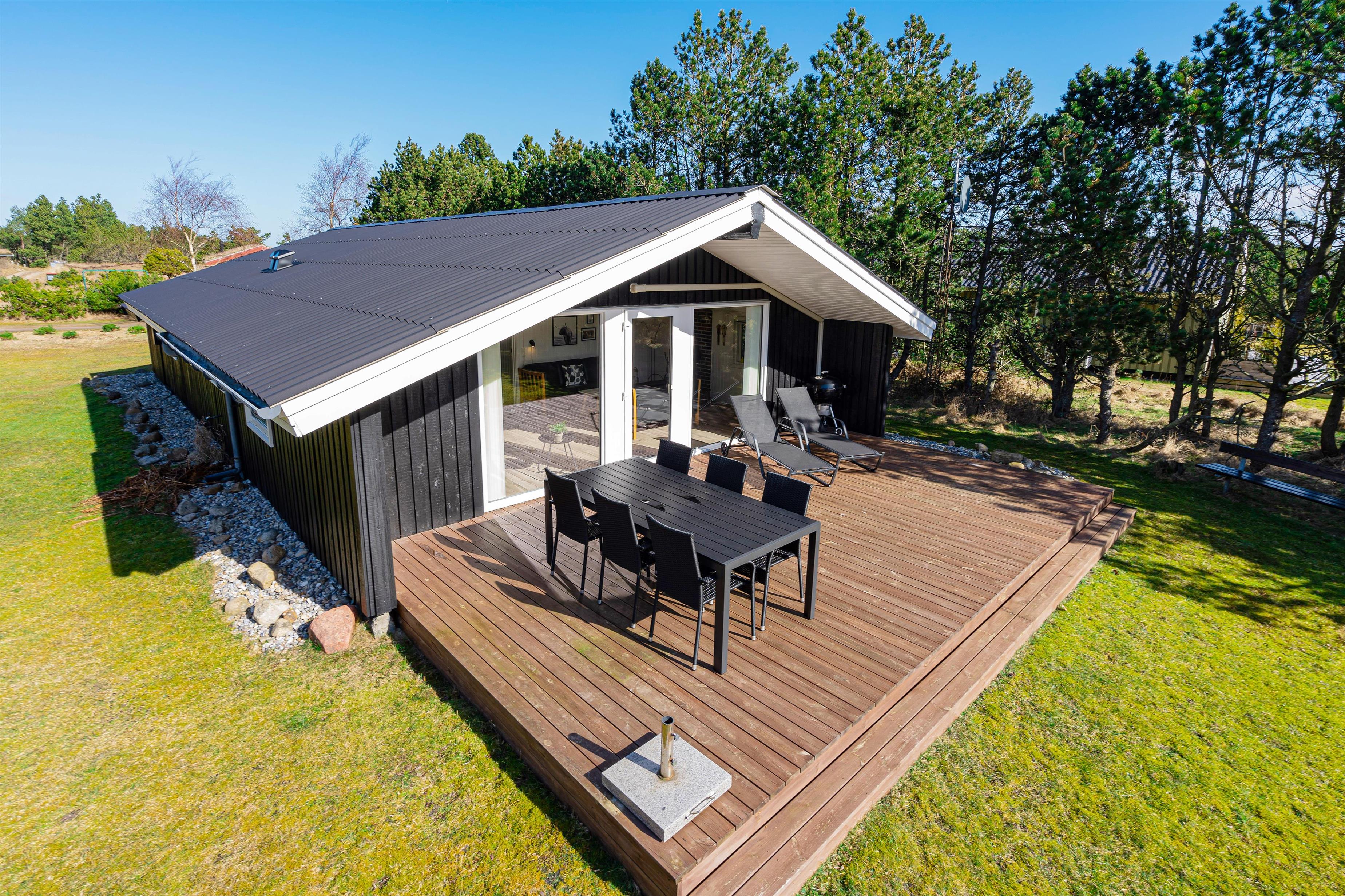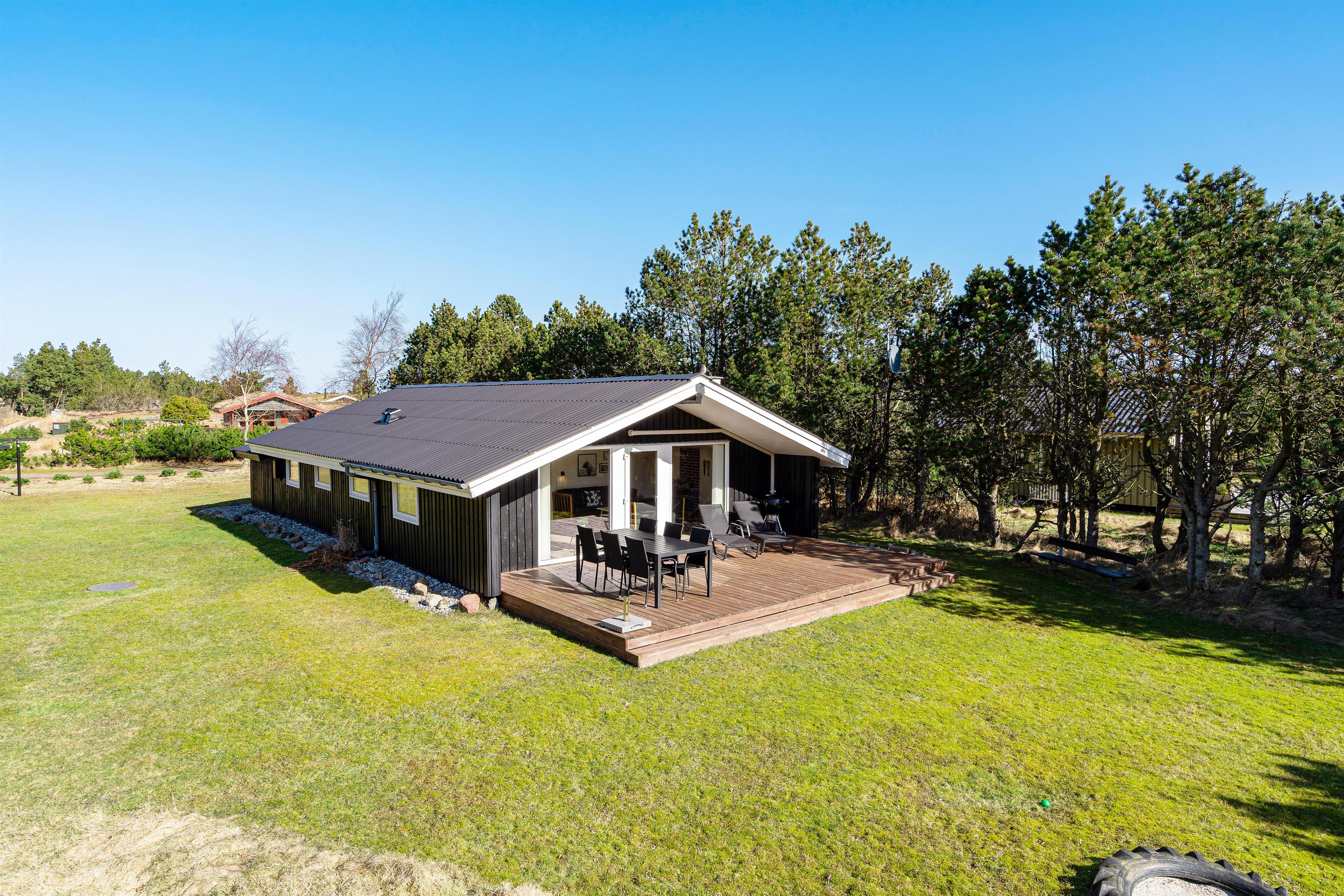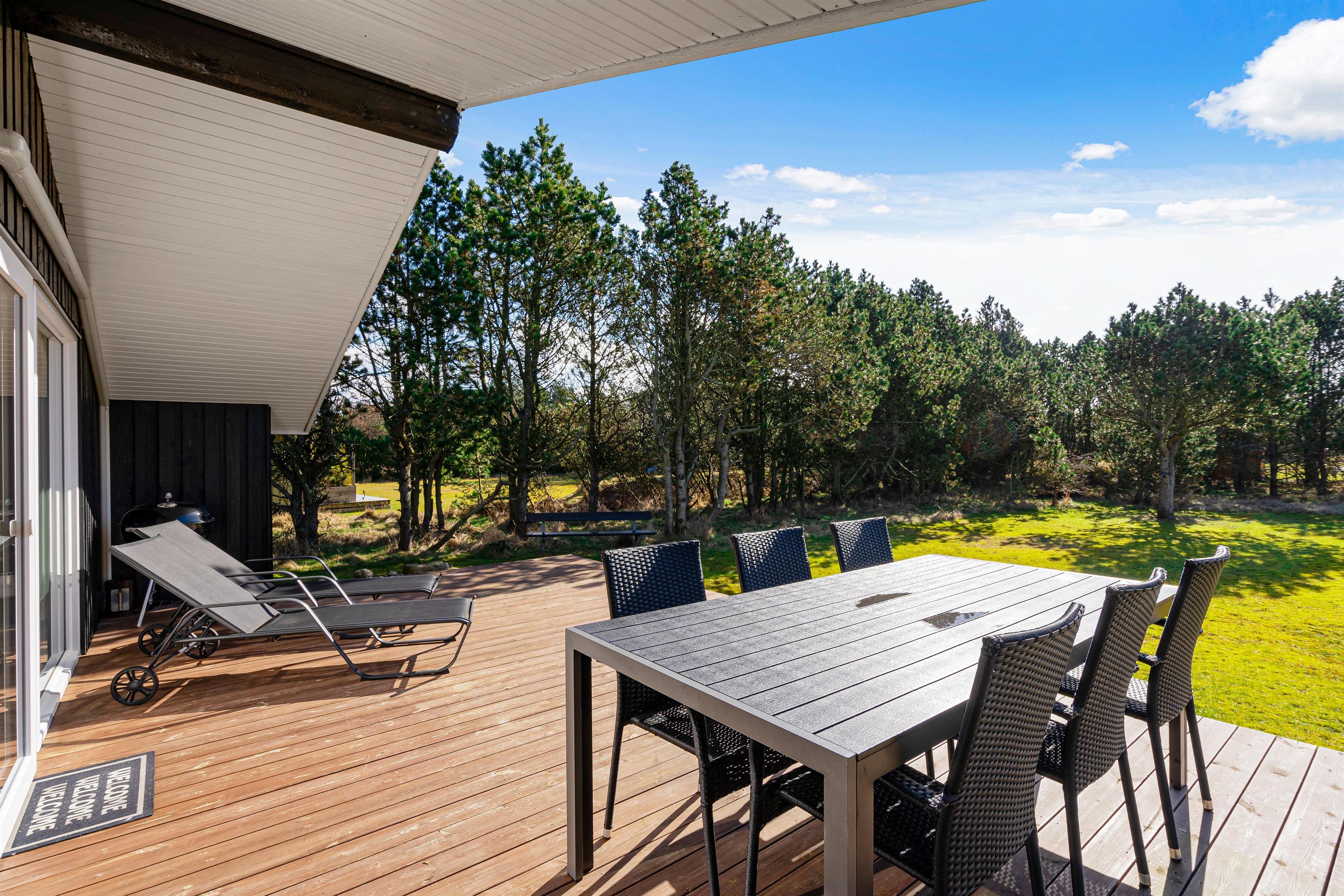 Sommerhusets terrasse er perfekt, når I skal nyde den salte vestjyske luft. Terrassen vender mod sydvest, så I kan nyde solens stråler det meste af dagen. Når man holder ferie i Vestjylland er en solnedgang og aftensmad på terrassen et ”must”. På sommerhusets nordside finder I desuden en mindre, afskærmet terrasse.