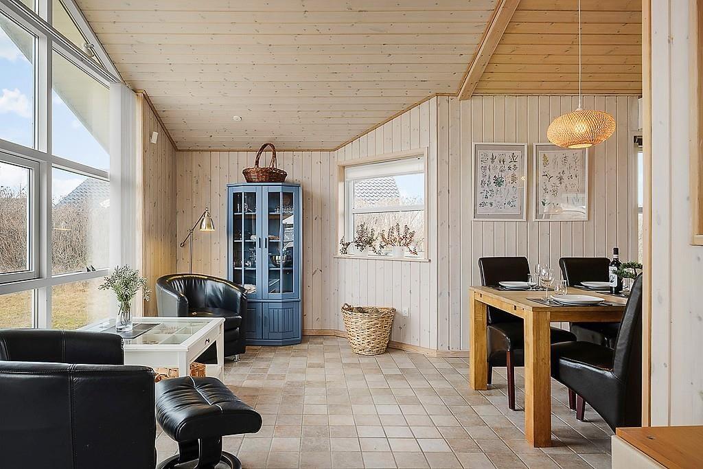 Sommerhusets atmosfære mærker du allerede, når du træder indenfor: Store vinduespartier lukker lyset ind og skaber en luftig og behagelig stemning, mens brændeovnen tilfører varme og hygge på kølige dage. Indretningen er både lys og charmerende, og i stuen kan du slappe af med en god bog eller samle familien til brætspil. Køkkenet ligger i åben forbindelse med opholdsrummet, så du nemt kan være en del af samtalen, mens du rører i gryderne. Huset byder desuden på en hems og et hyggeligt anneks, der giver ekstra sovepladser – oplagt til børnene eller dem, der ønsker lidt privatliv. Når du trænger til ren afslapning, kan du nyde en tur i saunaen eller lade dig synke ned i det varme spabad på det største af husets to badeværelser.