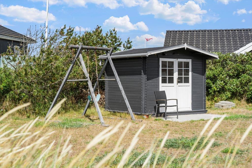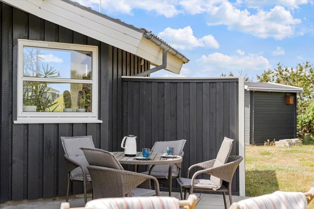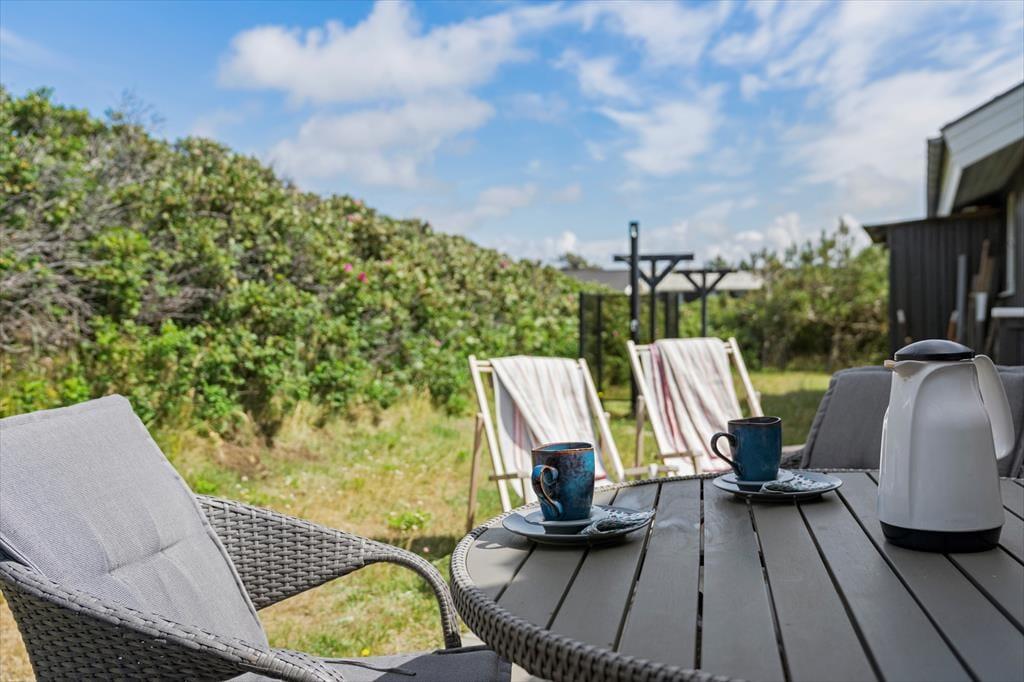 På sommerhusets terrasse er der lagt op til hyggelige stunder under åben himmel. Terrassen er indrettet med gode havemøbler og ligger perfekt placeret, så du både kan finde sol og skygge i løbet af dagen. Her kan du nyde morgenkaffen, mens du lytter til fuglene i de omkringliggende træer, eller tænde op i grillen og lave et lækkert måltid i aftensolen. Den korte afstand til stranden gør det let at tage spontane ture til vandet – uanset om du vil starte dagen med en morgendukkert i Vesterhavet eller gå en aftentur langs kysten, mens solen går ned i horisonten.