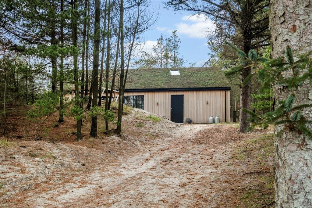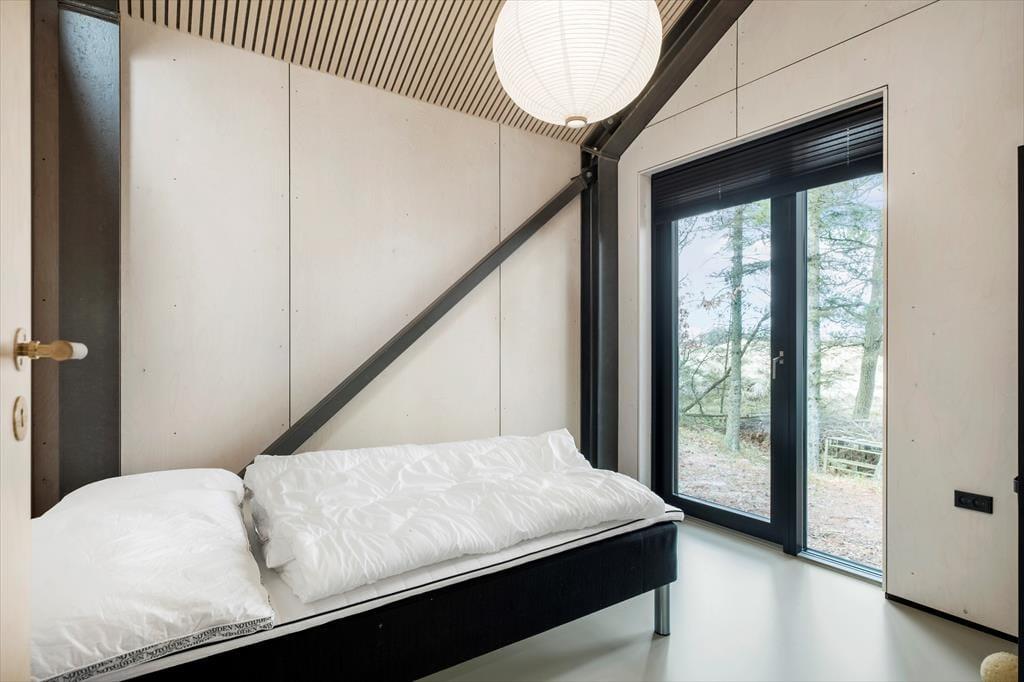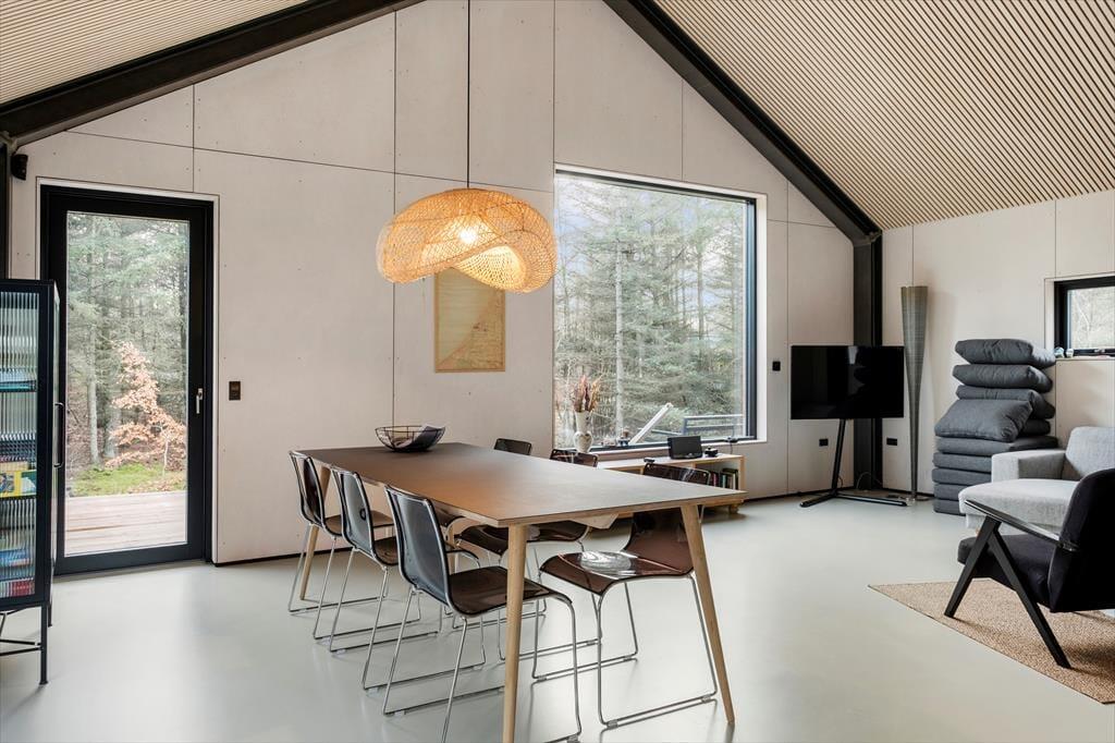 Dette moderne sommerhus vil se fantastisk ud på Instagram med sin flotte arkitektur og stilrene indretning – men det er nu også skønt bare at have det helt for sig selv uden at vise det frem for andre. Og her på Brændevinsstien får I det faktisk helt ugeneret, for huset ligger godt gemt væk på en skovklædt naturgrund for enden af den lille vej.
