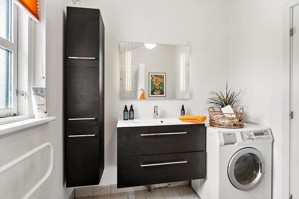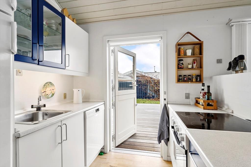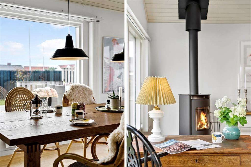 Når du træder indenfor i dette skønne sommerhus, mødes du af en rummelig og lys stue, der er smagfuldt indrettet med dejlige møbler og store vinduespartier, som giver et skønt lysindfald. Stuen er i åben forbindelse med køkkenet, hvilket skaber et hyggeligt fællesrum, hvor hele familien kan samles. Her kan I spille brætspil, læse en god bog eller blot nyde hinandens selskab, mens brændeovnen knitrer i baggrunden. Huset er udstyret med moderne bekvemmeligheder såsom opvaskemaskine, vaskemaskine og tørretumbler, så de praktiske gøremål hurtigt kan overstås. Det nyrenoverede badeværelse og den effektive varmepumpe sørger for ekstra komfort på kolde dage, mens internetadgangen giver mulighed for at streame film eller surfe på nettet. Fra køkkenet er der direkte udgang til den sydvendte terrasse, hvor I kan nyde solen fra morgen til aften.