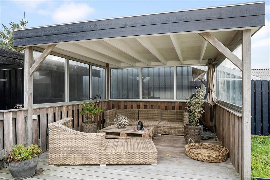 Sommerhuset har ikke bare én, men to terrasser, så du kan finde den perfekte plads uanset vejret. Den store sydvendte terrasse er ideel til grillmiddage og solbadning, mens den lille overdækkede terrasse giver mulighed for at sidde ude selv på kølige aftener. Grunden omkring huset er indhegnet med et lille hegn, hvilket skaber et trygt og afskærmet udemiljø – perfekt til at lade børnene lege frit eller nyde et spil kroket på plænen. Havemøbler, grill og parasol er naturligvis til rådighed, så alt er klar til en afslappende udendørs oplevelse. Her kan I starte dagen med en kop kaffe under åben himmel eller afslutte den med et glas vin, mens I nyder aftenens ro.