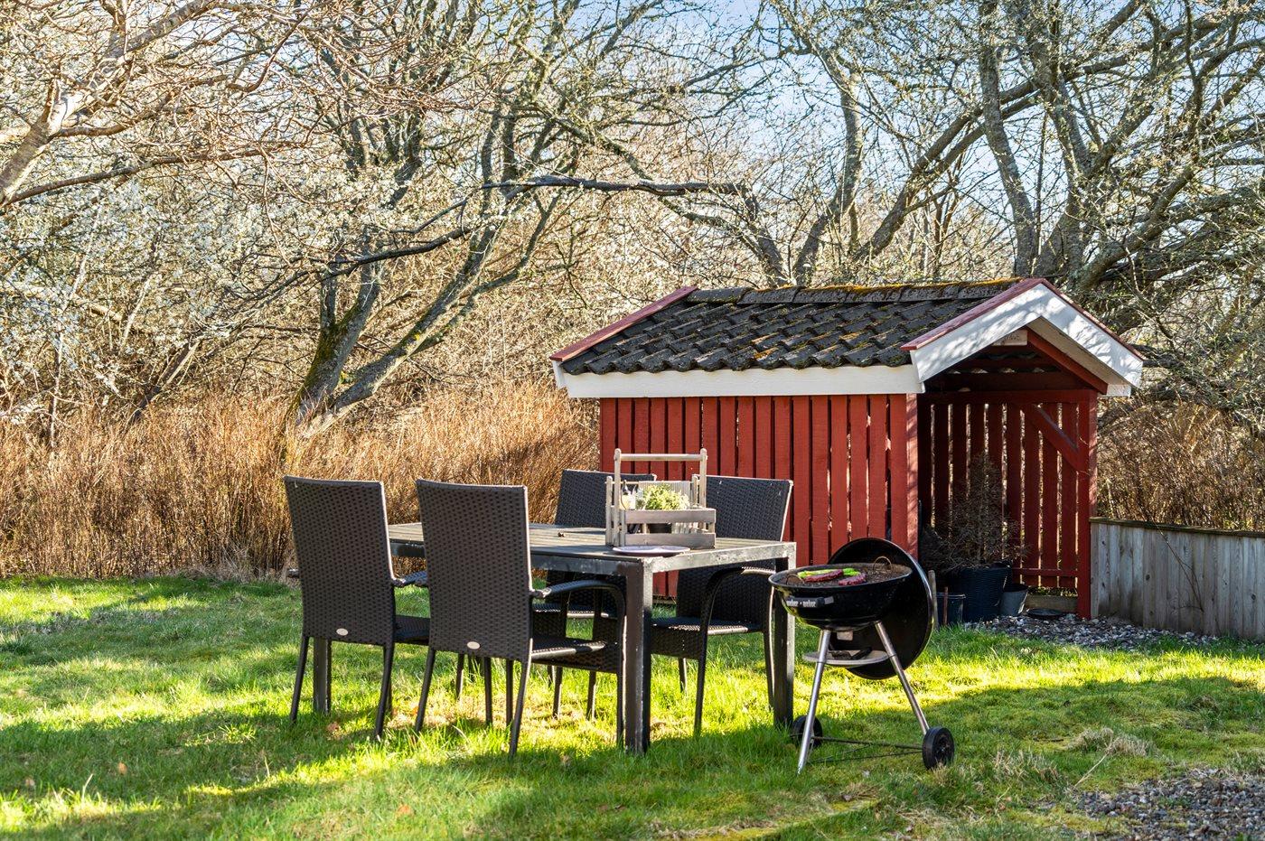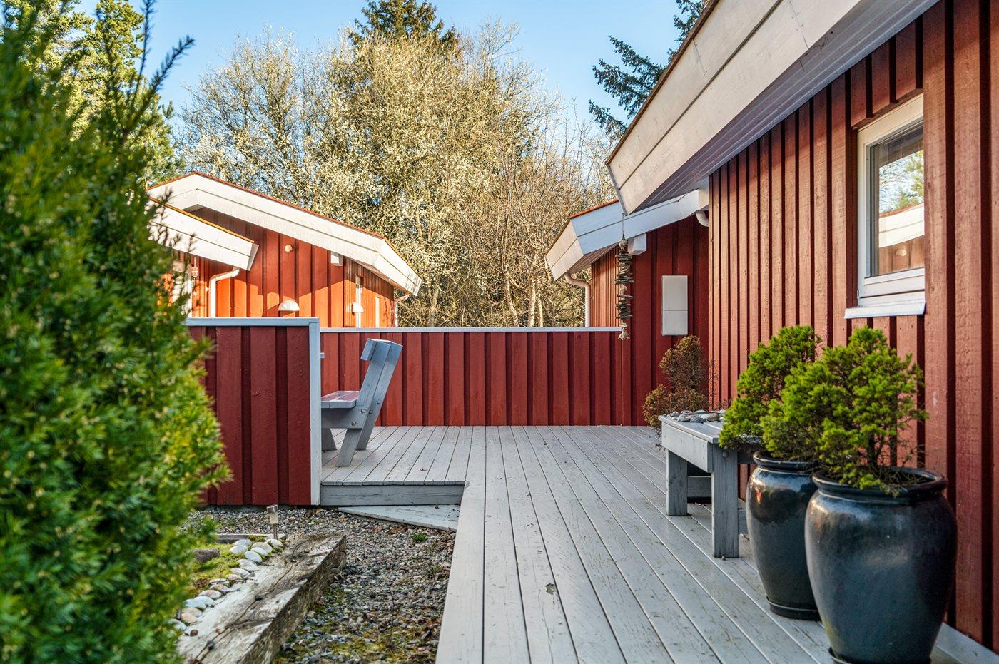 huset hører et dejligt og delvist afskærmet terrasseareal med havemøbler og grill. Der er carport til rådighed og der findes en gynge på grunden.