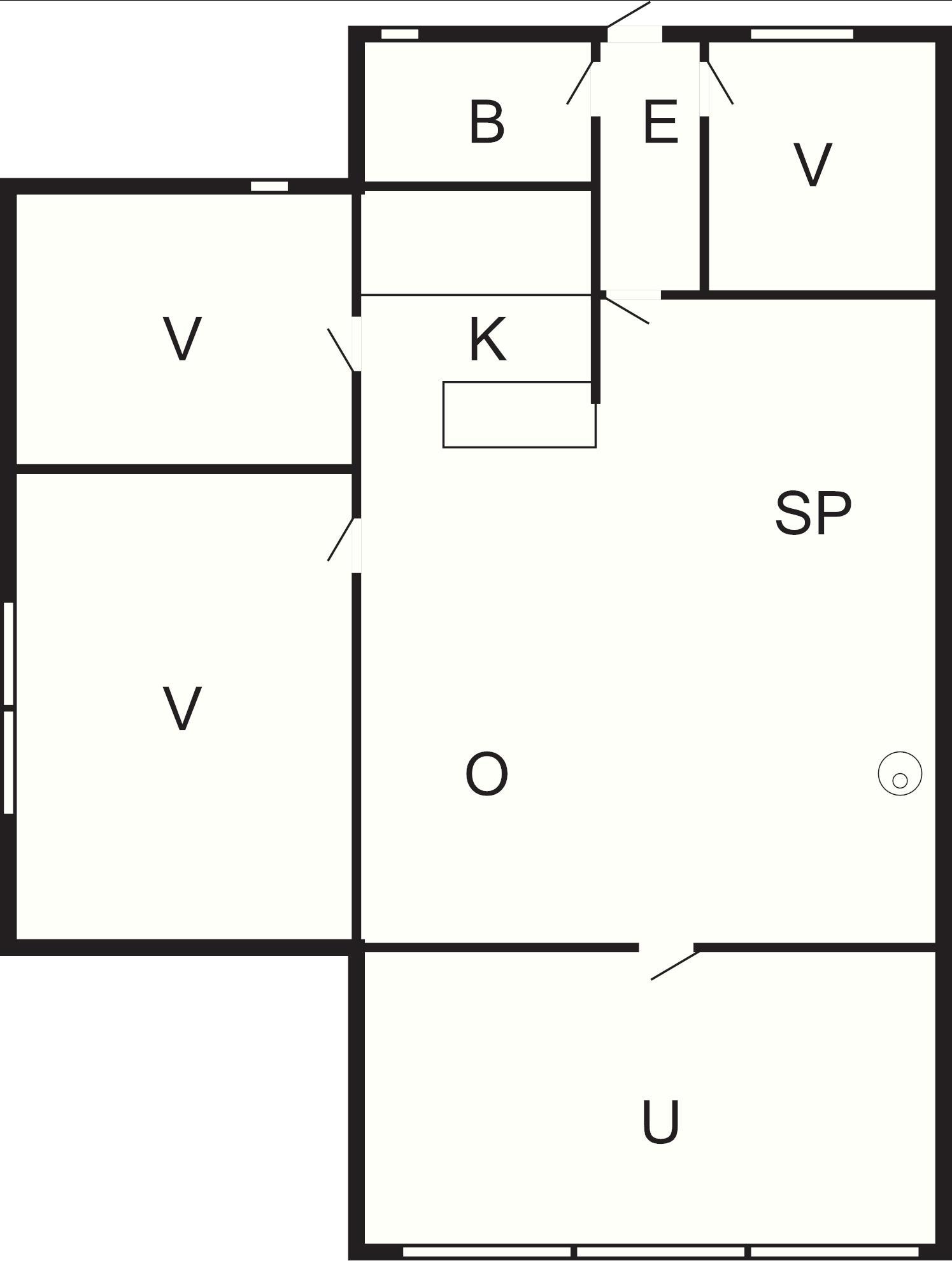 Fra entréen er der adgang til et hyggeligt soveværelse og et praktisk badeværelse, mens det åbne køkken og opholdsstue udgør boligens hjerte. Rummet omfatter et spise- og opholdsområde, der er ideelt til familiesammenkomster og fælles måltider. En brændeovn giver varme på køligere aftener og skaber en indbydende atmosfære. Store vinduer fylder rummet med naturligt lys og fører direkte til en glaseret veranda med udsigt til haven og et lyst, luftigt sted at slappe af.