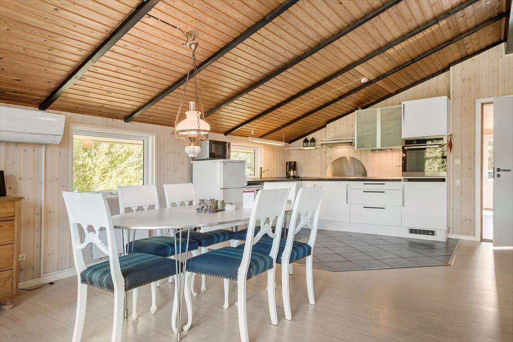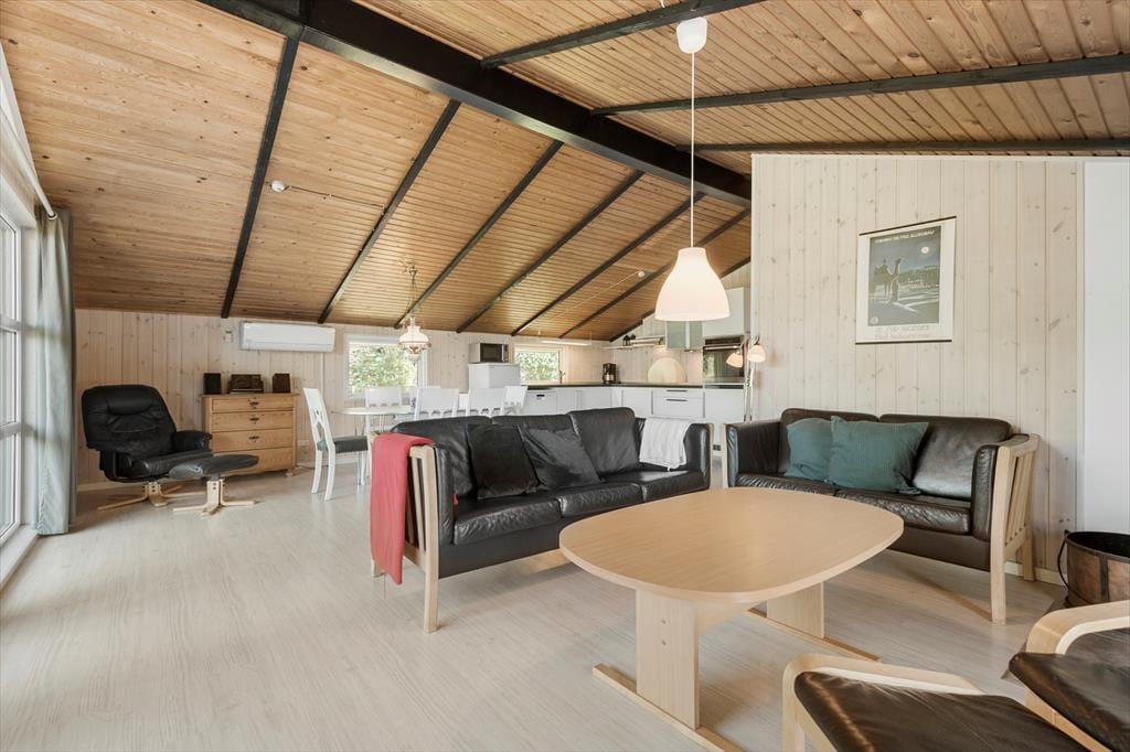 Det klassiske træsommerhus er opført i 1978, og efter en omsorgsfuld renovering i 2015 fremstår det pænt og velholdt. Blandt andet køkkenet er blevet moderniseret, så I har en dejlig arbejdsstation med ovn i ståhøjde, opvaskemaskine og andre lækre detaljer, når aftensmaden skal forberedes. Køkkenet ligger som en integreret del af stuen, der derudover byder på både brændeovn og varmepumpe, spisebord, en blød sofaafdeling og en fin udsigt til de grønne naturomgivelser. Den funktionelle planløsning består i øvrigt af tre soveværelser, en entré med vaskemaskine og tørretumbler samt et badeværelse – og i sidstnævnte kan I slappe af i saunaen på ægte livsnydermanér.