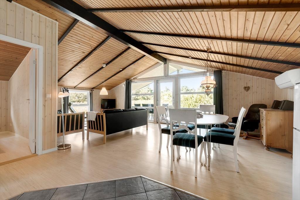Sommerhuset ligger dejligt tilbagetrukket på en 2600 m2 stor naturgrund, der grænser lige op til et åbent naturområde. Bolilmark er nemlig omgivet af det smukkeste hede landskab, og særligt i sensommeren er det et imponerende syn, når de åbne vidder farves helt lilla af den blomstrende lyng. Tvismark Plantage ligger desuden tæt på sommerhuset, hvis I får lyst til en skovtur, og virker Vesterhavet fristende, har I blot få kilometer til Lakolk Strand. På Rømø er det naturligvis også oplagt at se nærmere på Vadehavet, for det storslåede tidevandsområde er optaget på UNESCO’s verdensarvsliste som en unik plet på verdenskortet. Indkøbsmuligheder og spisesteder finder I et godt udvalg af på Rømø, og især om sommeren kan I også finde vejboder, hvor I kan købe lokal honning og sæsonens grøntsager.
