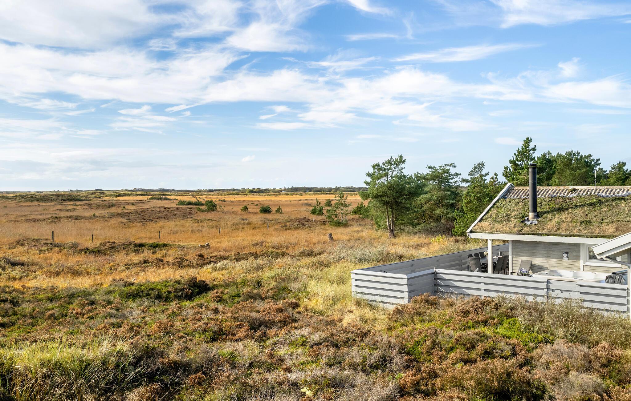 Feriehus på Rømø med sauna, udendørs jacuzzi og smuk udsigt over naturen.