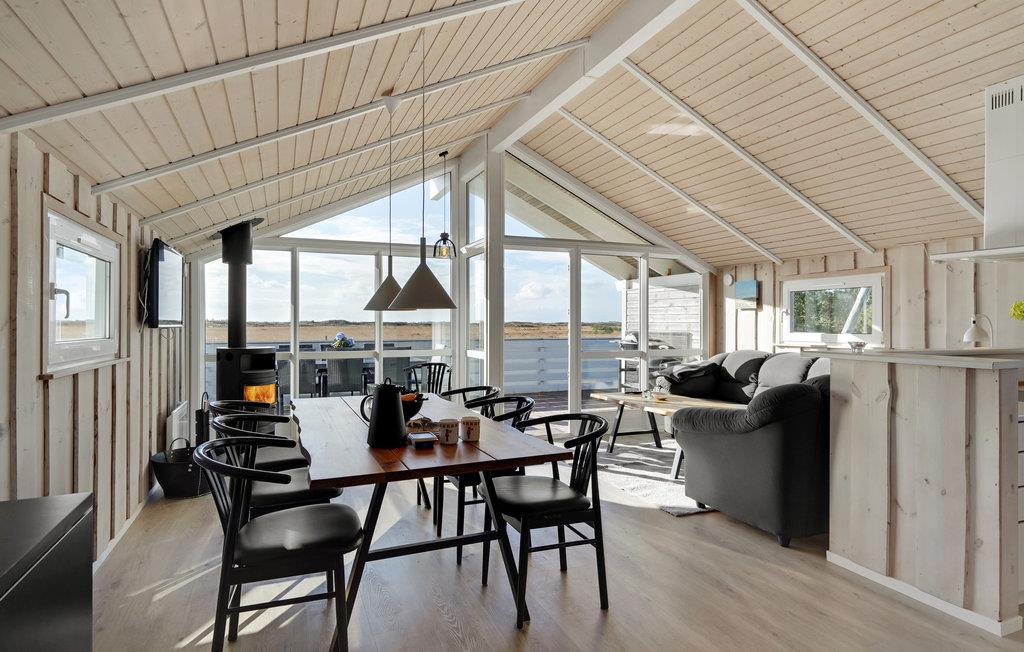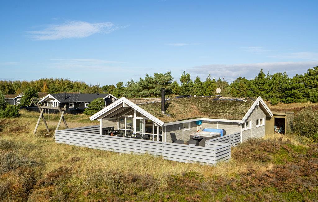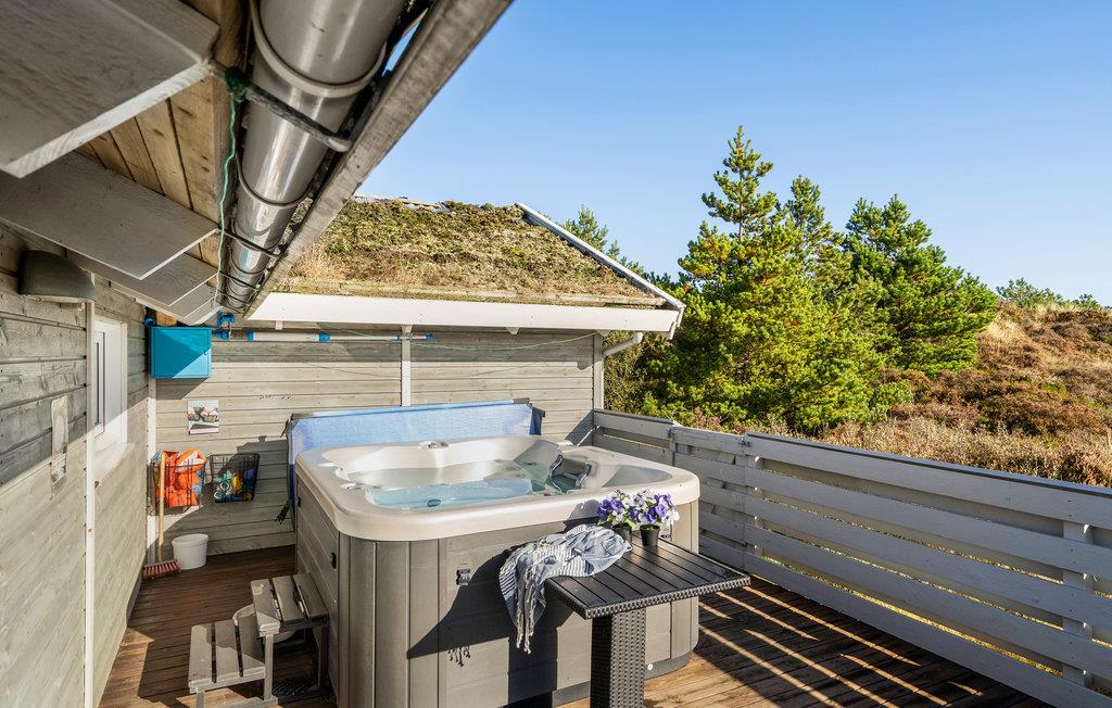 Dette feriehus ligger smukt på Rømø i den lille by Bolilmark, omgivet af klitter og skov. Indenfor venter et lyst, attraktivt interiør, som er fuldt udstyret til et behageligt ophold. Familier eller vennepar vil finde det ideelle sted for ubekymrede feriedage her. Udnyt den rummelige terrasse med gode solforhold. I løbet af dagen kan I finde jer tilpas i havemøblerne med en god bog, mens børnene hygger sig i sandkassen eller på gyngerne. Afslut dagen i spabadet, mens I nyder en kold forfriskning og udsigten til det fortryllende landskab.