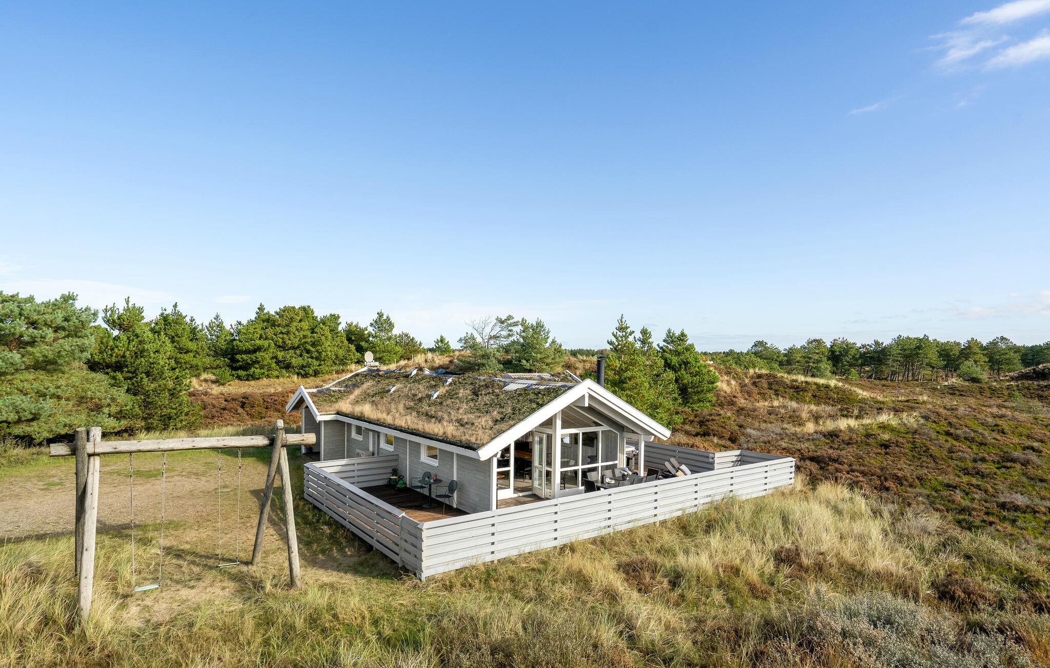 Drømmer I om en afslappende ferie med wellness og nærhed til naturen? Så er dette feriehus med sauna, udendørs jacuzzi og vid udsigt over landskabet måske det helt rigtige for jer.