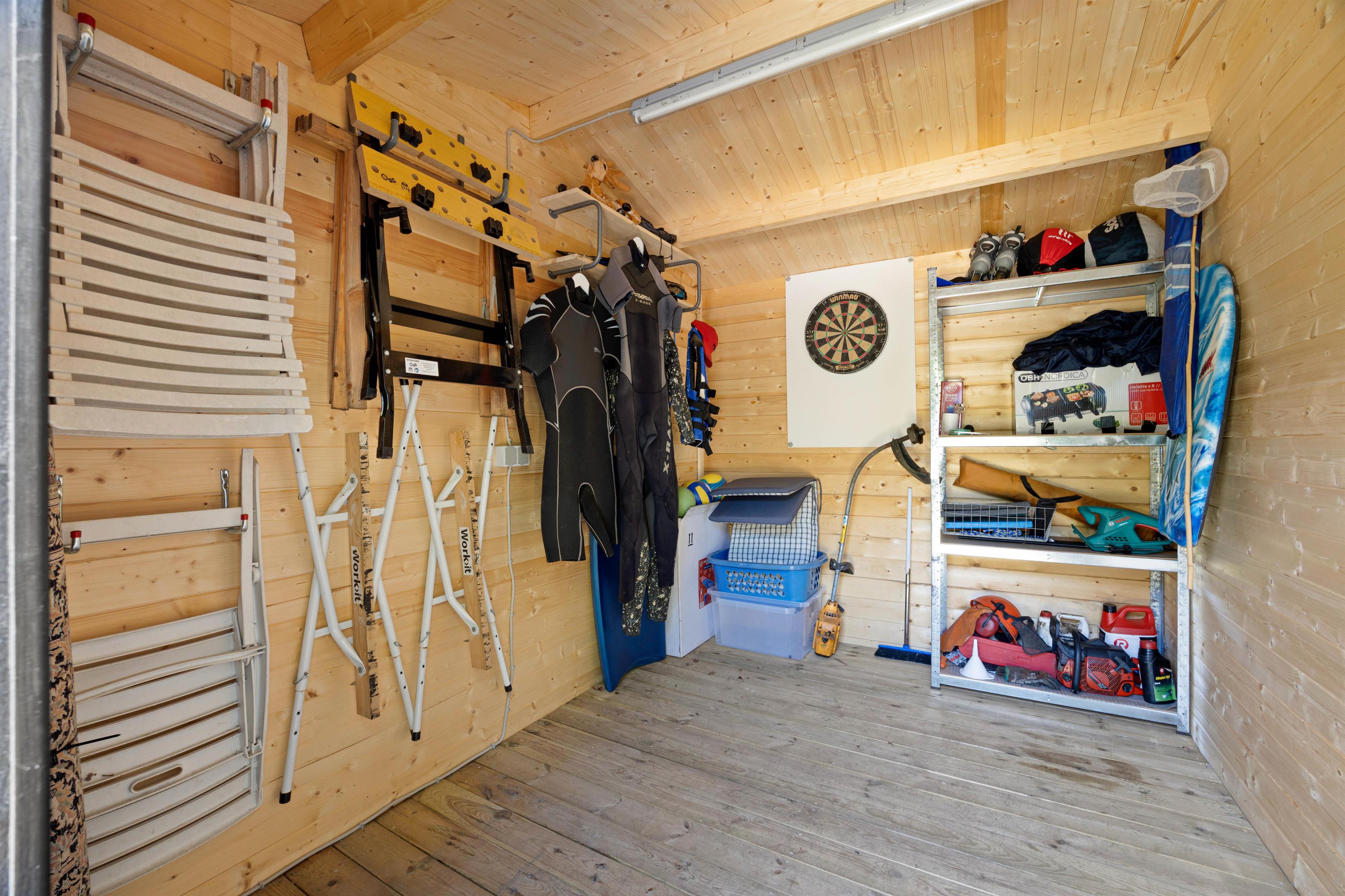 Udenfor er der store træterrasser med havemøbler, der er delvis overdækket. Her er der rigelig siddeplads, så I kan nyde solen, mens børnene leger udenfor. Når I kommer tilbage fra en lang og varm dag på stranden, er der endda en udendørs bruser til at skylle sandet af. Der er en grill til rådighed, hvor I kan tilberede friske skaldyr eller saftige bøffer og nyde den fantastiske udsigt over det grønne.
