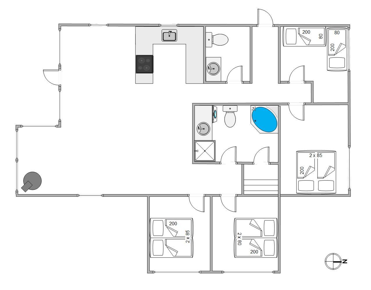 I sommerhuset finder I både et fint gæstetoilet samt et større badeværelse. På badeværelset kan I slappe af i boblebadet eller tage en ”svedetur” i saunaen – perfekt som et afbræk fra den travle hverdag. Sommerhuset byder på 4 fine soveværelser, alle med gulvtæppe, 3 med dobbeltseng og det sidste med 2 enkeltsenge. Til de små er der en højstol samt en barneseng.