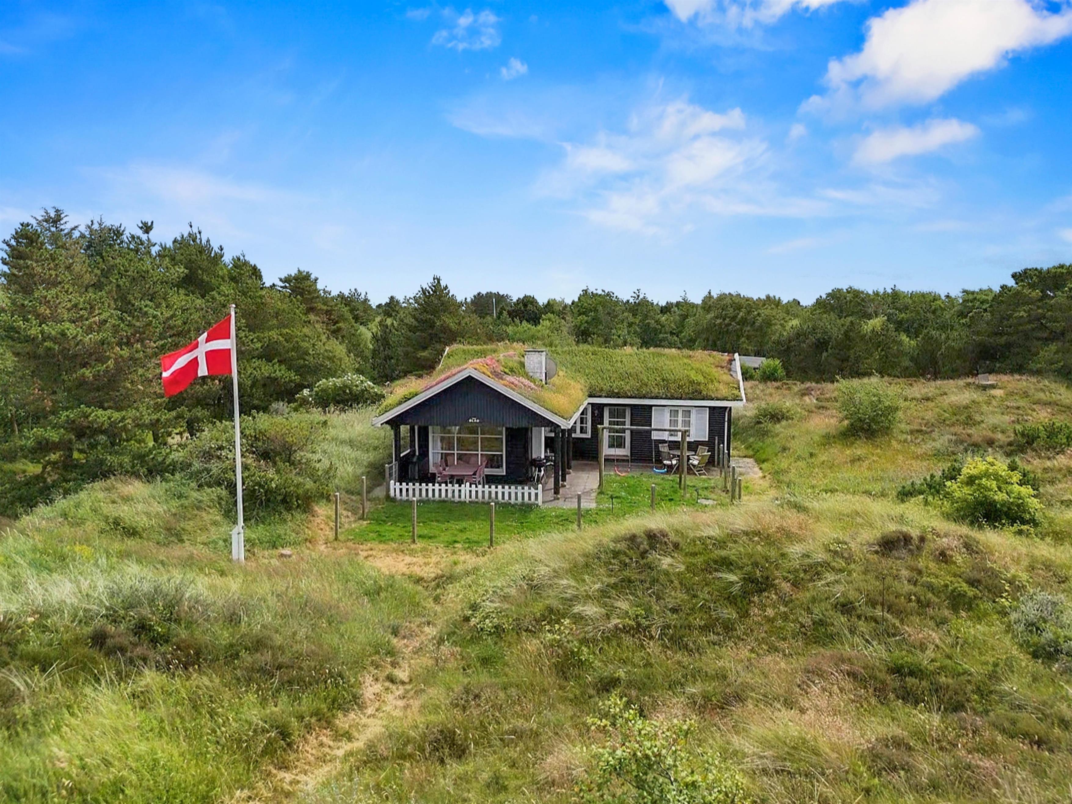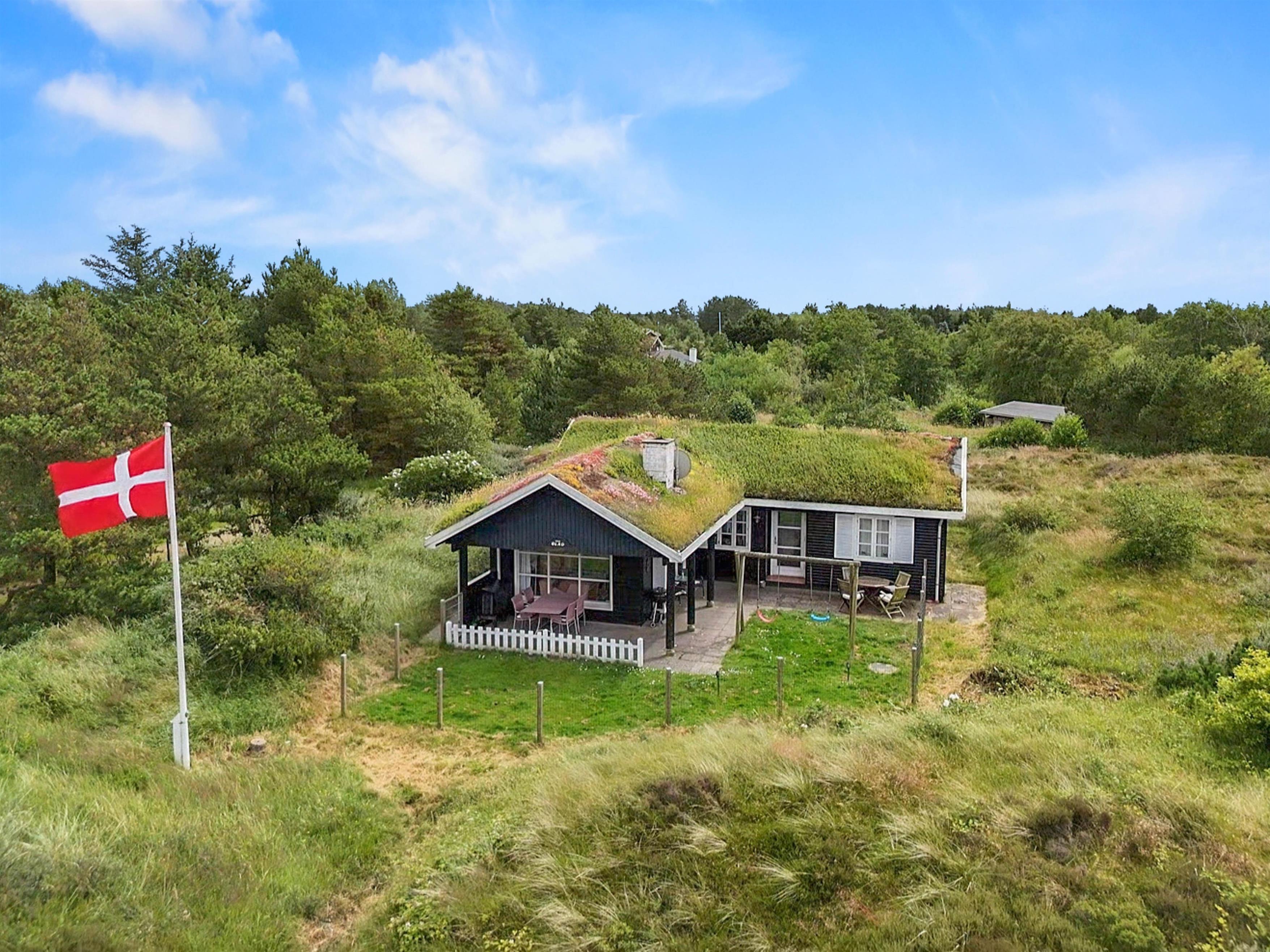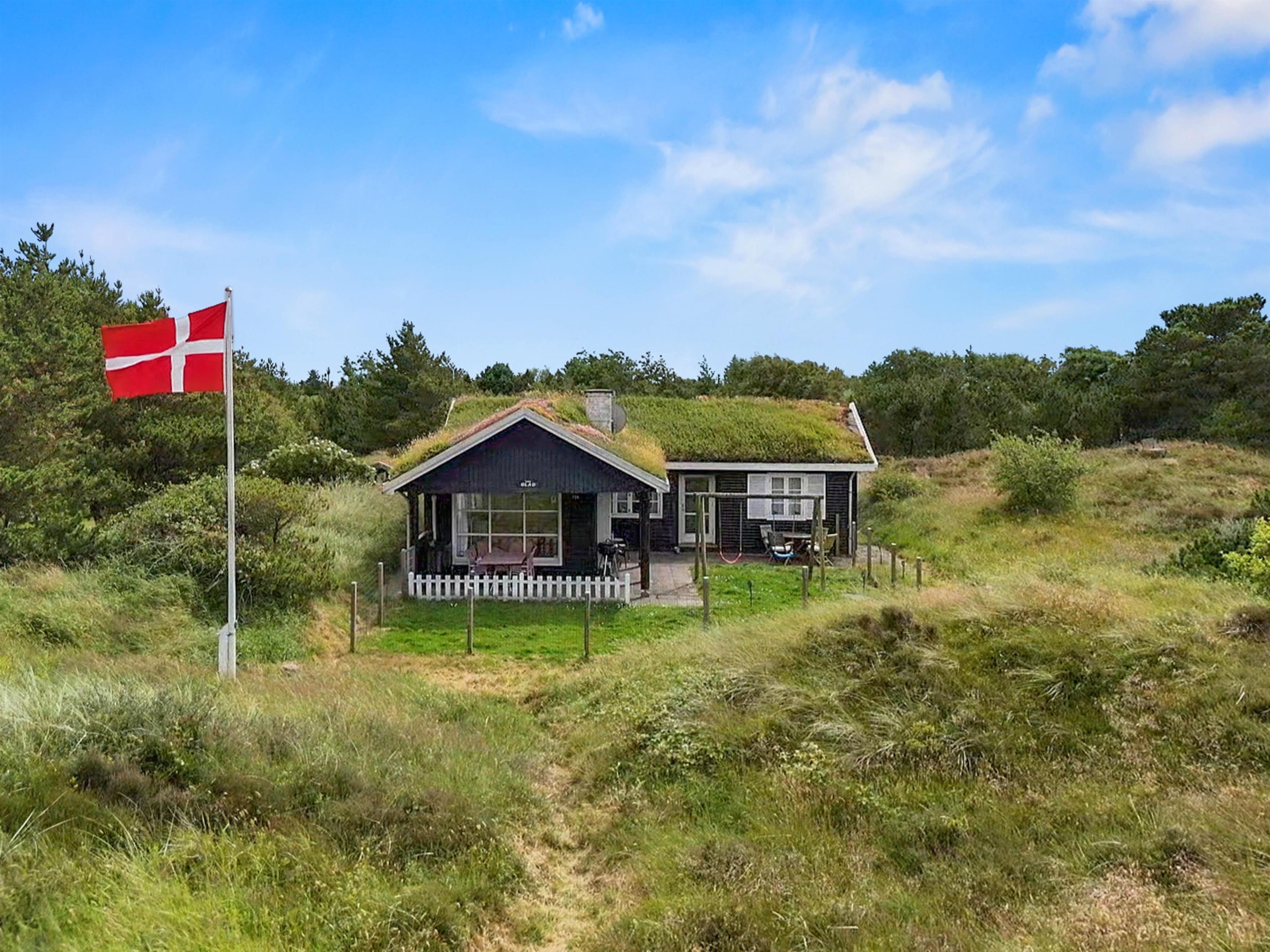 Omkring sommerhuset er terrasse og en indhegnet have, ideelt hvis I har småbørn eller hunde med. Terrassernes placering og de mange gode kroge gør, at I altid kan finde en behagelig plet at opholde jer på udendørs. Til børnene er der en sandkasse, og sammen kan I spille et boldspil eller et spil Viking. Tag solbad på de komfortable liggestole eller slap af i havemøblerne. Tænd op i grillen til aften,og nyd et lækkert grillmåltid sammen, før børnene skal sove, eller I skal ned på stranden og opleve solnedgangen.