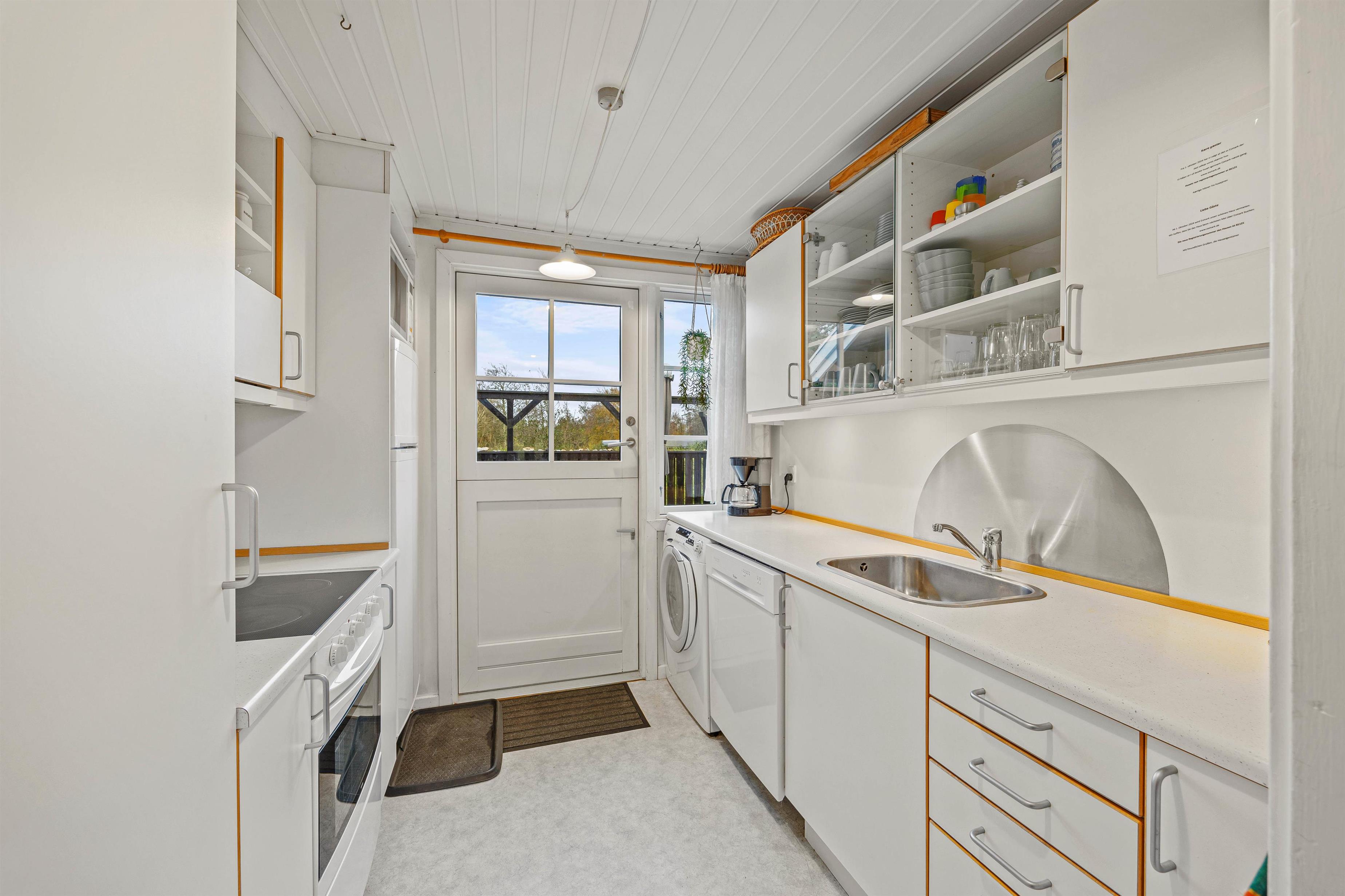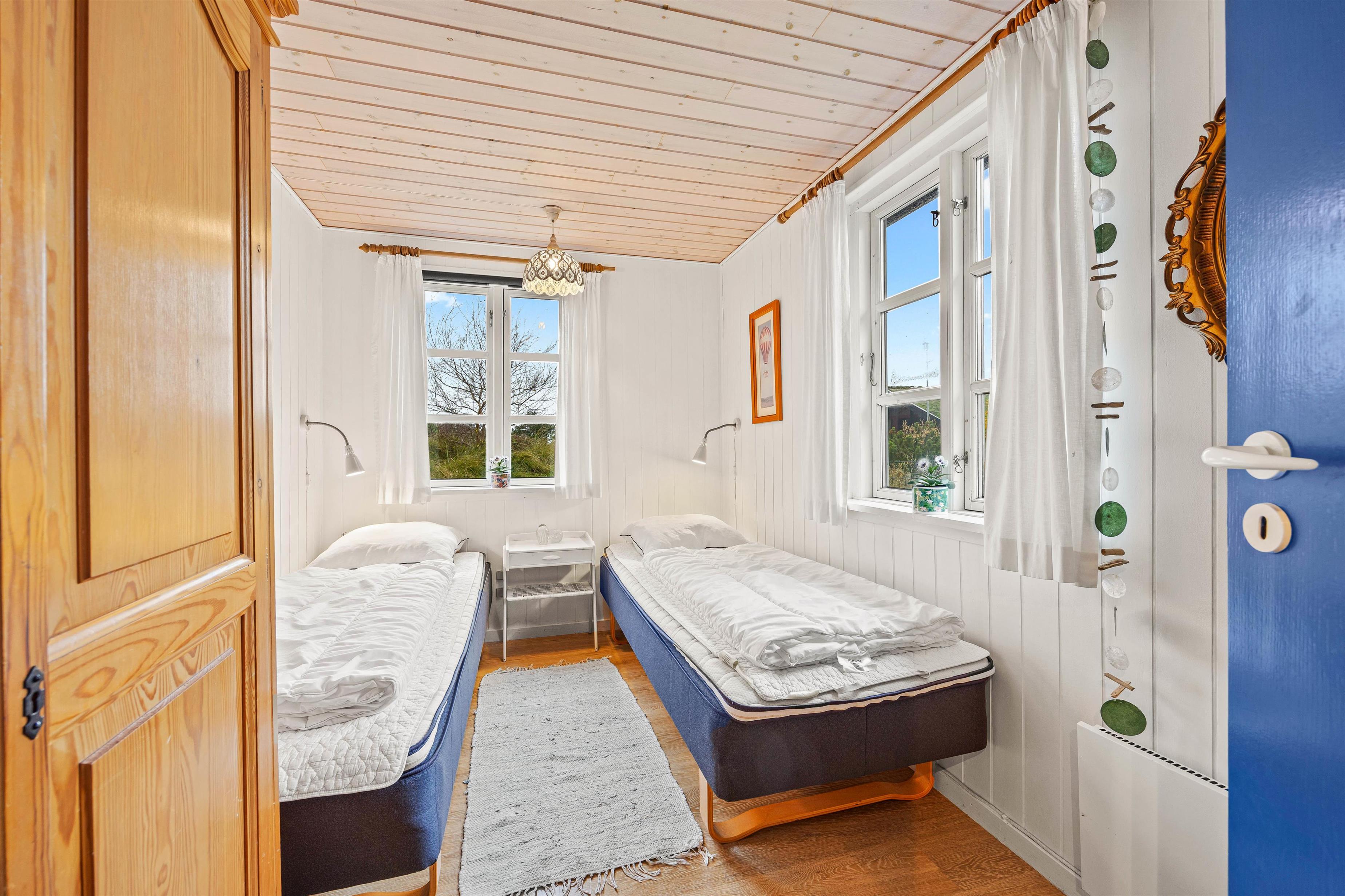 Køkkenet er veludstyret med alt, hvad I behøver for at tilberede lækre hjemmelavede retter. Prøv for eksempel at købe lokale specialiteter med hjem til frokost eller aftensmaden, det giver ferieoplevelsen en ekstra dimension. Der er 3 soveværelser i sommerhuset, 2 med komfortable dobbeltsenge og 1 med to enkeltsenge, så her har I mulighed for en afslappende nattesøvn i den friske vesterhavsluft. Der er laminatgulv i alle soveværelser. Og der er vaskemaskine og tørretumbler til rådighed for jer på opholdet, så I kan opfriske håndklæderne undervejs.