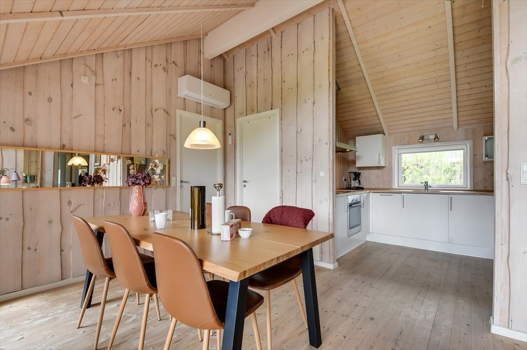 Inden døre giver sommerhusets trævægge og loft til kip rummene en klassisk fremtoning, og møblementet er nøje udvalgt, så det understreger hyggeatmosfæren. Stuens brændeovn er naturligvis også med til at skrue den gode stemning i vejret, når I tænder op og lader varmen sprede sig på en kølig eftermiddag eller aften, hvor den står på rendyrket afslapning i sofaafdeling eller omkring spisebordet. I det åbne køkken kan I tilberede dagens små og store feriemåltider, og får I brug for at vaske tøj, er der både vaskemaskine og tørretumbler i bryggerset. Tre gode soveværelser, et gæstetoilet og et stort badeværelse finder I også i sommerhuset – og sidstnævnte er værd at fremhæve, for her er både gulvvarme, spabad og sauna med til at forsøde livet.