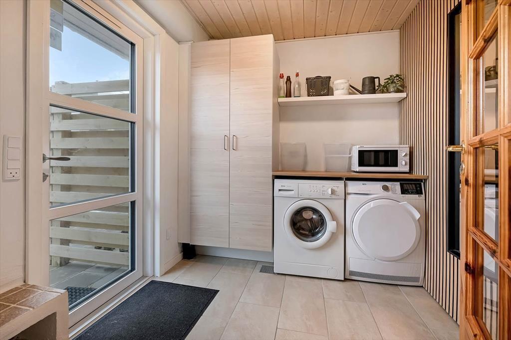 Sommerhus i Bork Havn, Vestjylland, med plads til 6 voksne. Der er en hyggelig indretning med bl.a. brændeovn, og du finder desuden vaskemaskine, opvaskemaskine og tørretumbler i boligen.