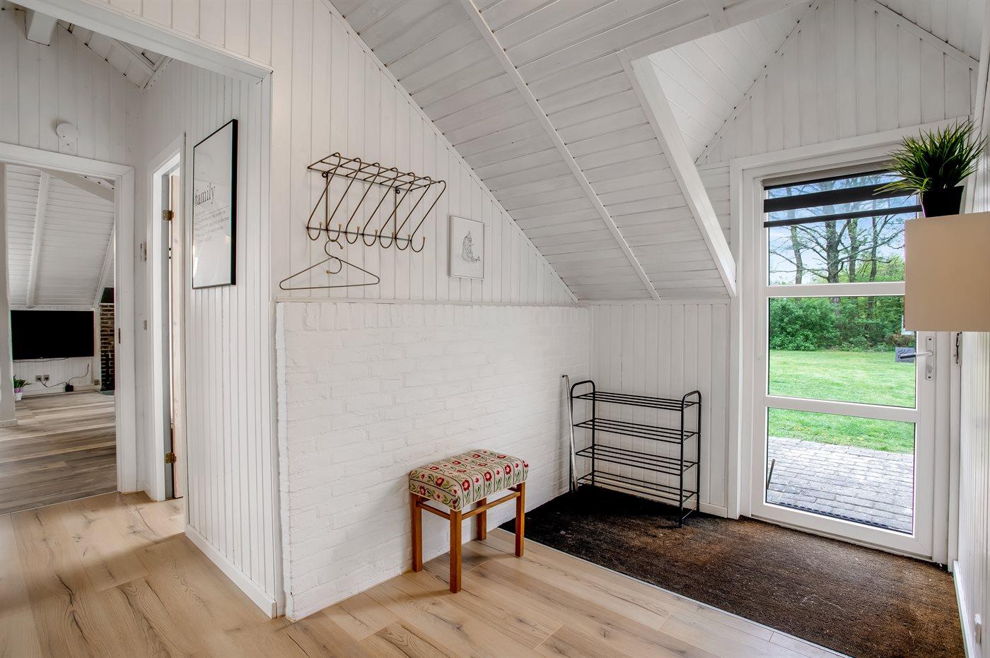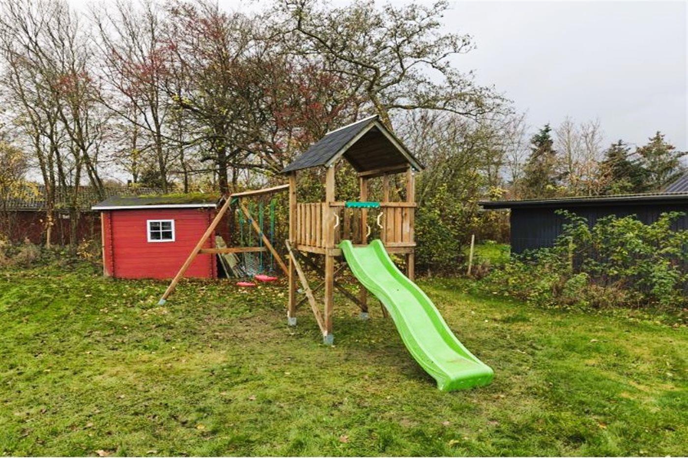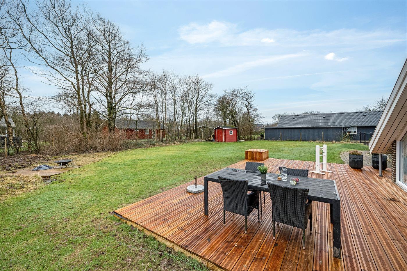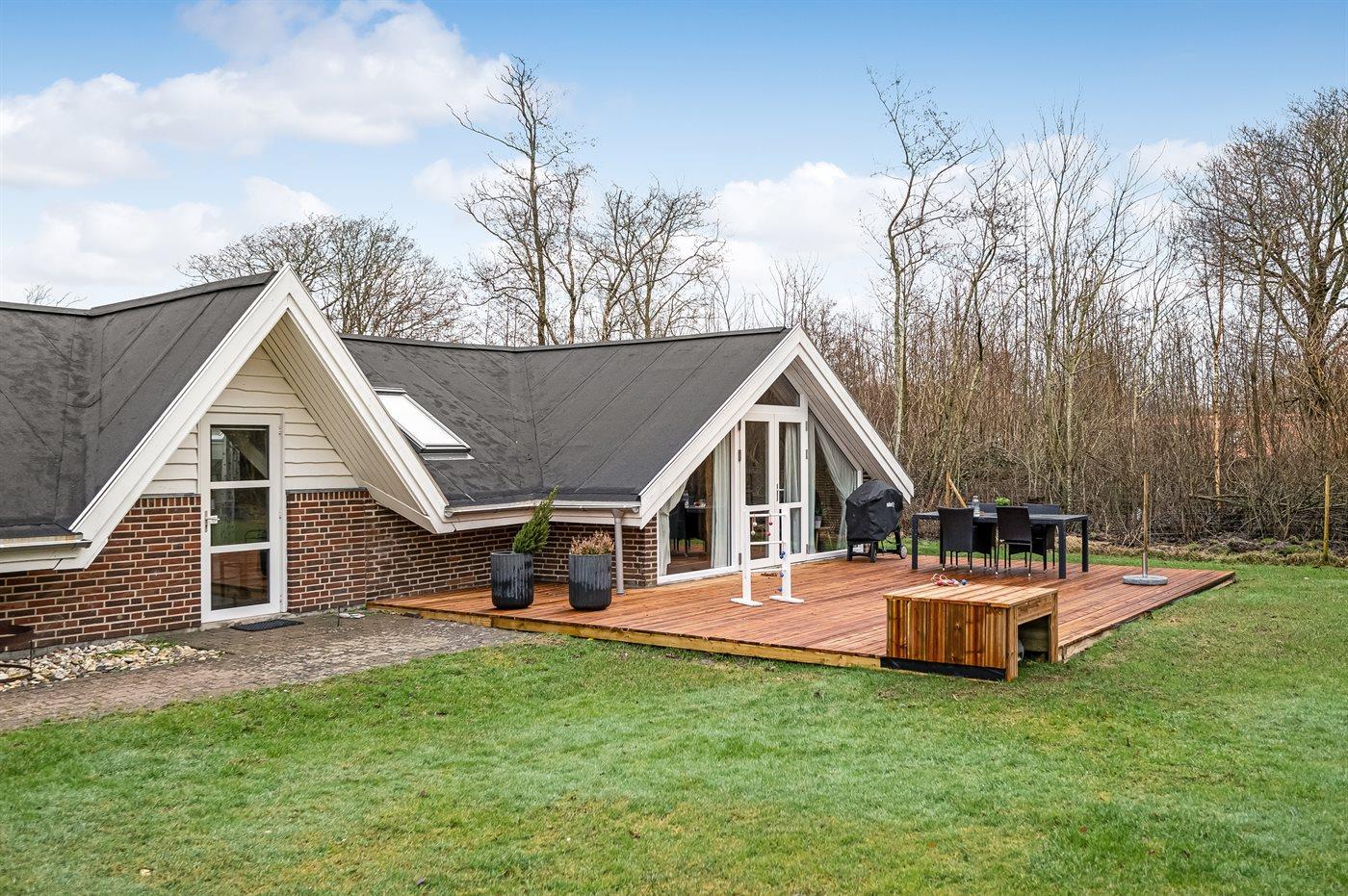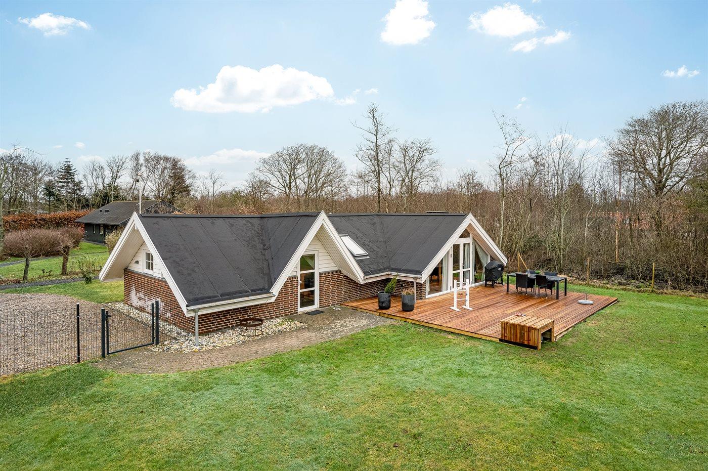 Dette sommerhus ligger uforstyrret i bunden af et lukket sommerhusvænge, og hele grunden er indhegnet, så hunden kan boltre sig frit og gå på opdagelse i haven. Haven giver også rig mulighed for leg og boldspil på græsplænen, og på den syd- vestvendte træterrasse kan solen nydes det meste af dagen.