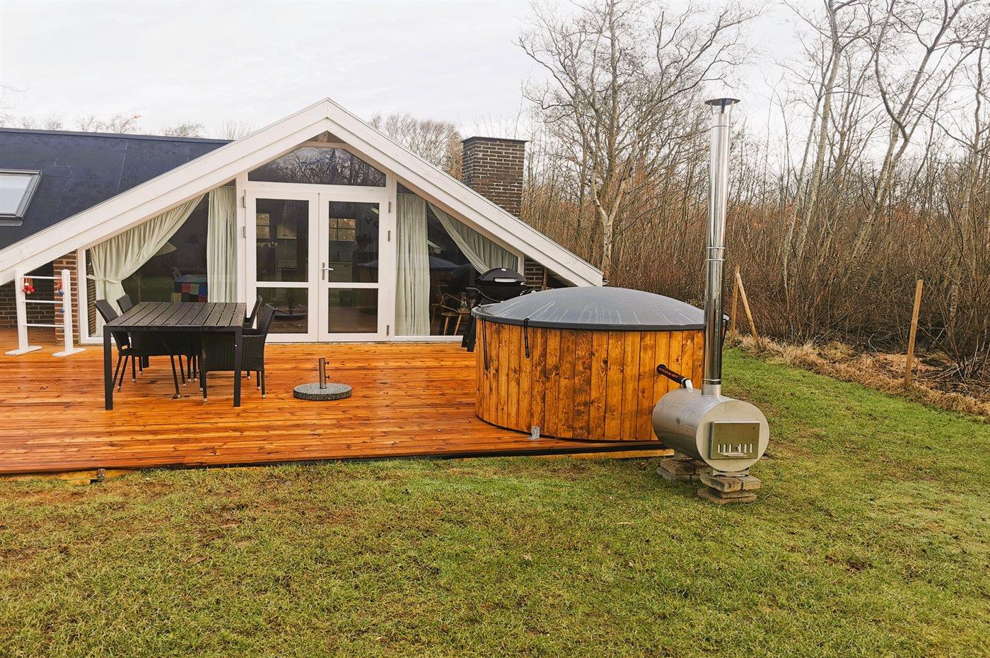 Hyggeligt sommerhus i Bork Havn med indhegnet have, brændeovn og vildmarkskar nær Ringkøbing Fjord.