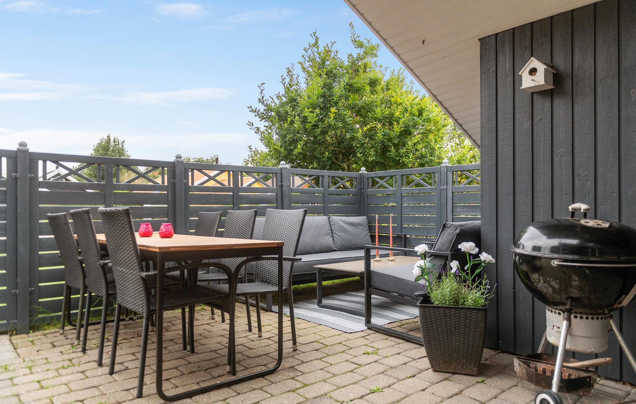Træd ud på terrassen med en velduftende kop kaffe i de første solstråler og nyd morgenens friskhed. Nyd morgenmaden i fred og ro og find derefter en god krog til en læse- eller snakkestund. Når dagen går på hæld, er terrassen rammen om en hyggelig grillmiddag.