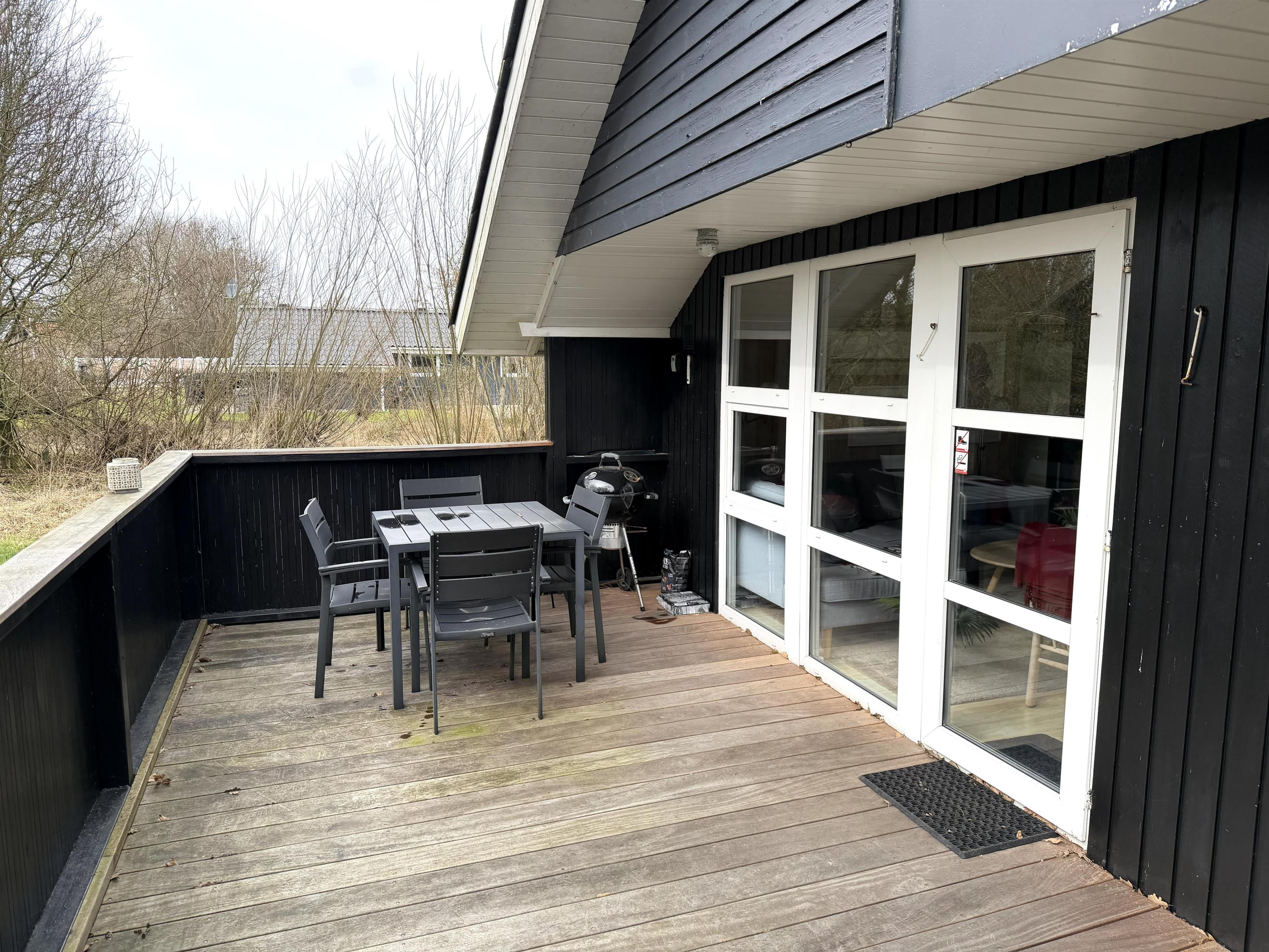 Udenfor får I mulighed for at sidde under både den afskærmede og overdækkede del af terrassen, så I kan sidde godt i læ og stadig nyde udelivet, selv når vejret driller. Havemøblerne indbyder til hygge i solen og lange aftenener, og grillen gør det let at samle dagen omkring en afslappet middag i godt selskab. Grunden er 225 m2 med plæne, så der er plads til leg, spil og små pauser i solen.