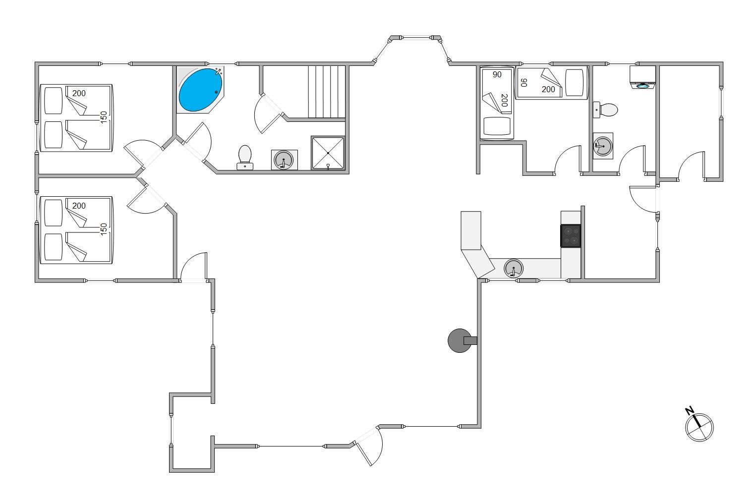 Derudover finder I et fint badeværelse med gulvvarme, der sikrer varme fødder om morgenen og et gæstetoilet som både har en tørretumbler og en vaskemaskine, så kufferten ikke skal proppes. Sommerhuset har desuden en luft til luft varmepumpe, der gør det let at regulere indeklimaet året rundt. I opholdsstuen er der ogs¨gulvvarme ved klinkerne i køkkenet.