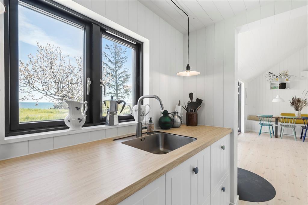 Dette feriehus byder på en helt unik beliggenhed og er nyopført i 2023 med bæredygtighed i højsædet. Alt fra materialevalg til funktionerne er valgt med omtanke for både miljøet og den gode ferieoplevelse. Her finder I ikke en opvaskemaskine – men hvem savner det, når køkkenet har den mest vidunderlige udsigt over vandet? Der er heller ikke internet og tv, fordi tanken med huset er at komme ned i gear og skabe de bedste muligheder for at være sammen og hygge sig. Både ude og inde. Naturen tager over og det gælder både lyde og billeder. Glæd dig til at øjnene kan følge med ude på havet og at ørene kan høre havet bruse.