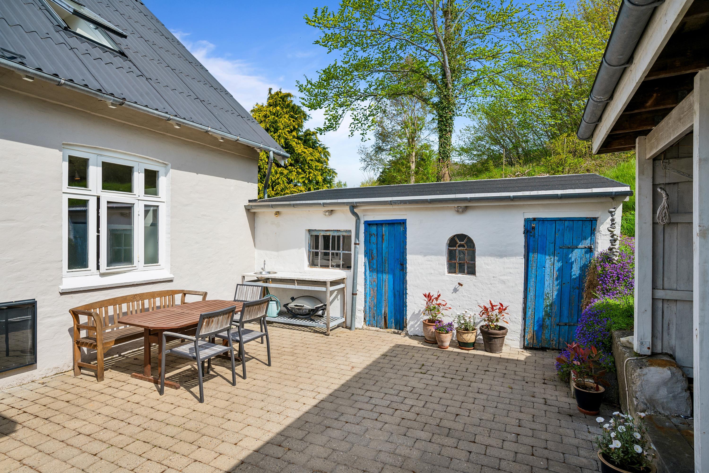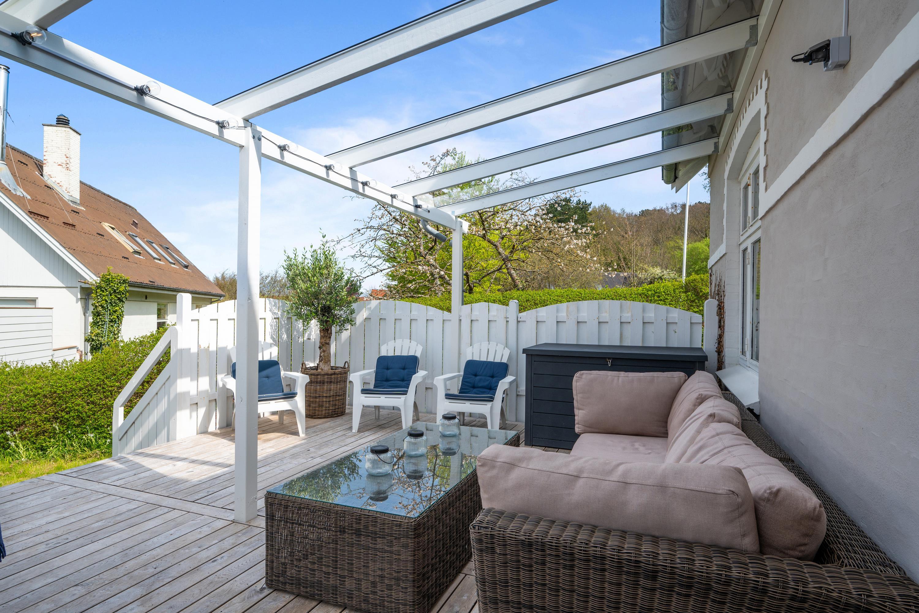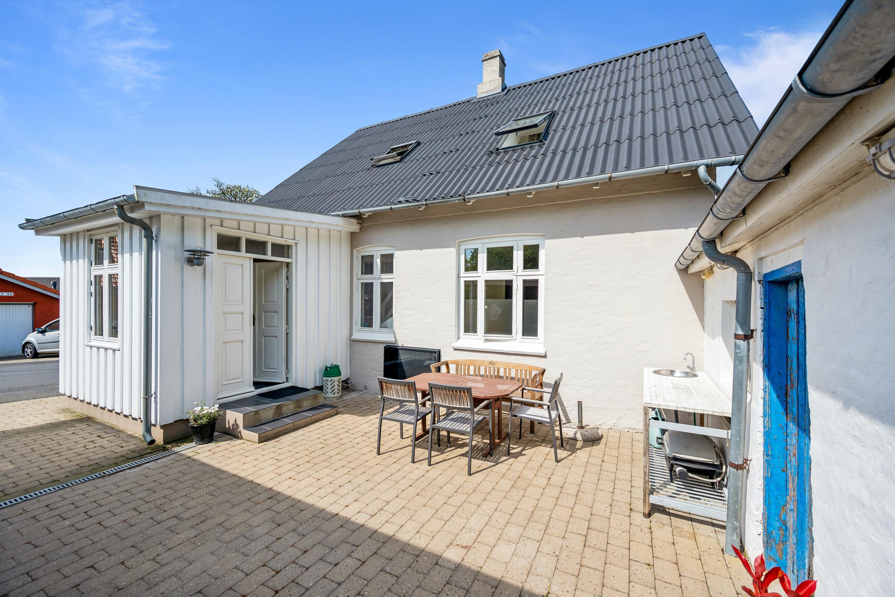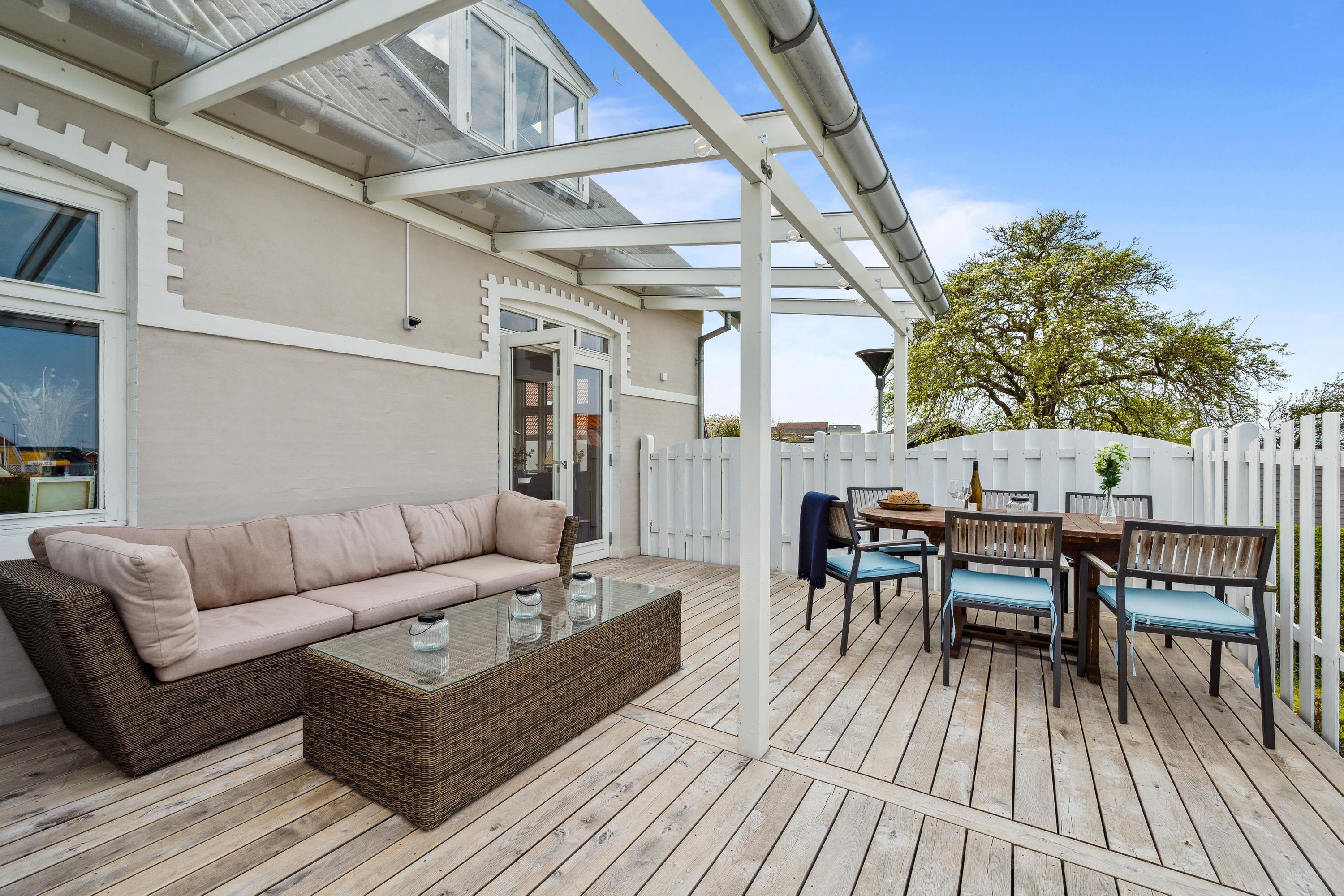 Dejligt byhus i Ebeltoft med 4 soveværelser, vestvendt terrasse, gårdhave og carport tæt på havn og by.