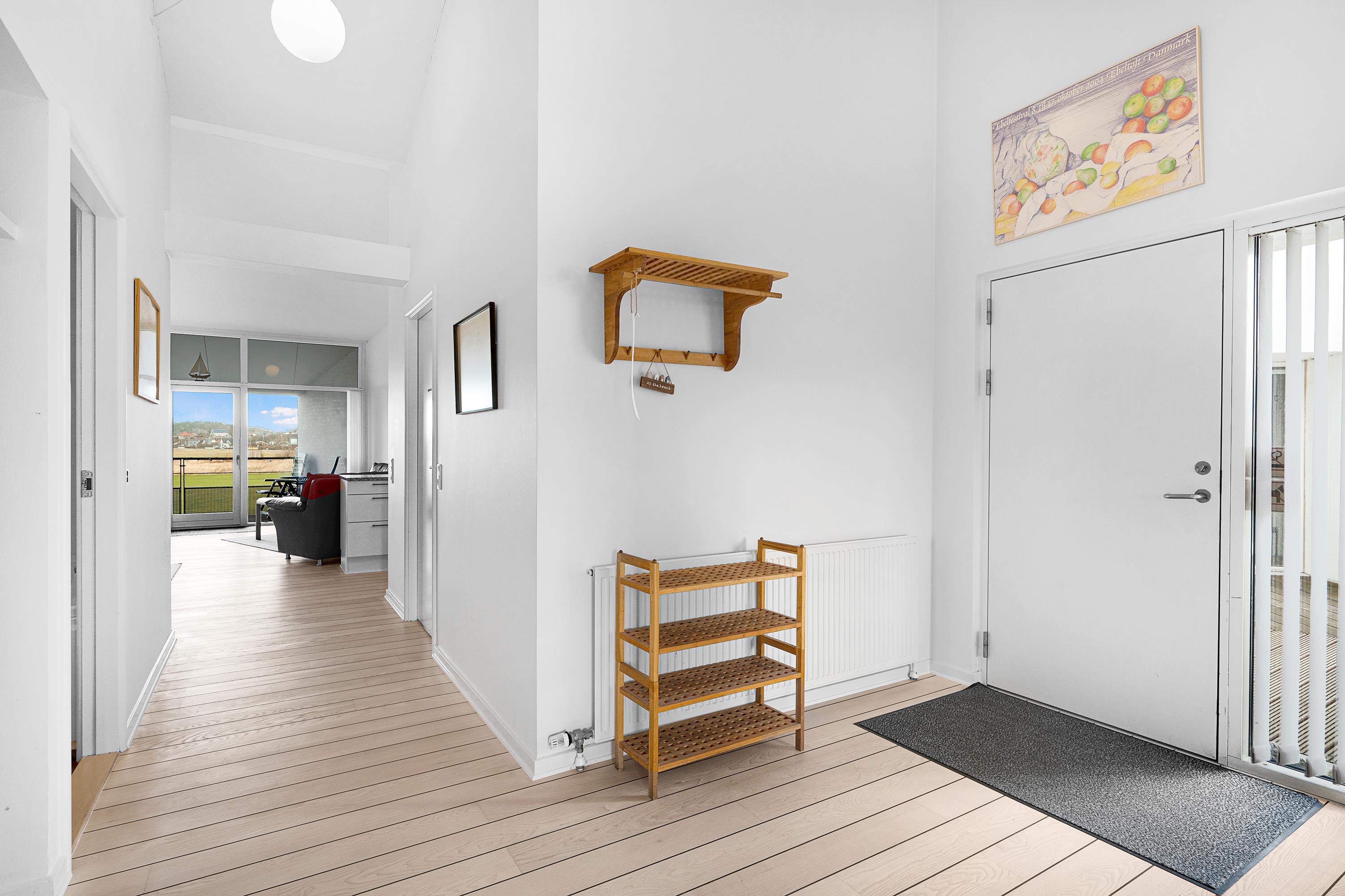 Fra den rummelige entré/fordelingsgang kommer man ind i veludstyret køkken i åben forbindelse med lys opholdsstue med udgang til altan. Her er spiseplads til 6 personer, sofamøblement, TV med danske (inkl. TV2) og tyske kanaler, CD-afspiller og radio. Køkkenet har keramiske kogeplader, indbygningsovn, stort køle-/fryseskab, opvaskemaskine og mikrobølgeovn. Lejlighedens 6 sovepladser fordeler sig på 2 lyse værelser: 1 med dobbeltseng og 1 værelse med dobbeltseng samt køjeseng. Dejligt badeværelse med brusekabine, 1-pers. spa og sauna samt gæstetoilet med bruseniche, vaskemaskine og tørretumbler, begge vådrum med gulvvarme. Der er internetadgang.