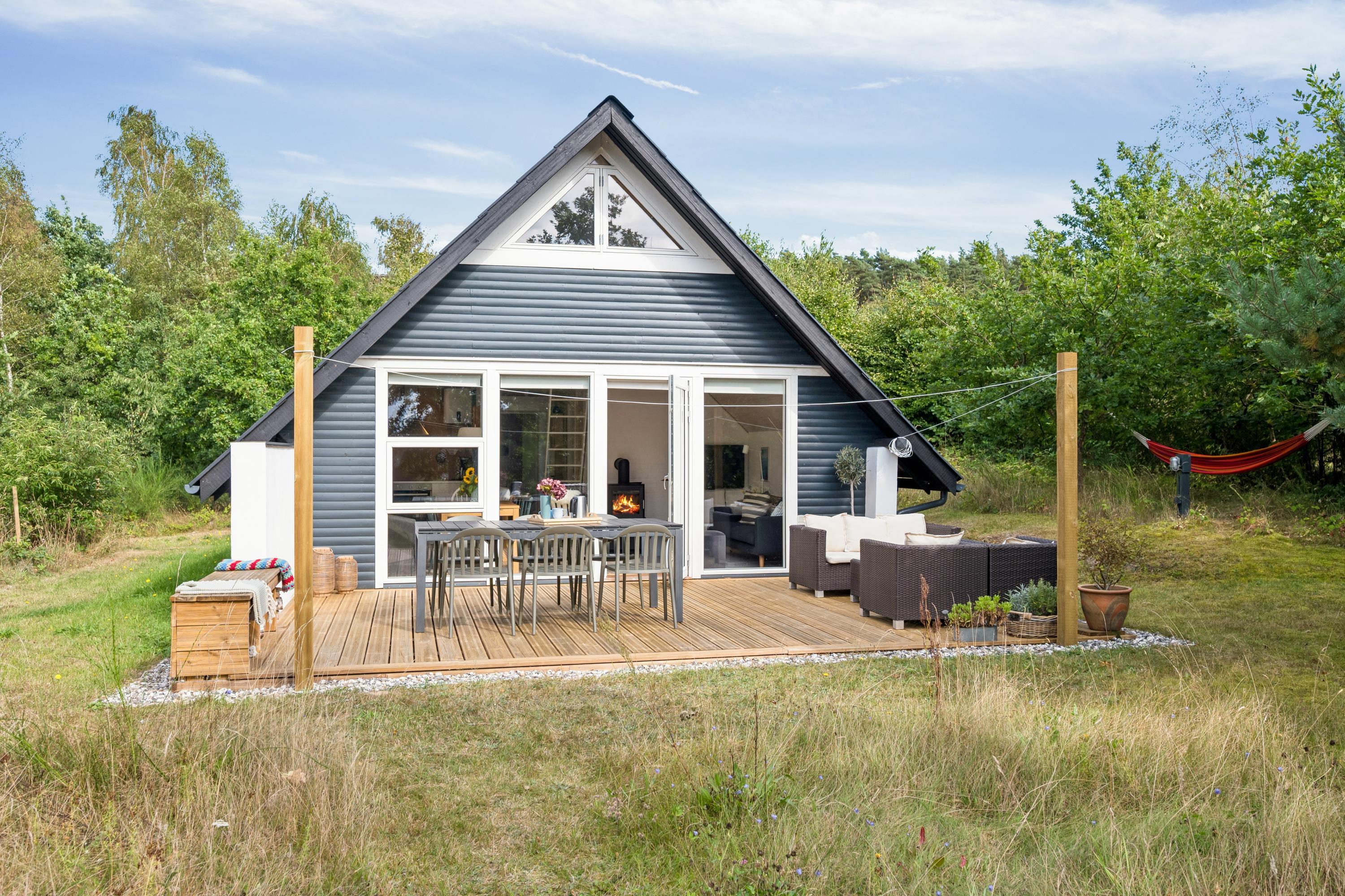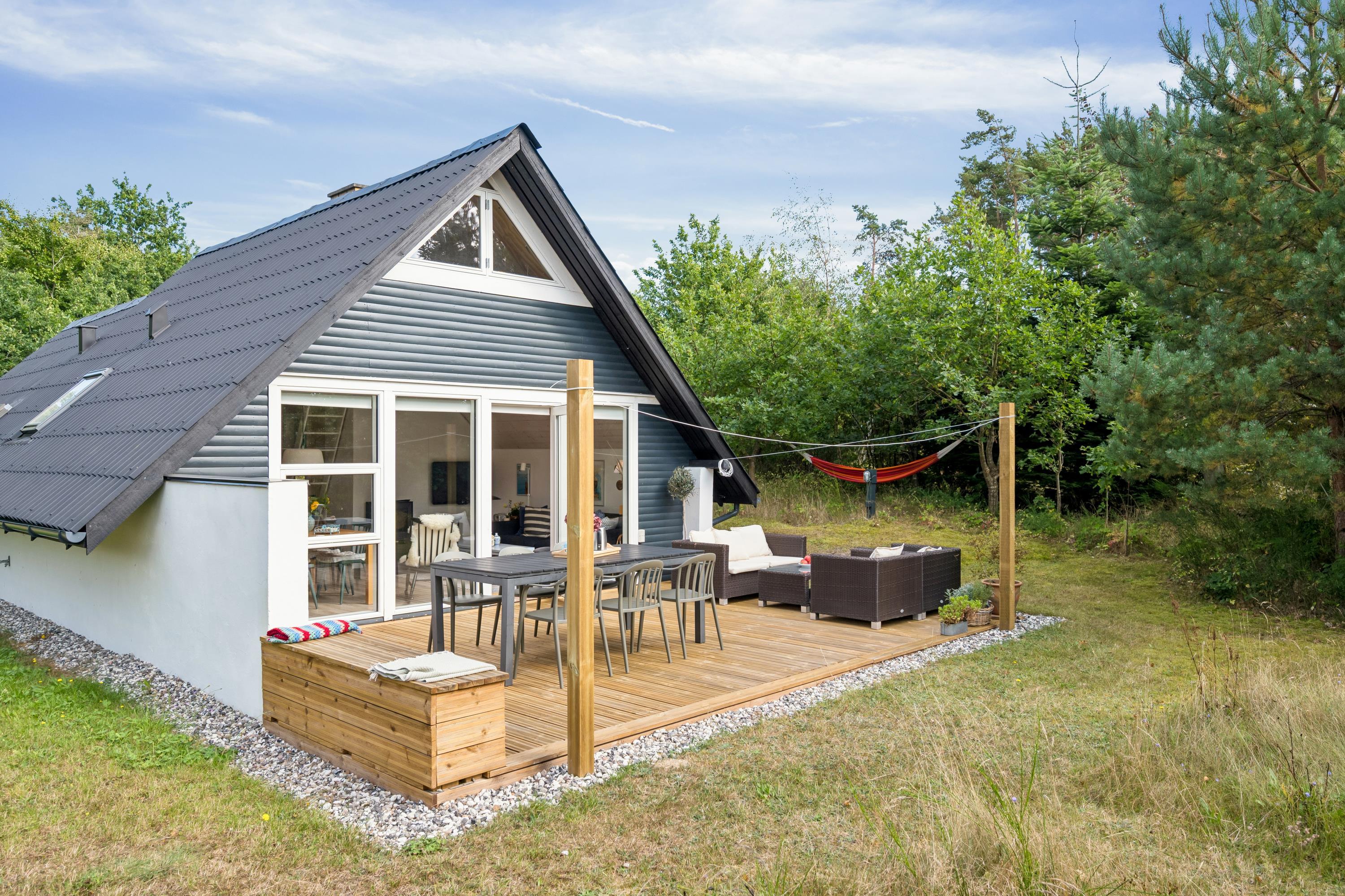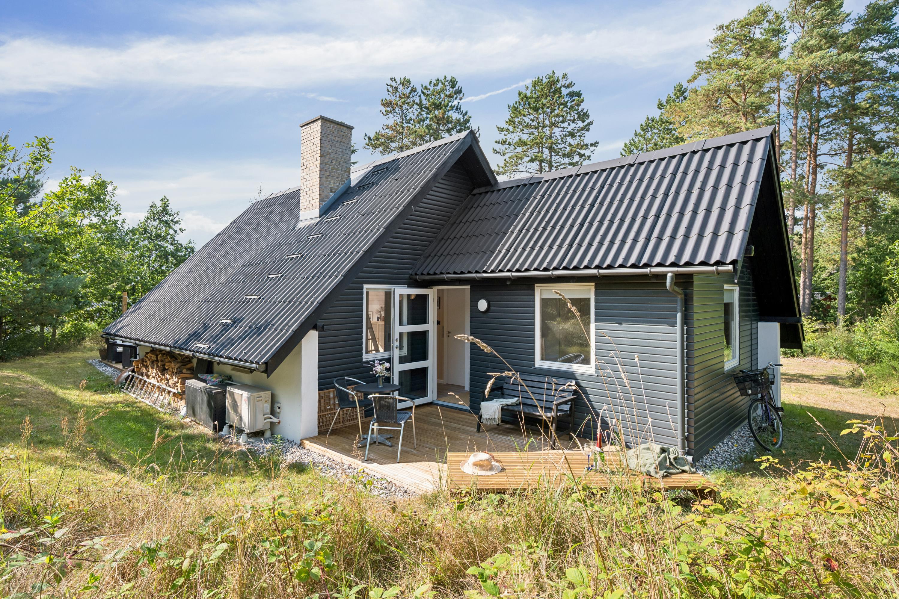 Hyggeligt nyrenoveret sommerhus nær Ebeltoft med terrasse, brændeovn og skøn naturgrund.
