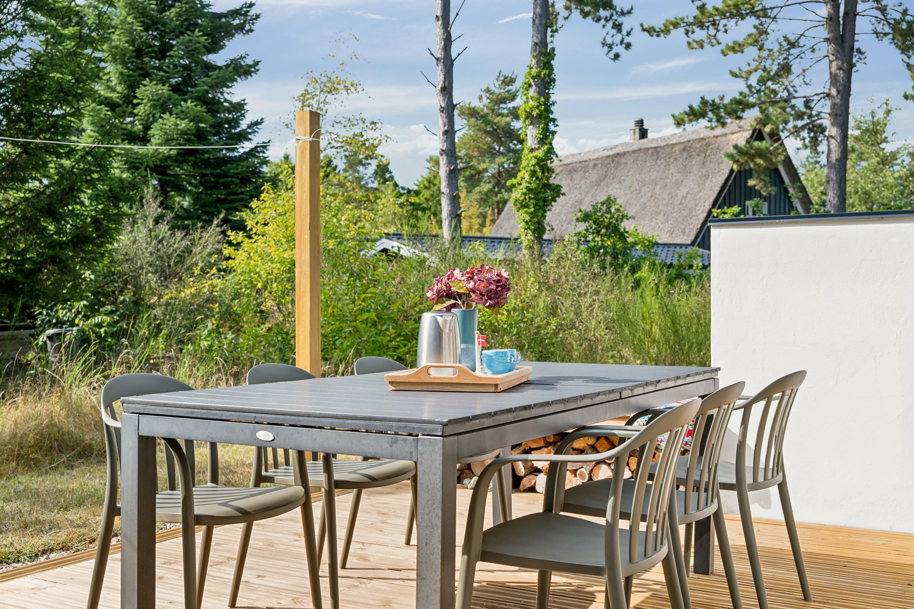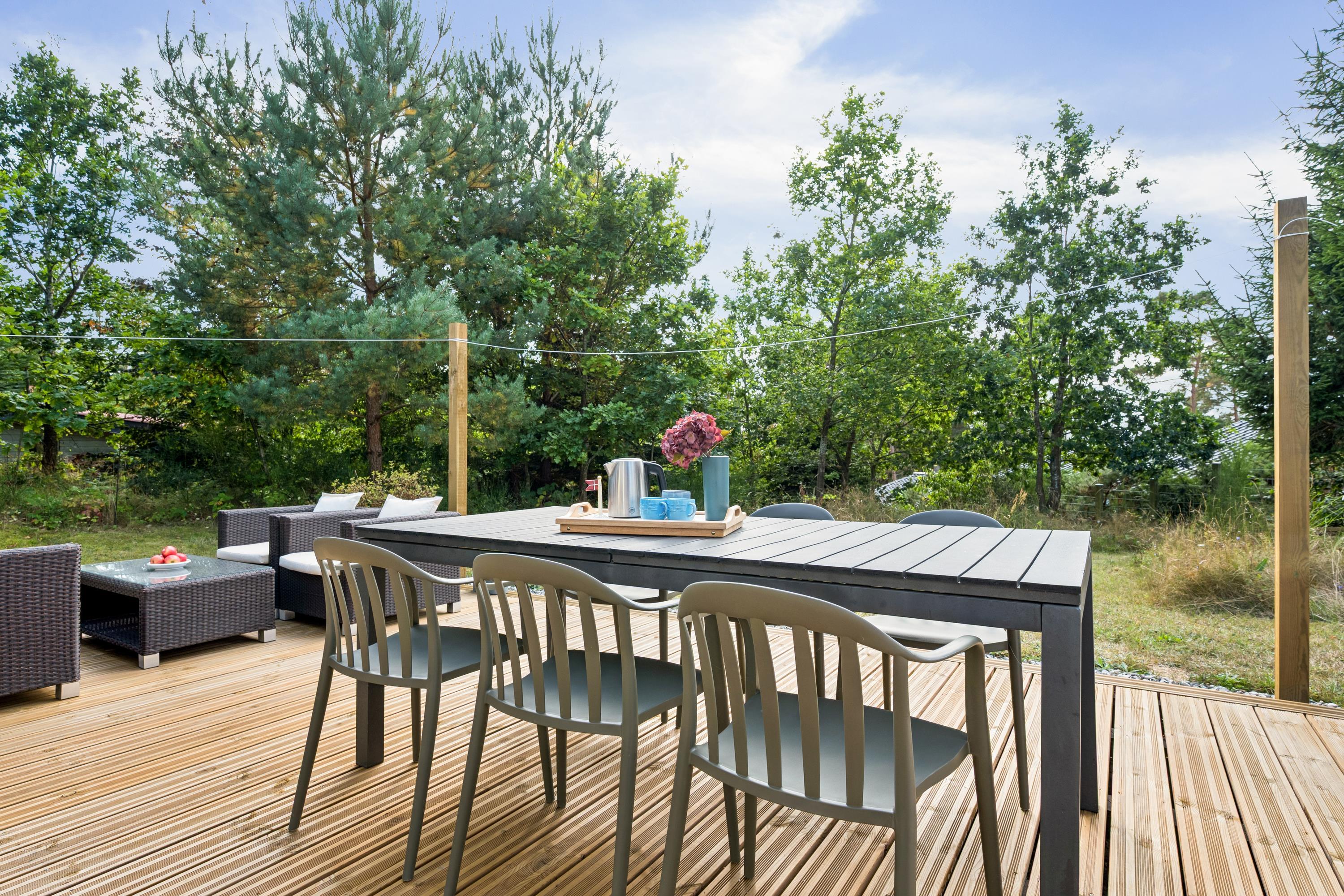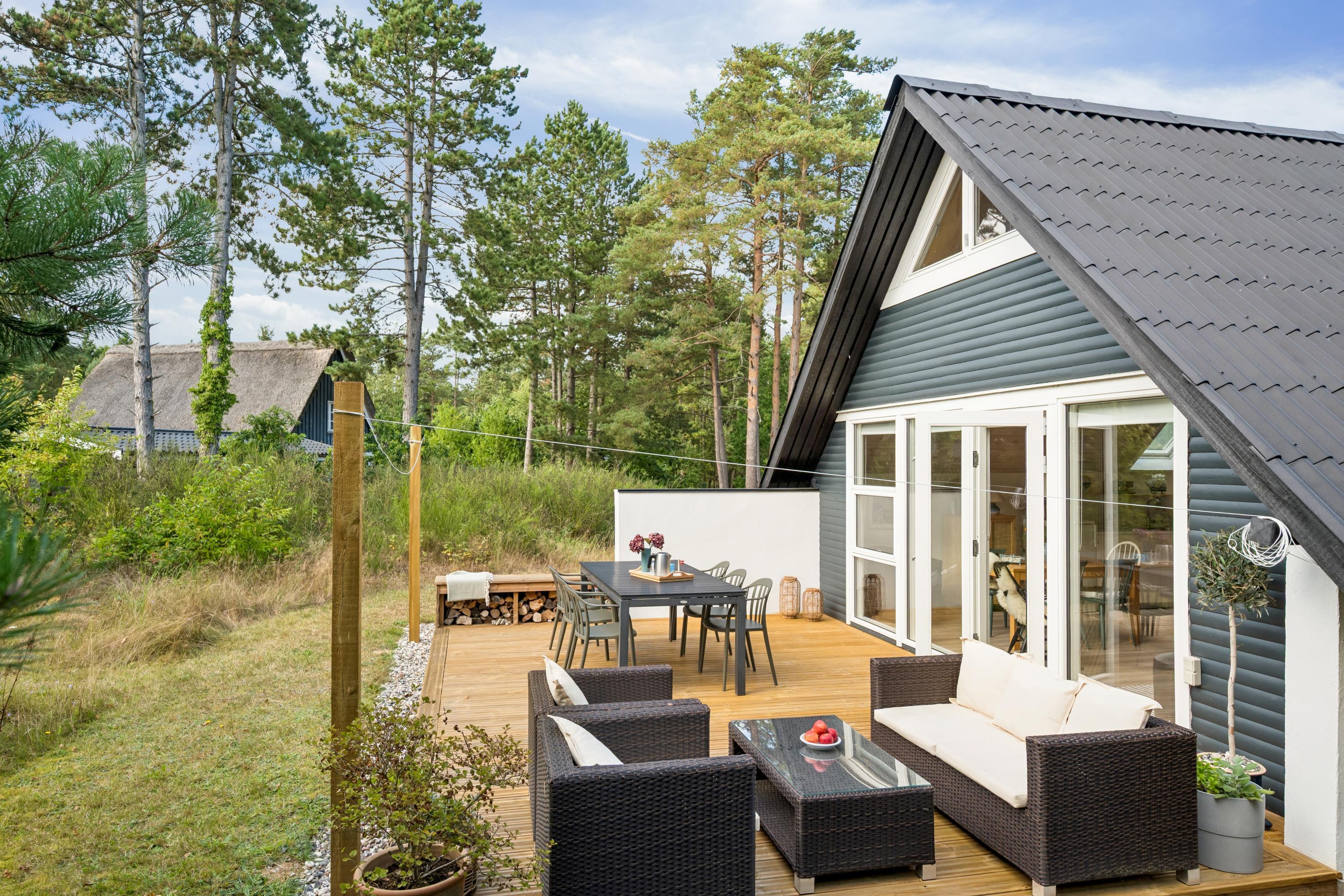 Hyggeligt nyrenoveret sommerhus nær Ebeltoft med terrasse, brændeovn og skøn naturgrund.