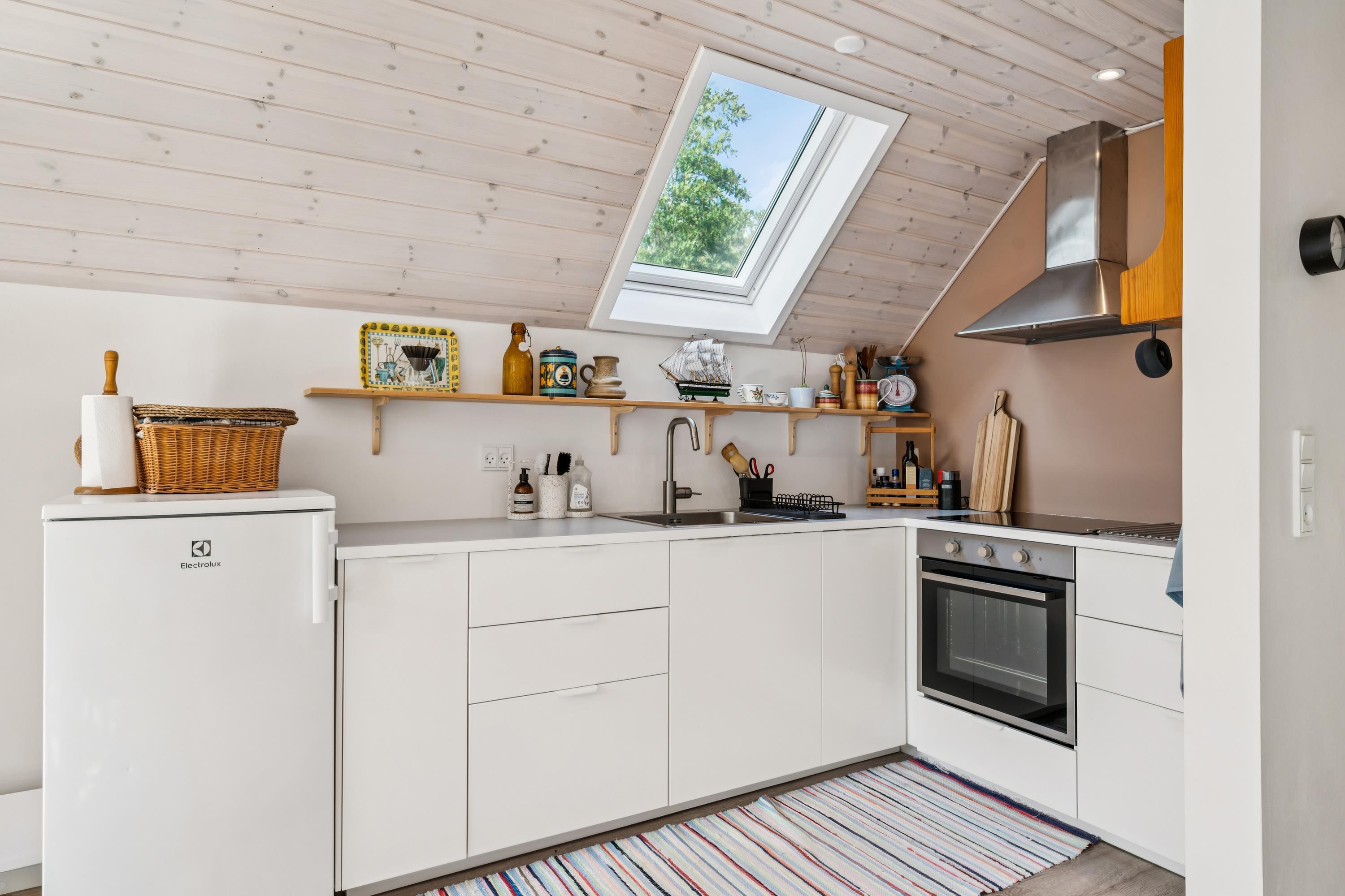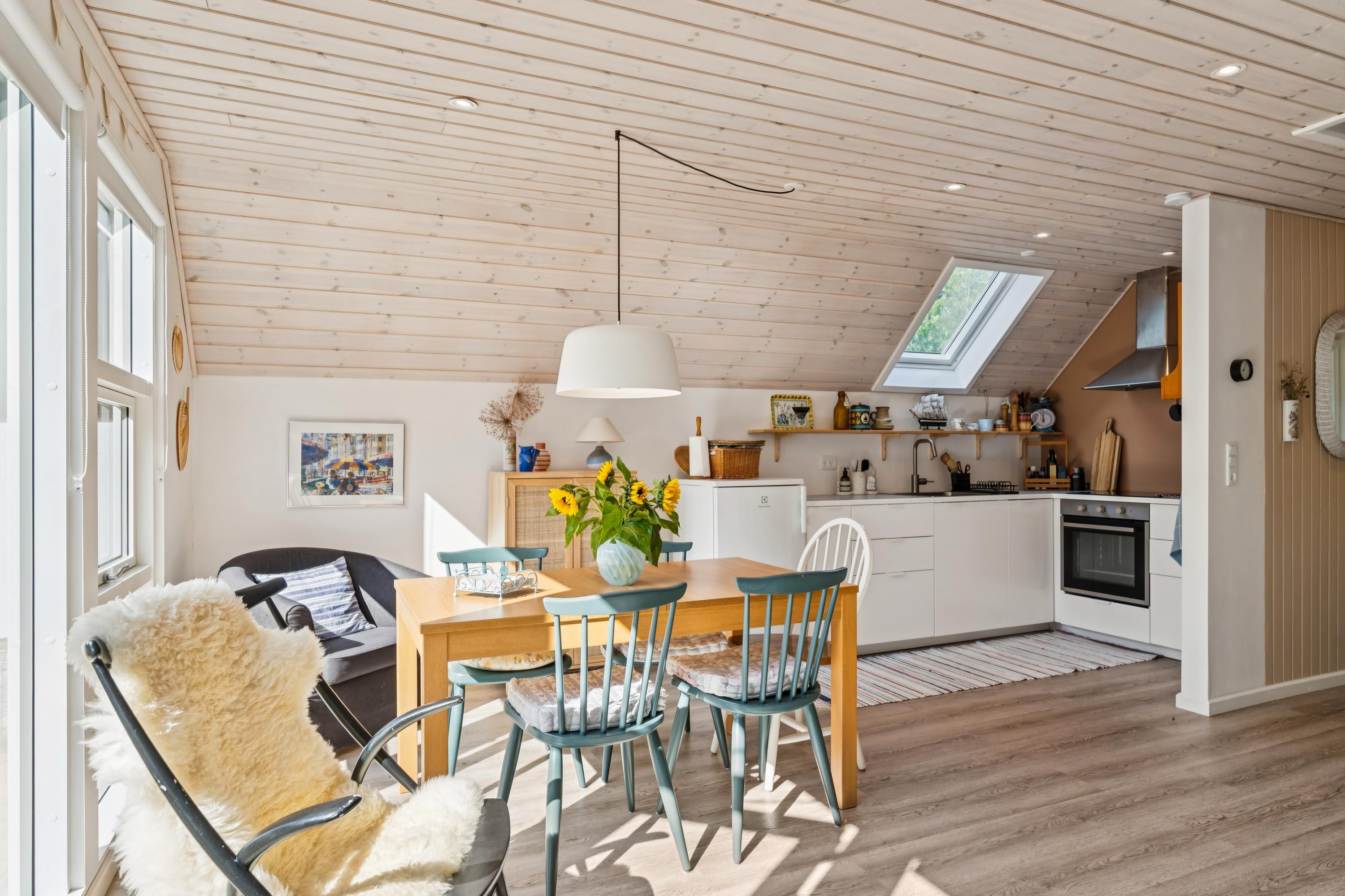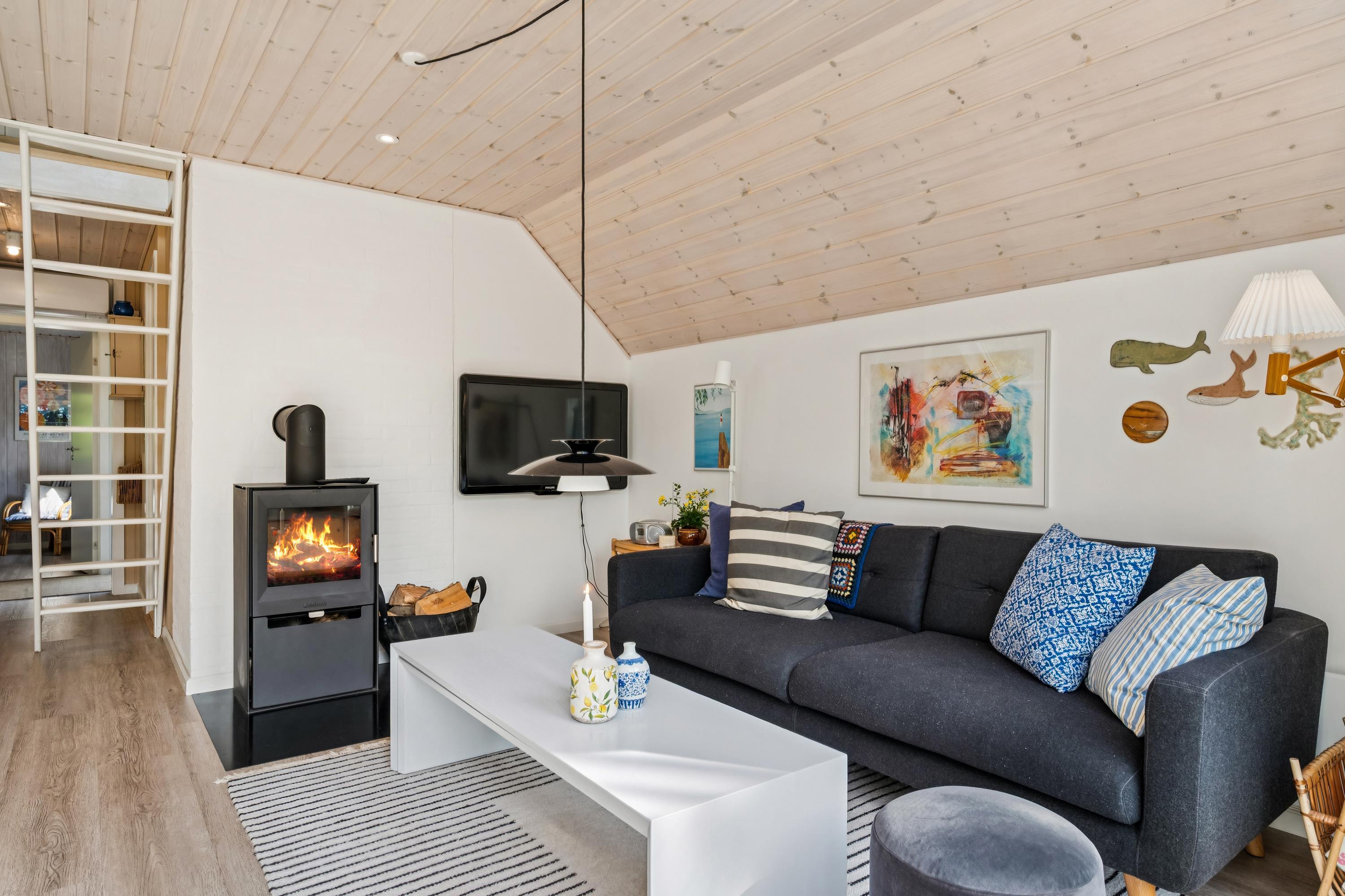 Allerede når man træder ind ad døren, mærker man den ægte sommerhusstemning i dette særdeles hyggelige og nyrenoverede sommerhus. Her finder man en hyggelig og velindrettet stue med b.la. brændeovn og varmepumpe. I forbindelse med stuen finder man det mindre men velfungerende køkken. Fra stuen er der udgang til en stor terrasse med gode havemøbler. Flot badeværelse med en stor bruseniche. Husets sovepladser fordeler sig i to hyggelige soveværelser, heraf et værelse med dobbeltseng og et værelse med en enkeltseng. Desuden er der to sovepladser på gode madrasser på hemsen. TV foregår via Chromecast. Huset er beliggende på en skøn naturgrund hvoraf en del af grunden er udlagt til ”vild med vilje ” og med to hyggelige terrasser.