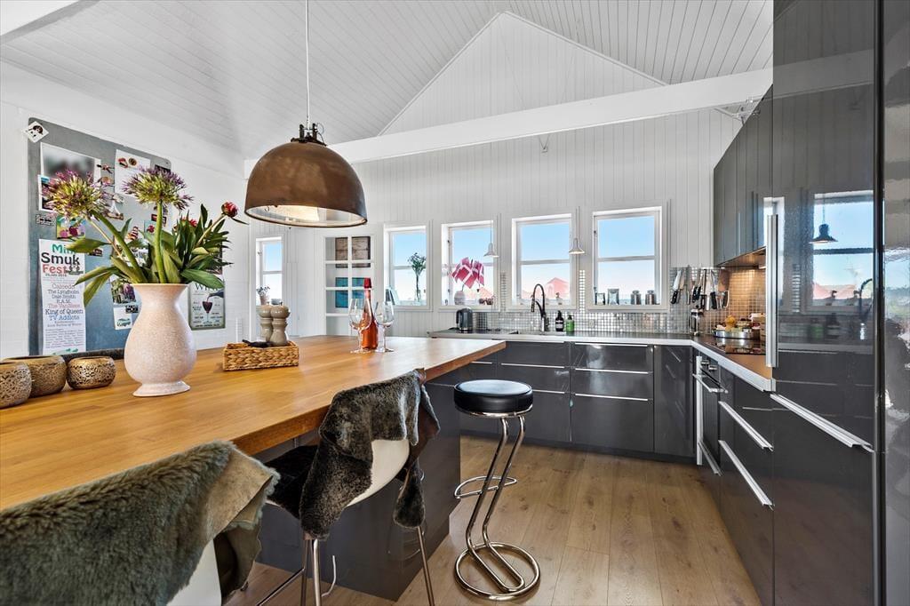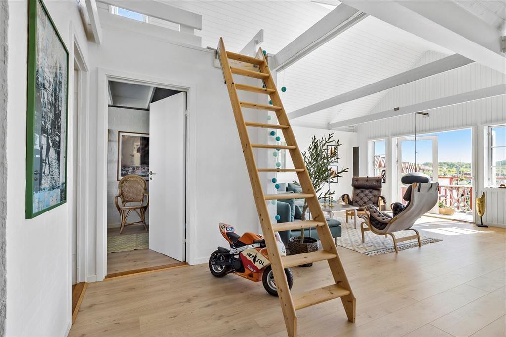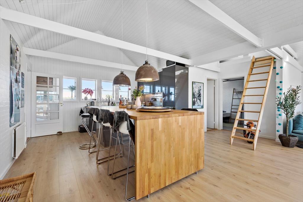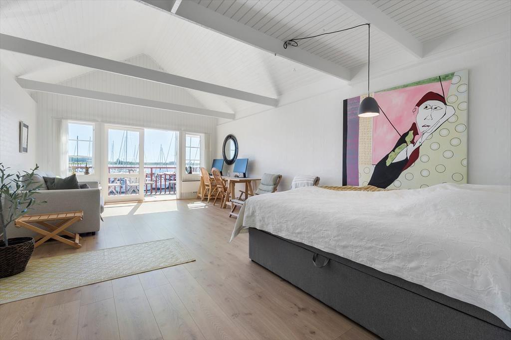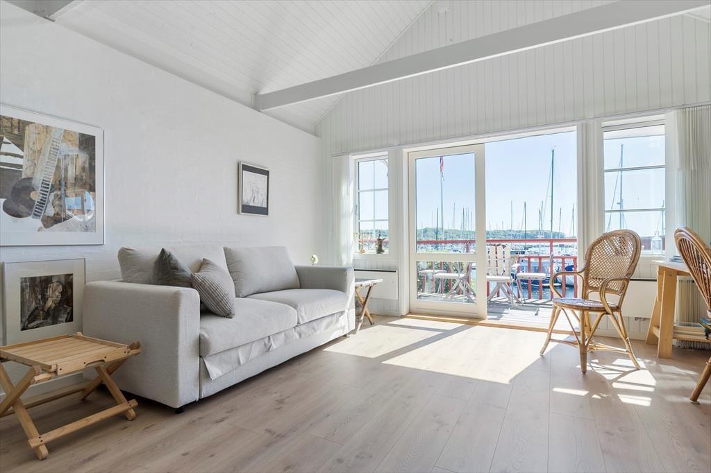 Du kan ikke komme mere i centrum på alle måder end at bo i denne lejlighed. Den ligger i noget af det mest spændende og maritime Ebeltoft by kan byde på. Her er ikke langt til fiskehandleren, de virkelig gode restauranter eller hvad du måtte ønske. Lejligheden er meget stor og rummelig. Her kan alle deltage lige meget om der skal spilles spil eller laves mad. Der kan også sagtens gå en times tid med at se ud af vinduerne – for her sker der noget spændende hele tiden. Lyset er helt særligt fordi vinduerne er så store og der er mange af dem. Til overnatning er der to store soveværelser – det ene med en dobbeltseng og en sovesofa (hver med plads til to gæster) og det andet med to enkeltsenge. Derudover er der en hems med to sovepladser. Du finder 2 badeværelser, så der er rig mulighed for et forfriskende bad. Køkkenet er veludstyret og der er rigtig god plads til at lave mad.