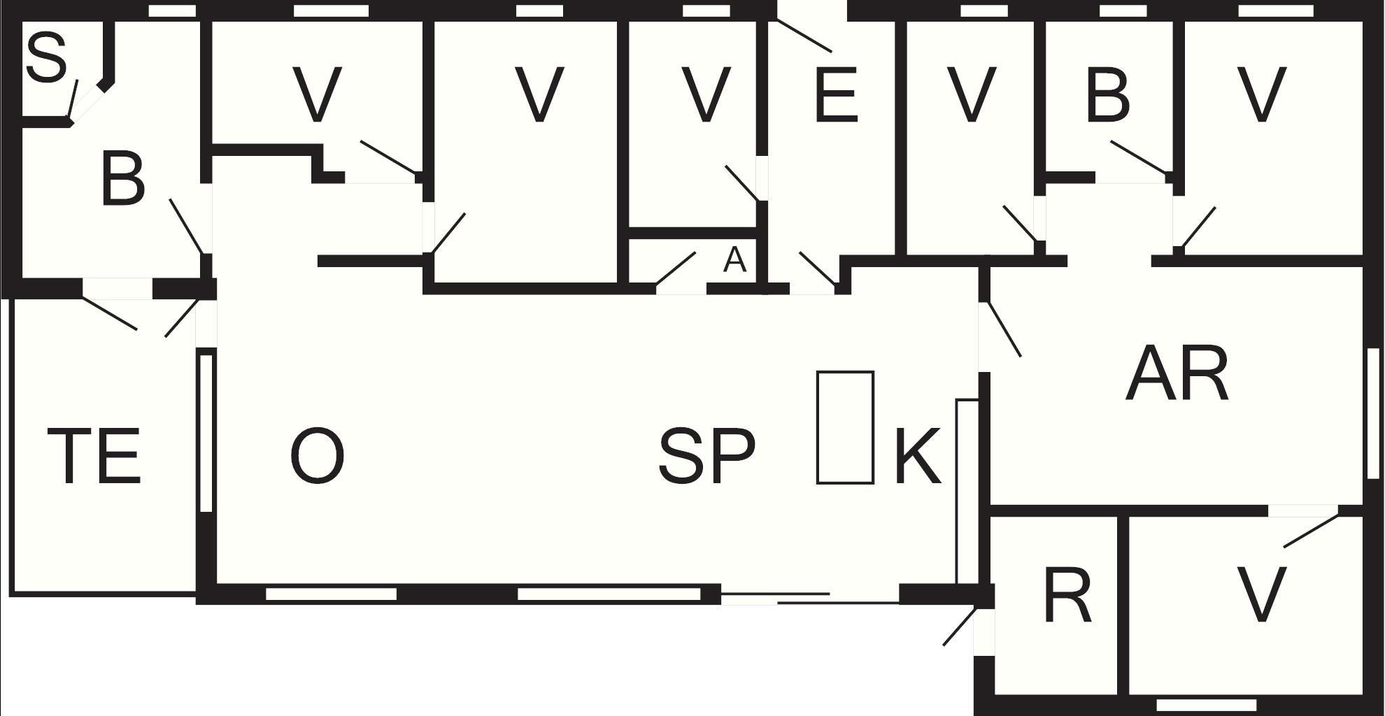 6 Soveværelser: (2S)+(2S)+(2S)+(2S)+(3K)+(1DS+1K)